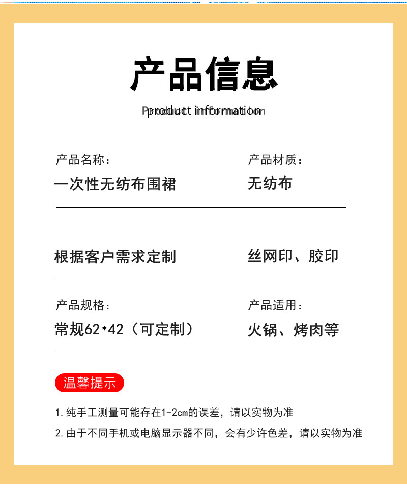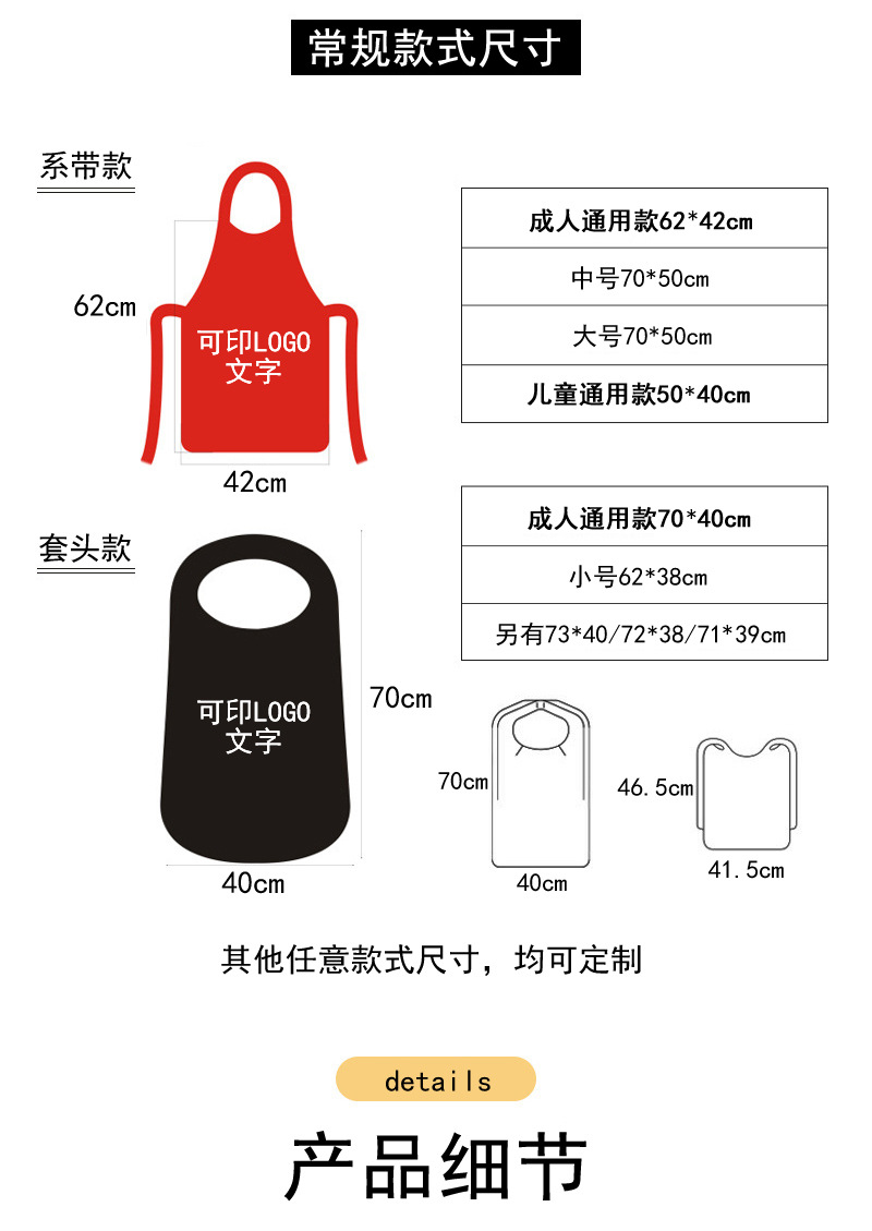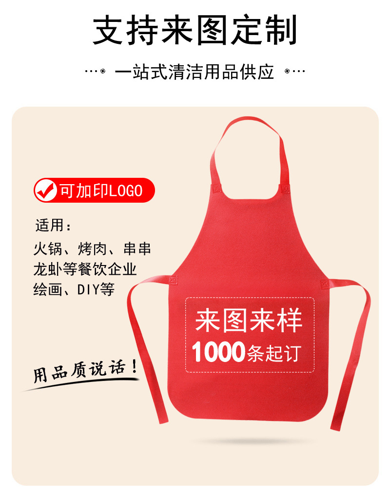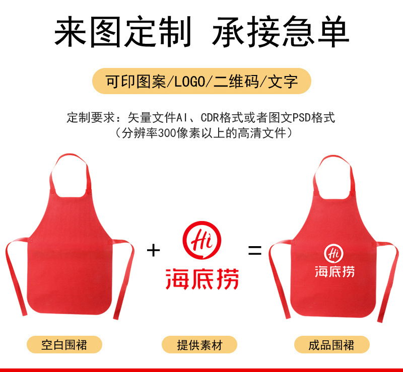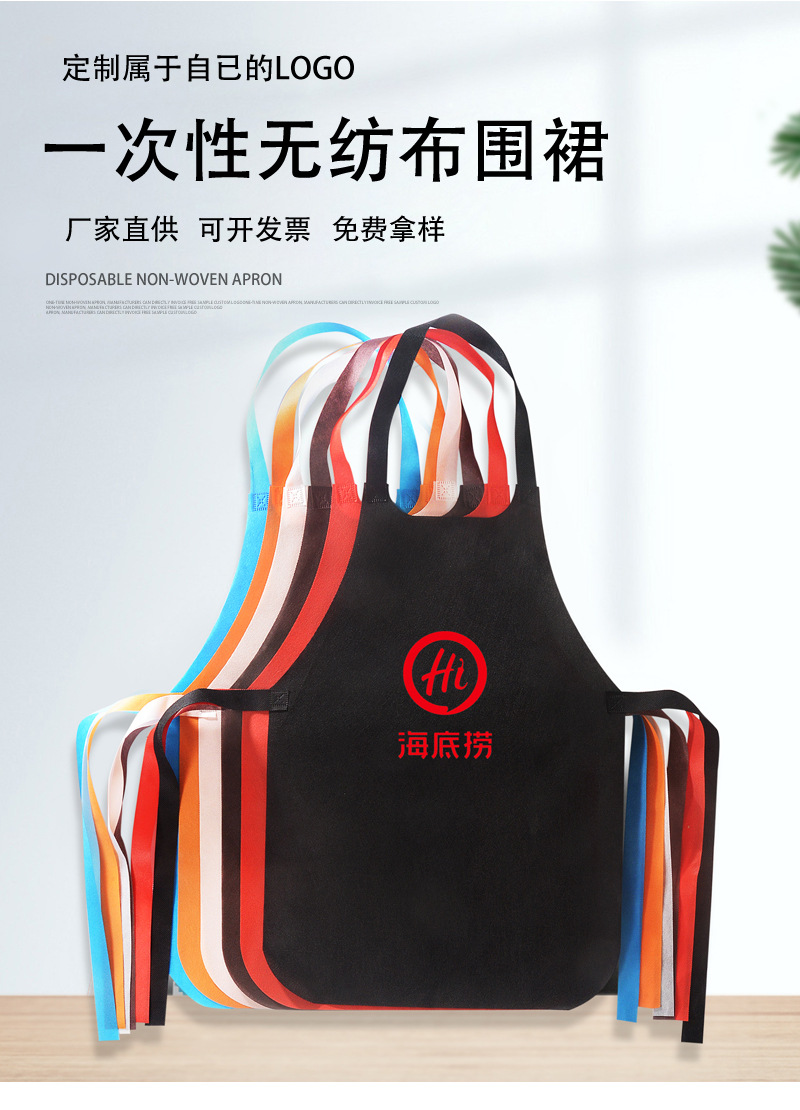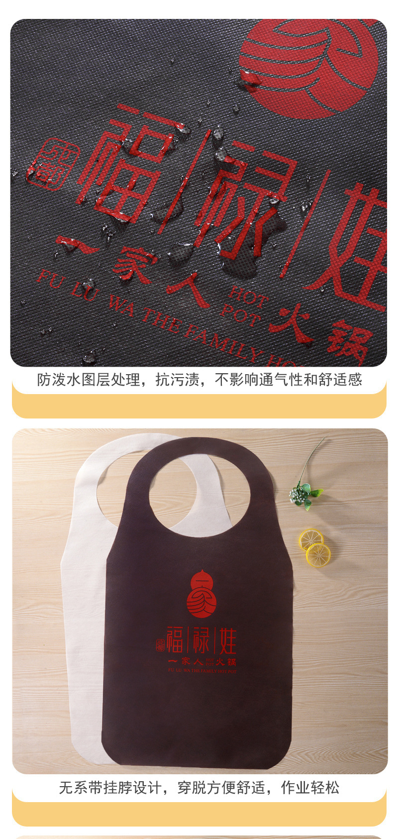 Одноразовый фартук для детей и взрослых, для кухни, хот-пота, кейтеринга, из нетканого материала, водонепроницаемый, с печатным логотипом, маслостойкий, без рукавов, для домашнего использования