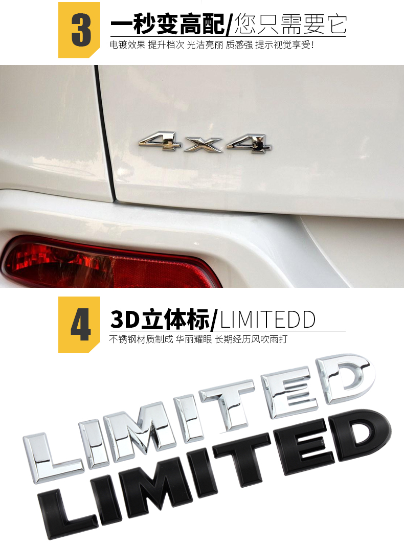 Наклейка на автомобиль для бездорожья 4x4 Wrangler Guide Металл LIMITED Полный привод автомобиля с логотипом кузова