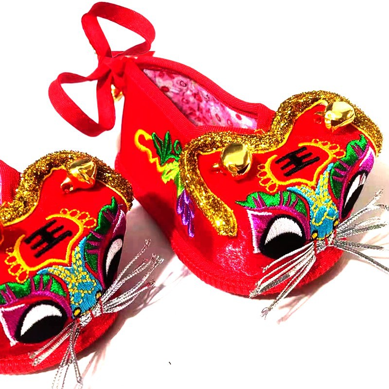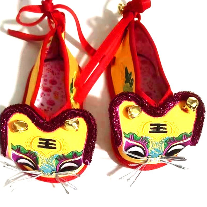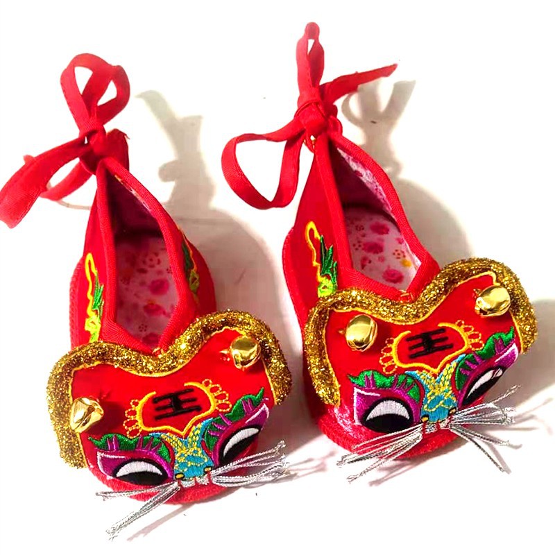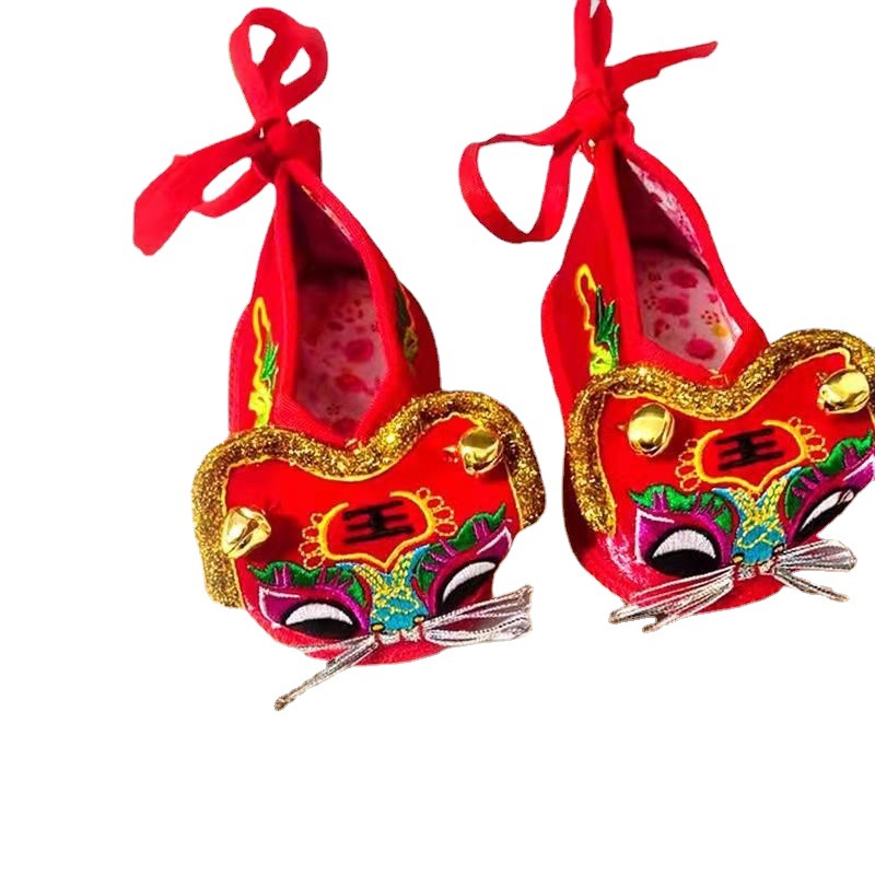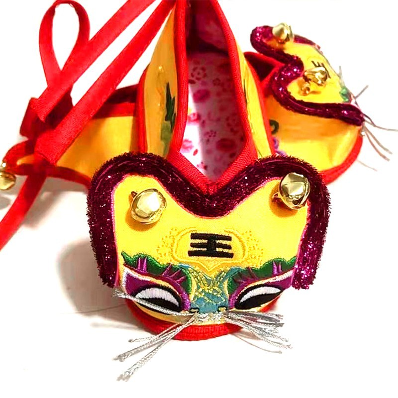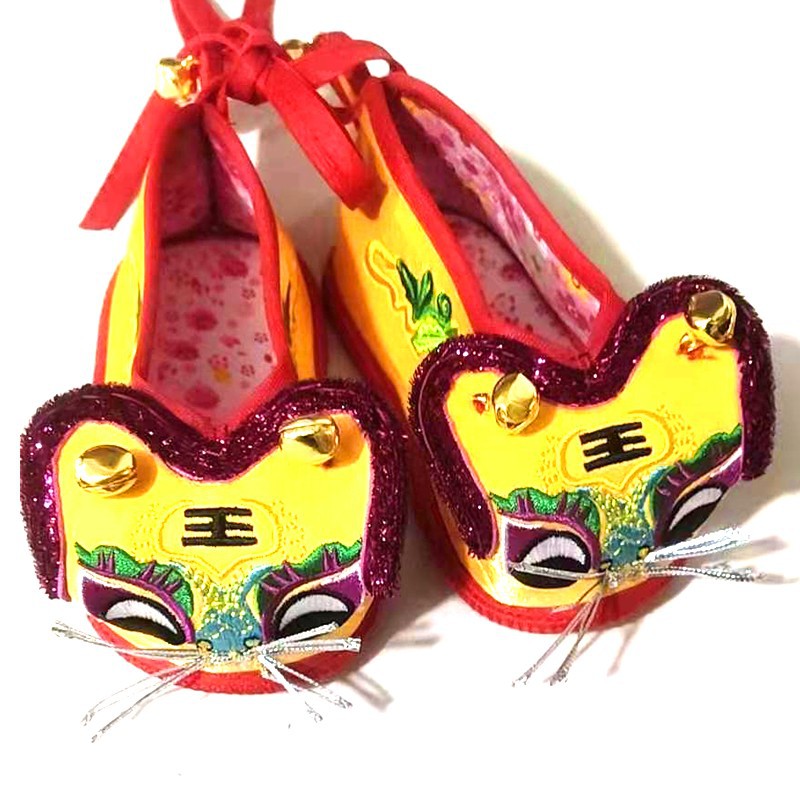 Винтажная обувь для малышей SGS с шелковой вышивкой, Детская Столетняя обувь с головой тигра, маленькая обувь