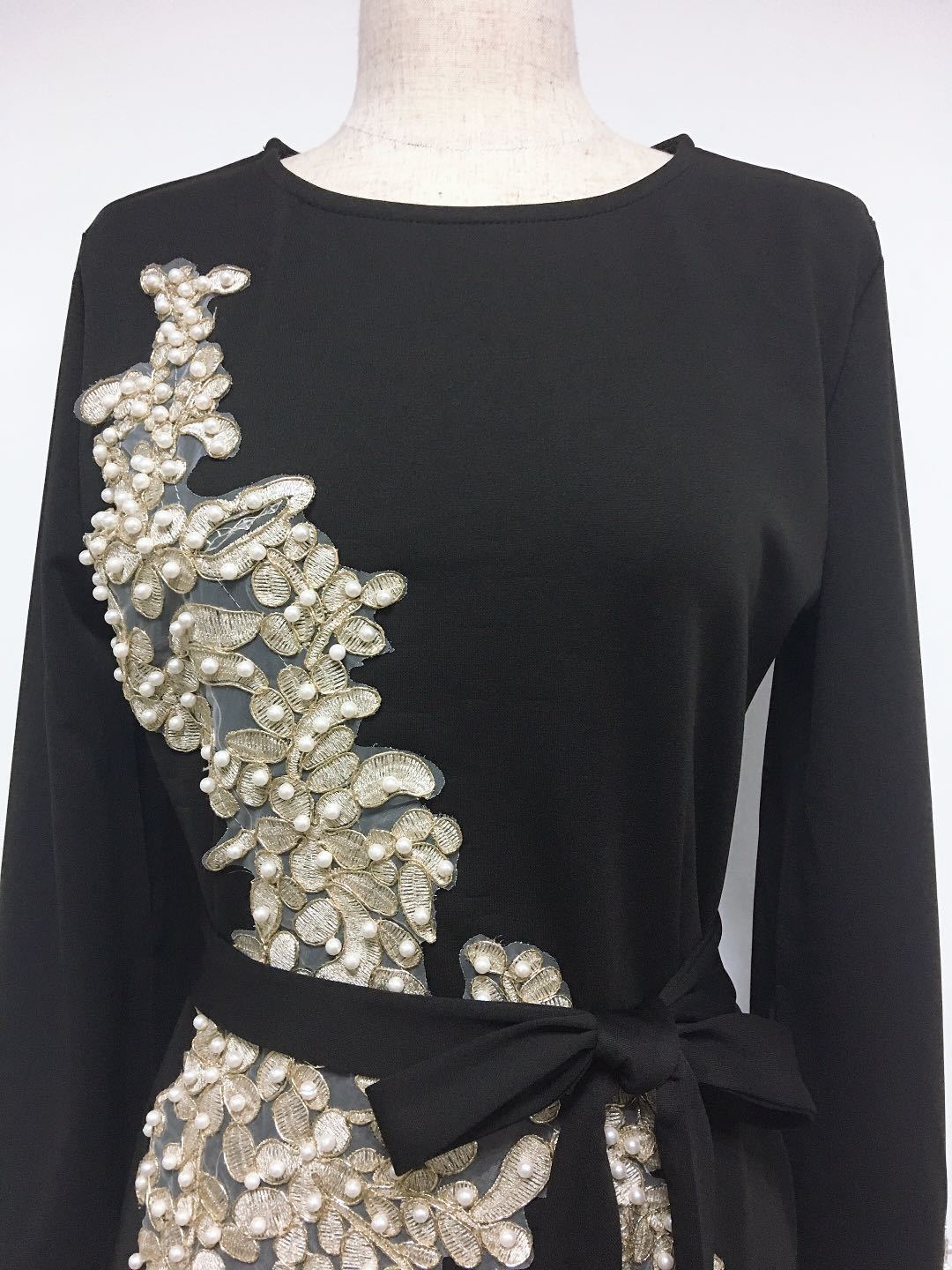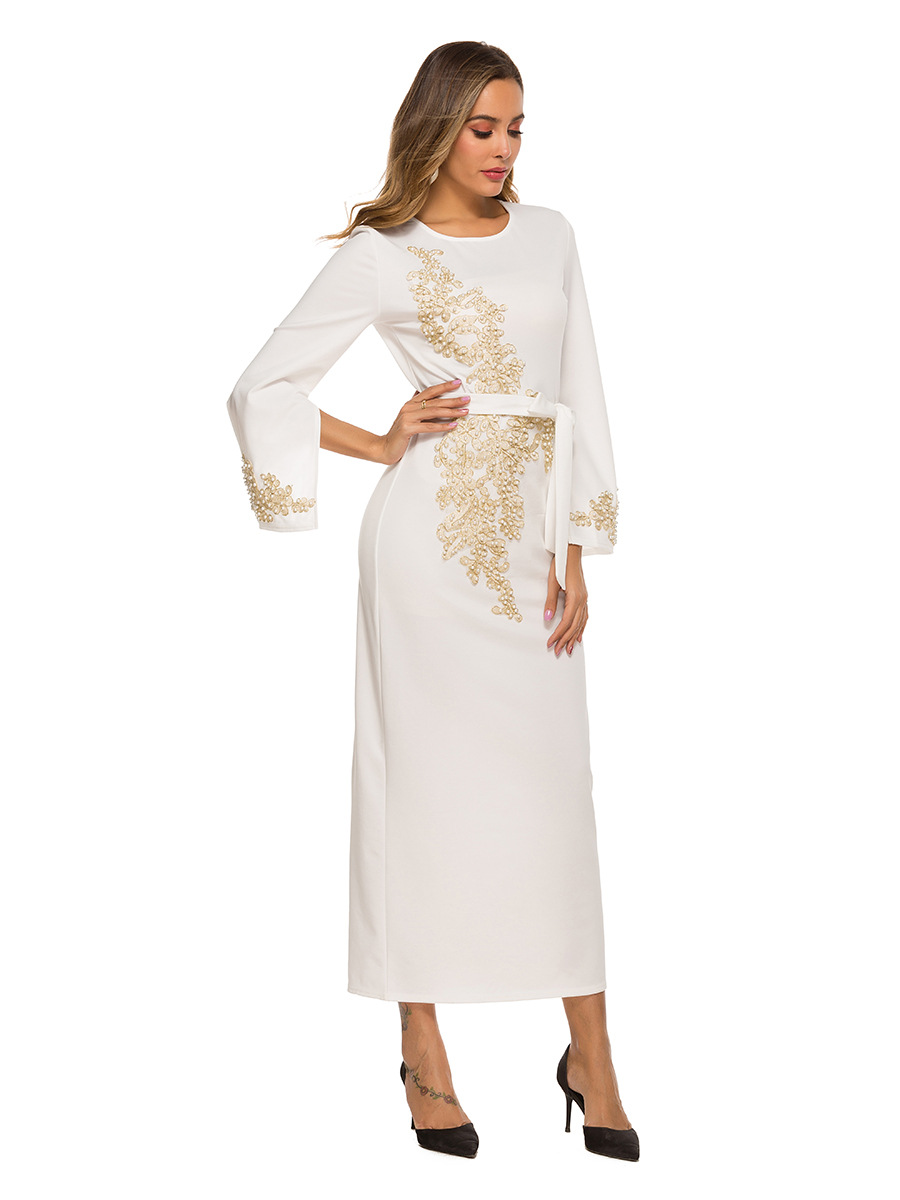 Производители напрямую поставляют Yiduo новый элегантный темперамент с вышивкой длинная юбка кружевные бусы с расклешенными рукавами длинная юбка 1921