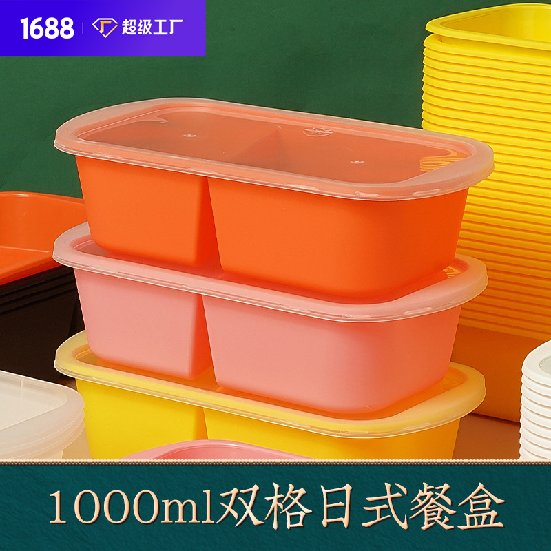 Одноразовая упаковочная коробка 1000 мл Двойная сетка фаст-фуд Bento на вынос упаковочная коробка пластиковая японская коробка для завтрака оптом