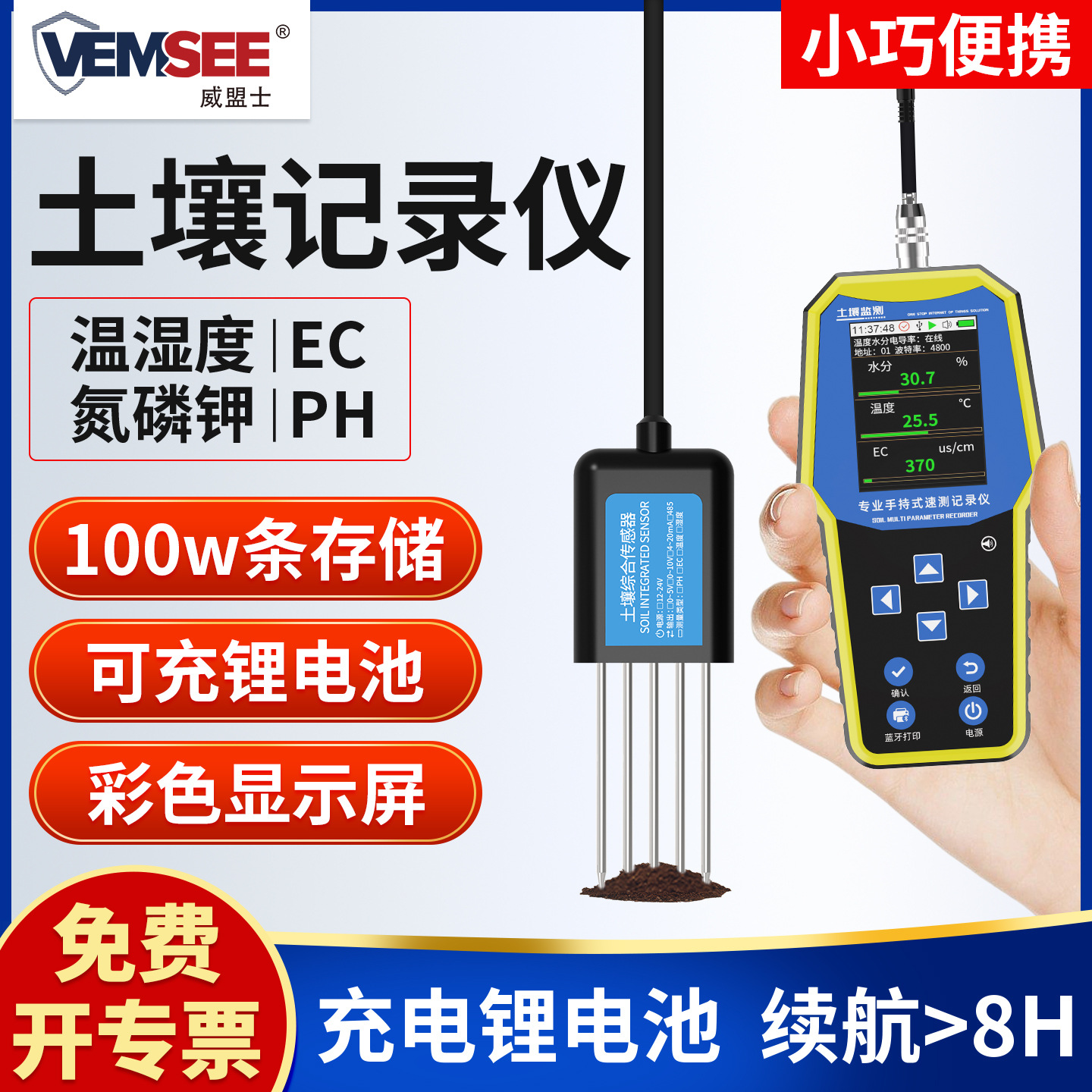 Детектор почвы тестер азот фосфор калий pH влажность проводимость регистратор питательных веществ датчик температуры и влажности