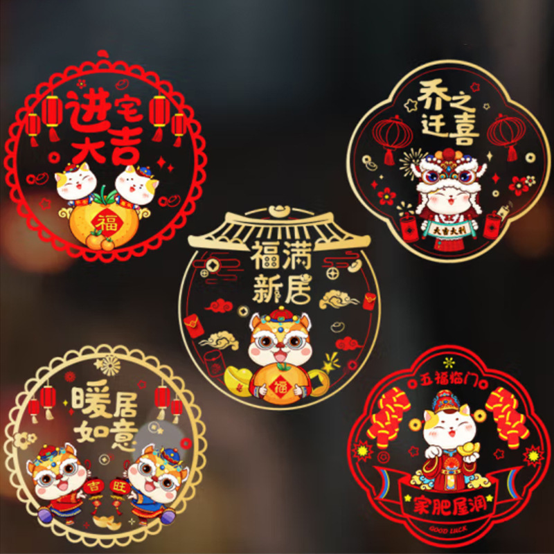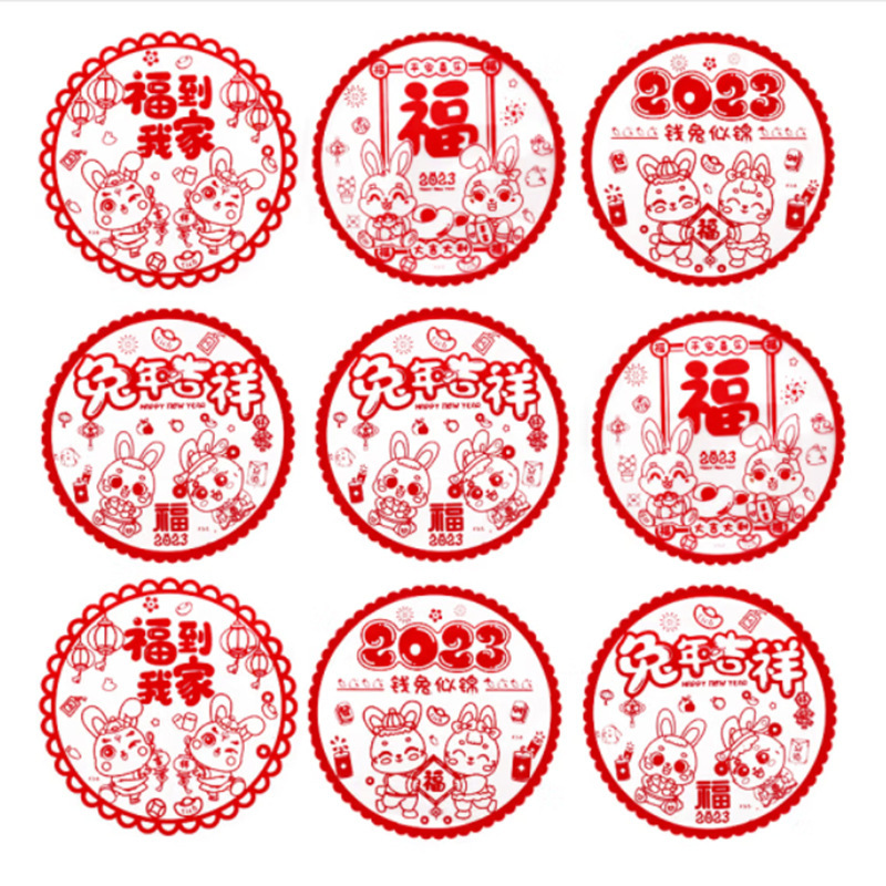 Купетки оконные решетки клейкие электростатические оконные наклейки Год дракона Весенний фестиваль счастливые слова наклейки торговый центр оконные стеклянные наклейки производители оптом