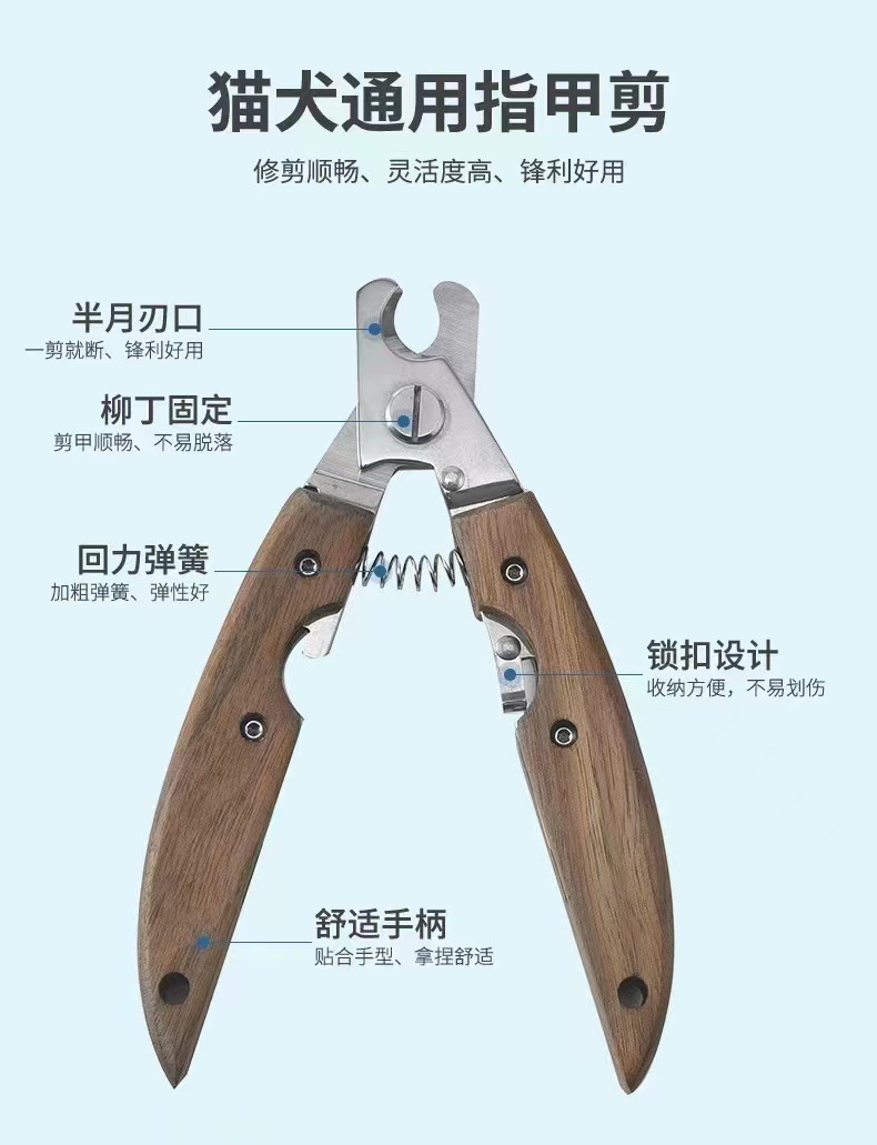 Ножницы для стрижки ногтей домашних животных с бамбуковой ручкой, кусачки для ногтей для крупных и мелких питомцев, кусачки для ногтей из орехового дерева для собак и кошек.
