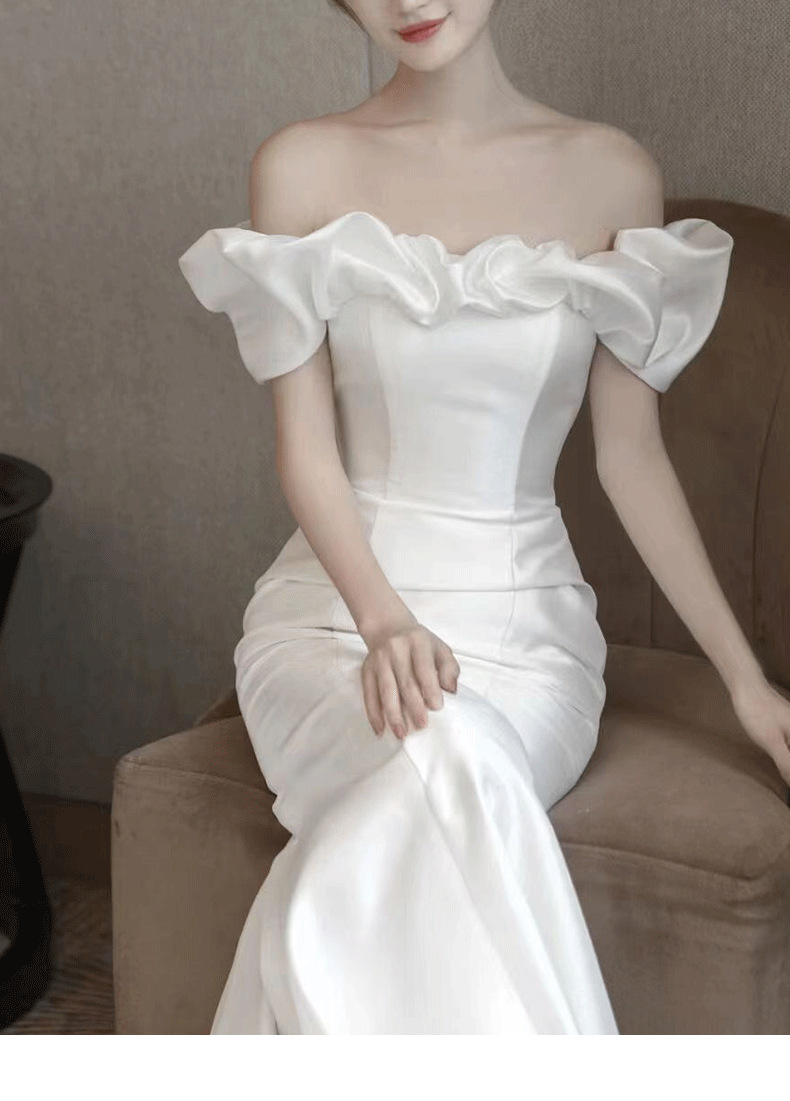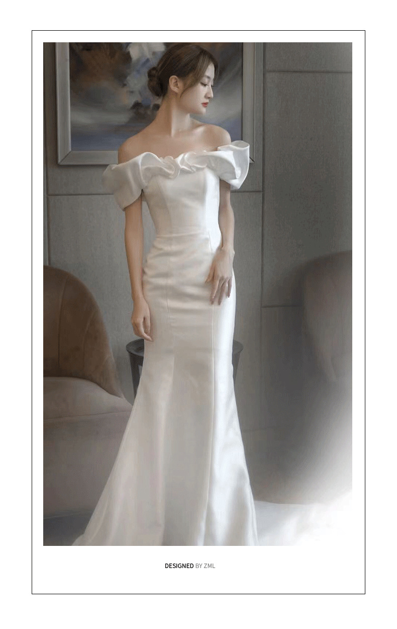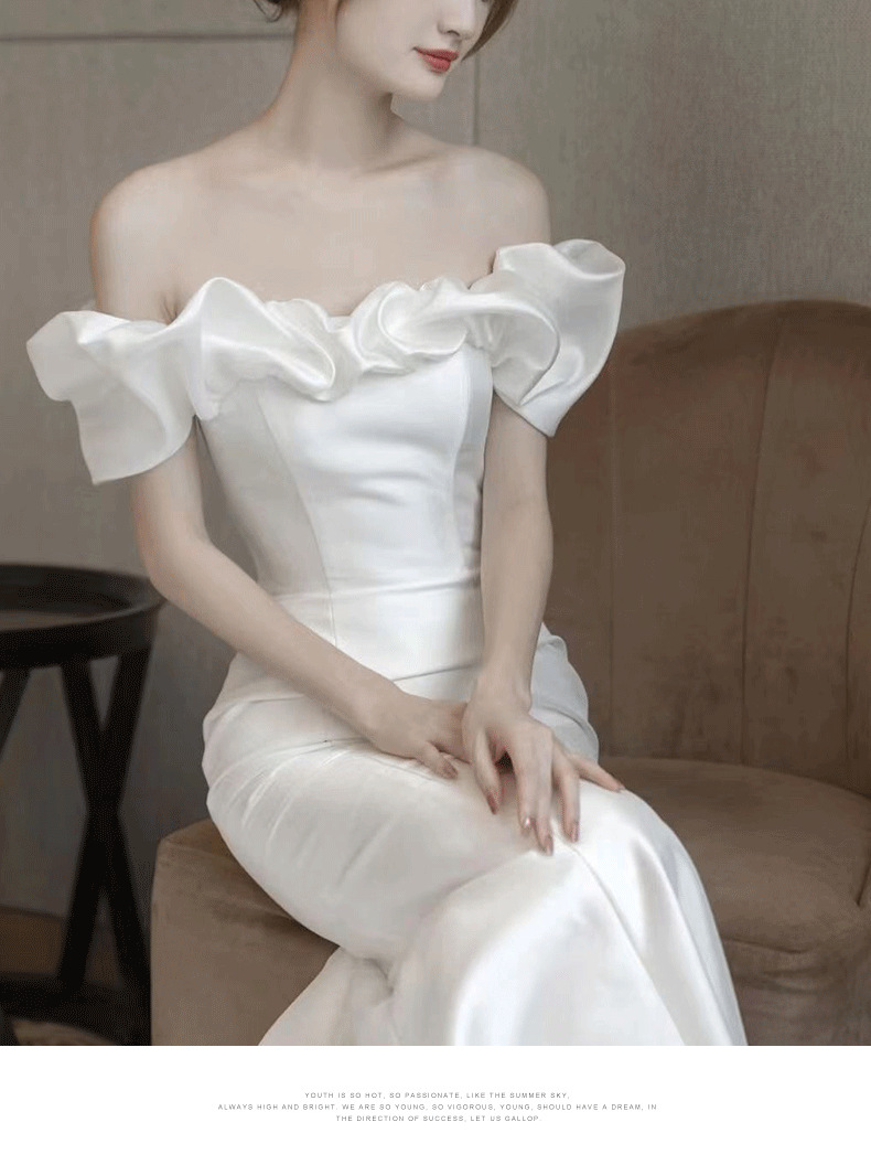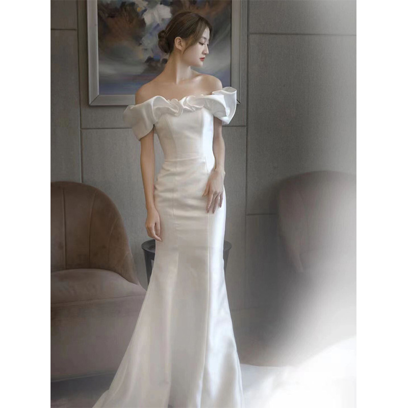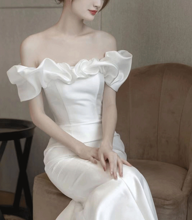 Новое свадебное платье из атласа, ретро-стиль, одно плечо, фасон "рыбий хвост", основная ткань — шифон, для невысоких, легкое летнее свадебное платье.