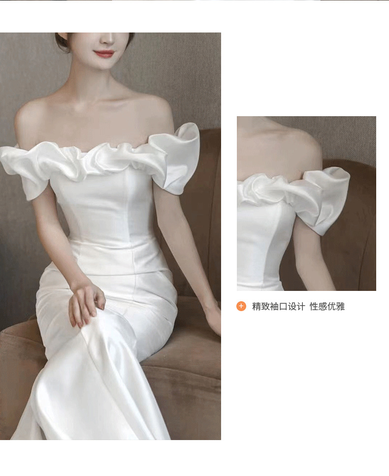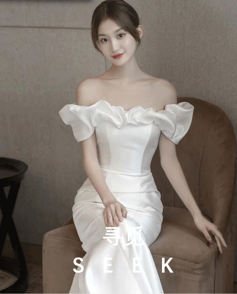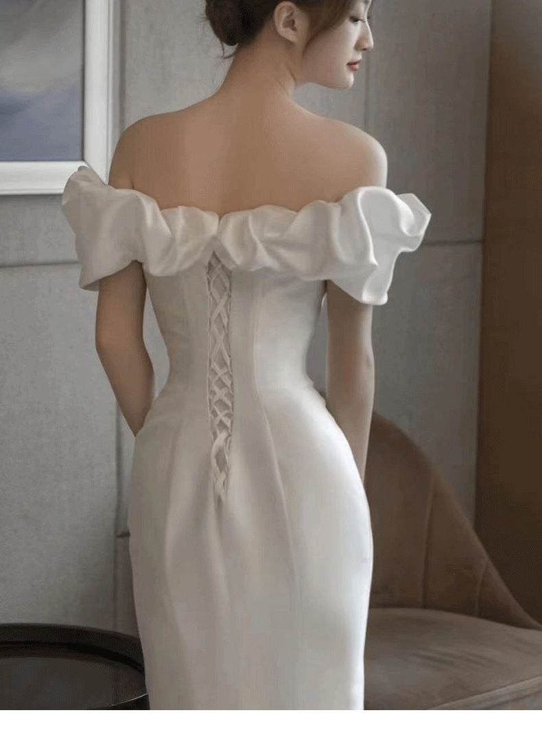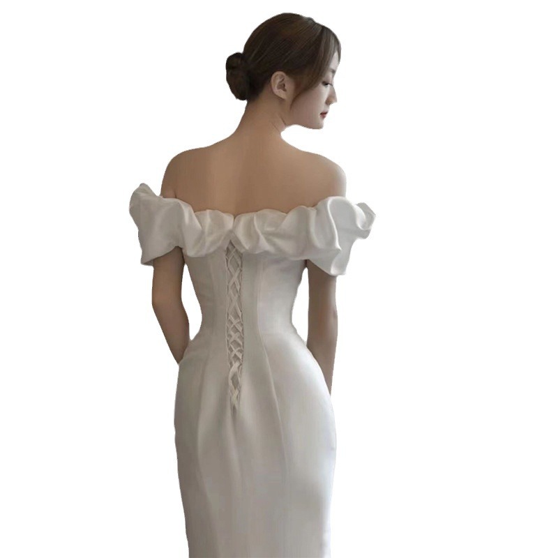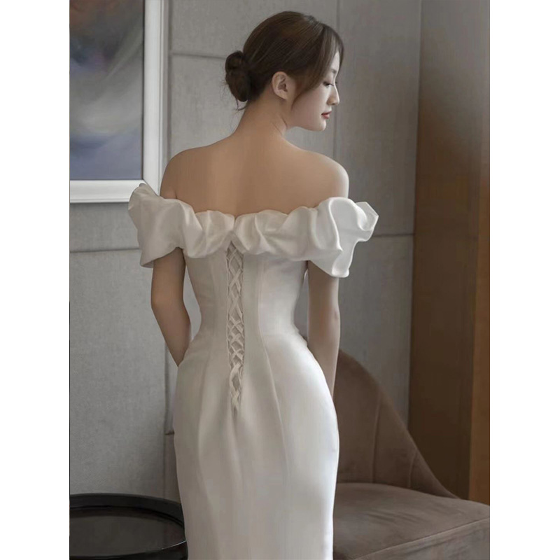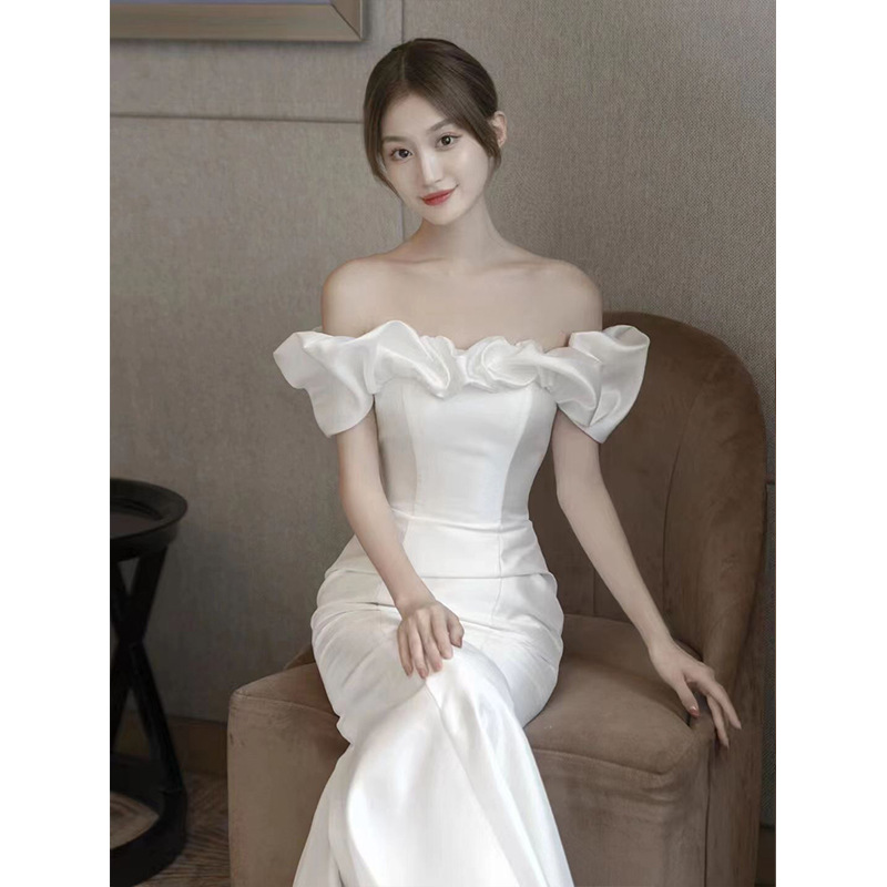 Новое свадебное платье из атласа, ретро-стиль, одно плечо, фасон "рыбий хвост", основная ткань — шифон, для невысоких, легкое летнее свадебное платье.