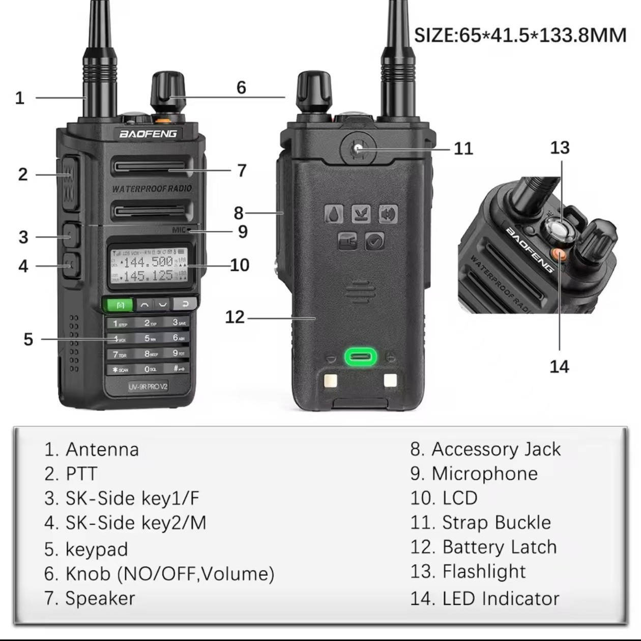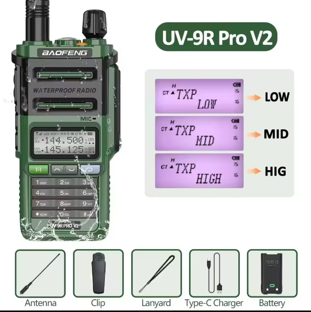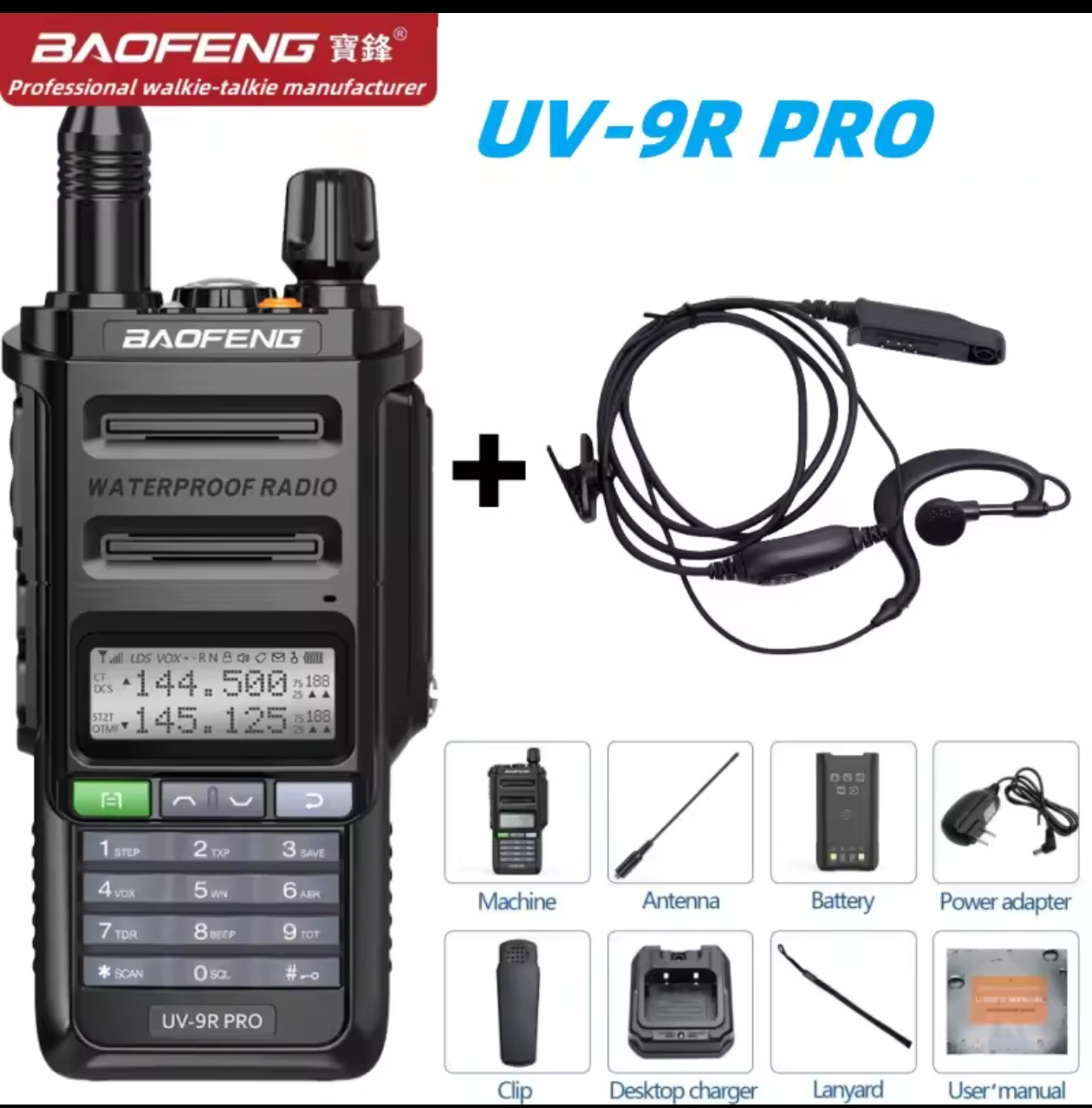Рация Baofeng UV-9R PRO, водонепроницаемая, с портом TYPE-C, морская, гражданская, высокомощная, двухдиапазонная, для использования на открытом воздухе