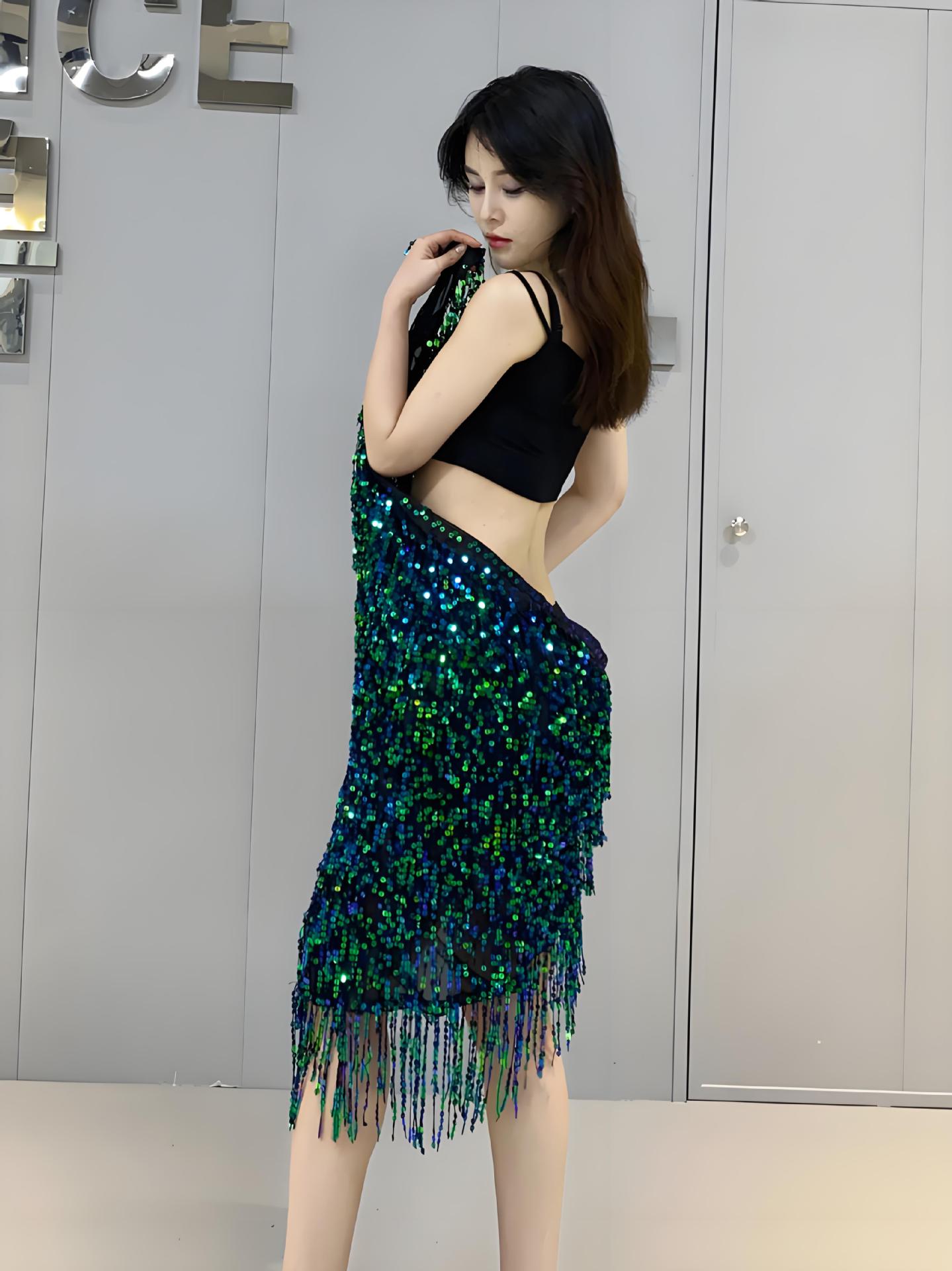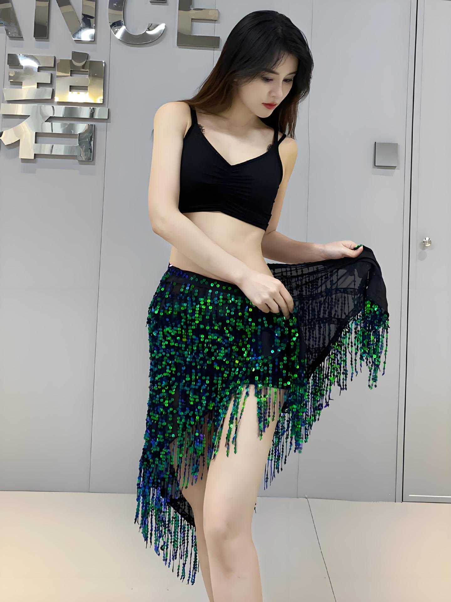 Тренировочная одежда для танца живота, поясничная цепь, ягодичный шарф, юбка с блестками, кисточка, сами, тяжелая работа, вдохновленная Y1015