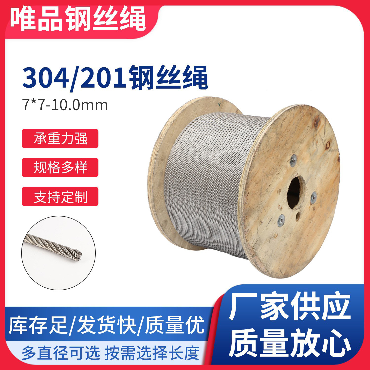 Канат из нержавеющей стали таможни 304 промышленная Тяговая подъемная Веревка 7*7-10 трос из нержавеющей стали