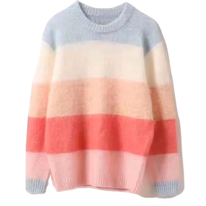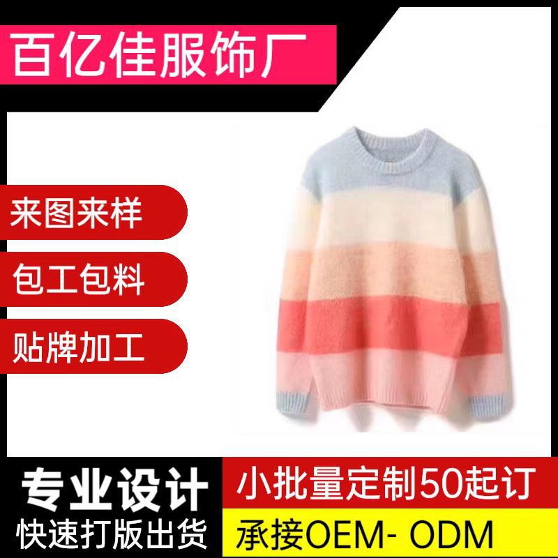 Дунгуань Даланг переработка свитер завод мохер полосатый вязаный свитер женщин подгонять OEM