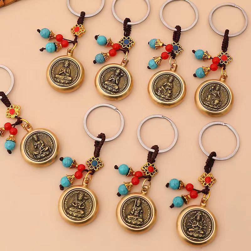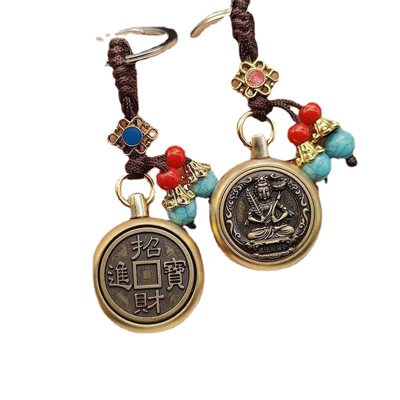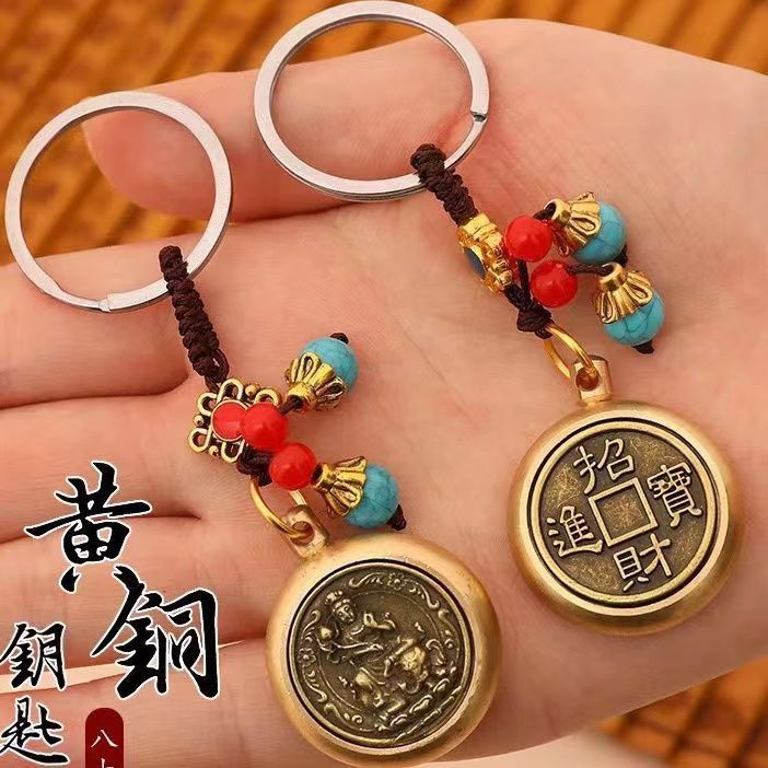 Латунный восьмерый Святой покровитель превратит деньги пять императоров брелок с деньгами, чтобы заработать деньги в сокровища, эта Автомобильная брелок с зодиаком Будды