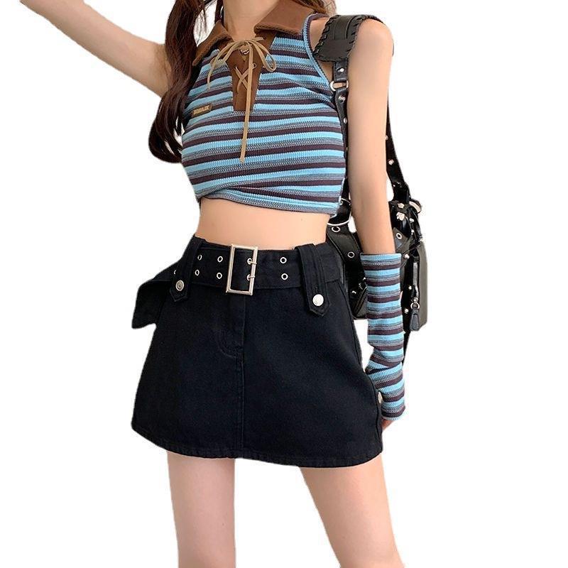 Джинсовая короткая юбка в стиле ретро с высокой талией, женская юбка, лето 2021, новая сексуальная мини-юбка трапециевидной формы, закрывающая бедра, кюлоты