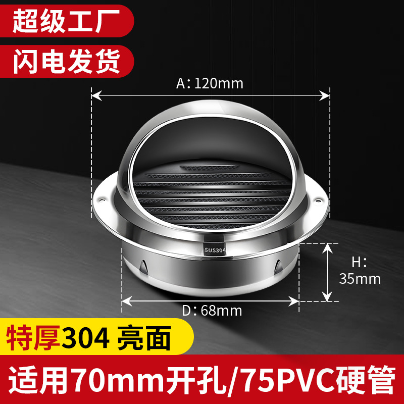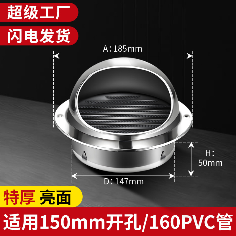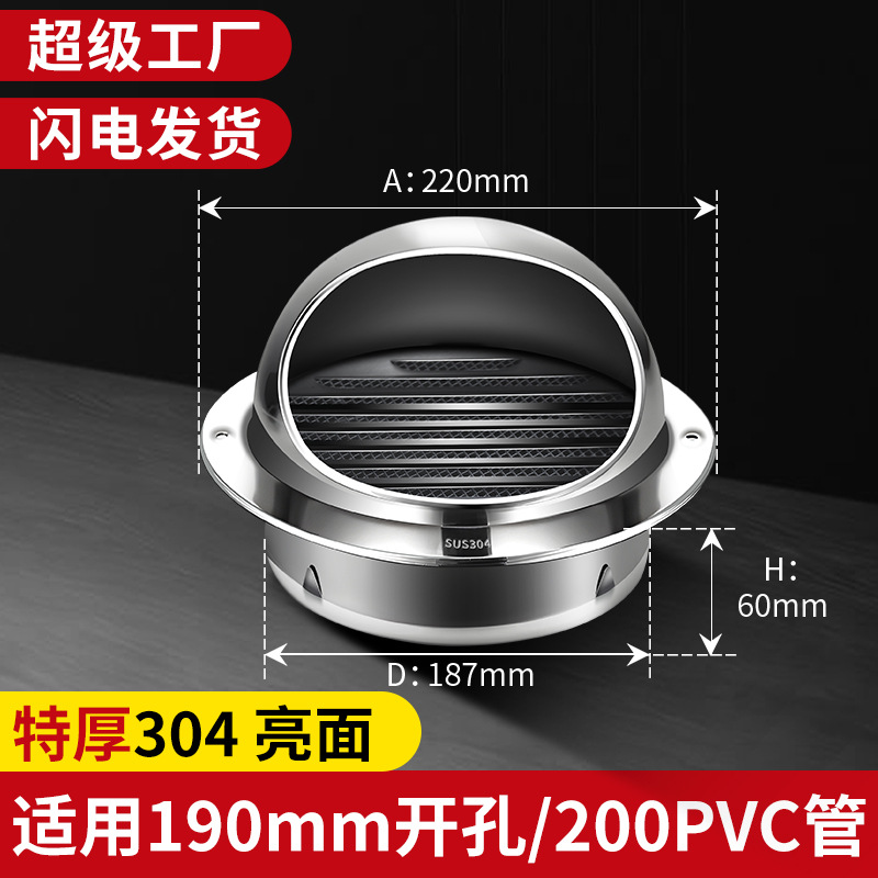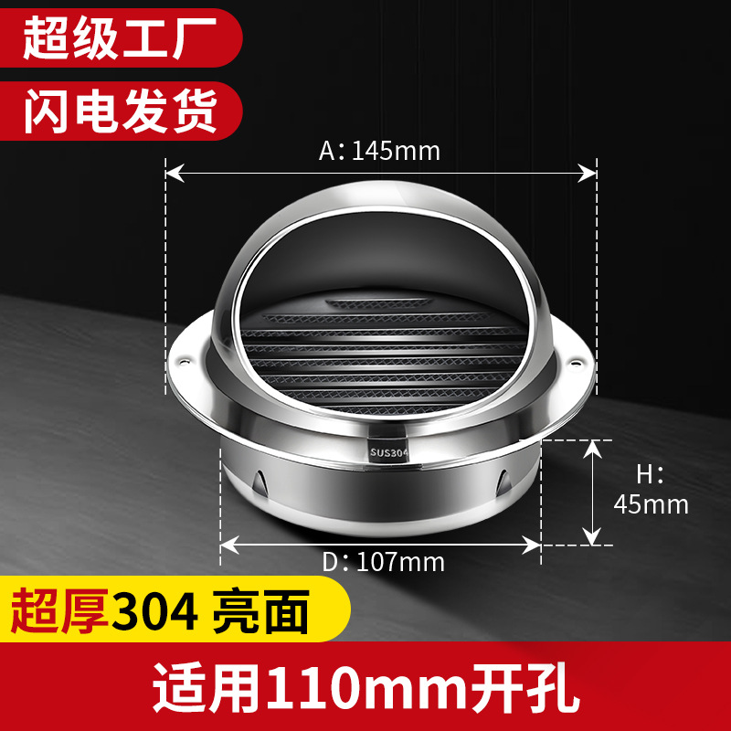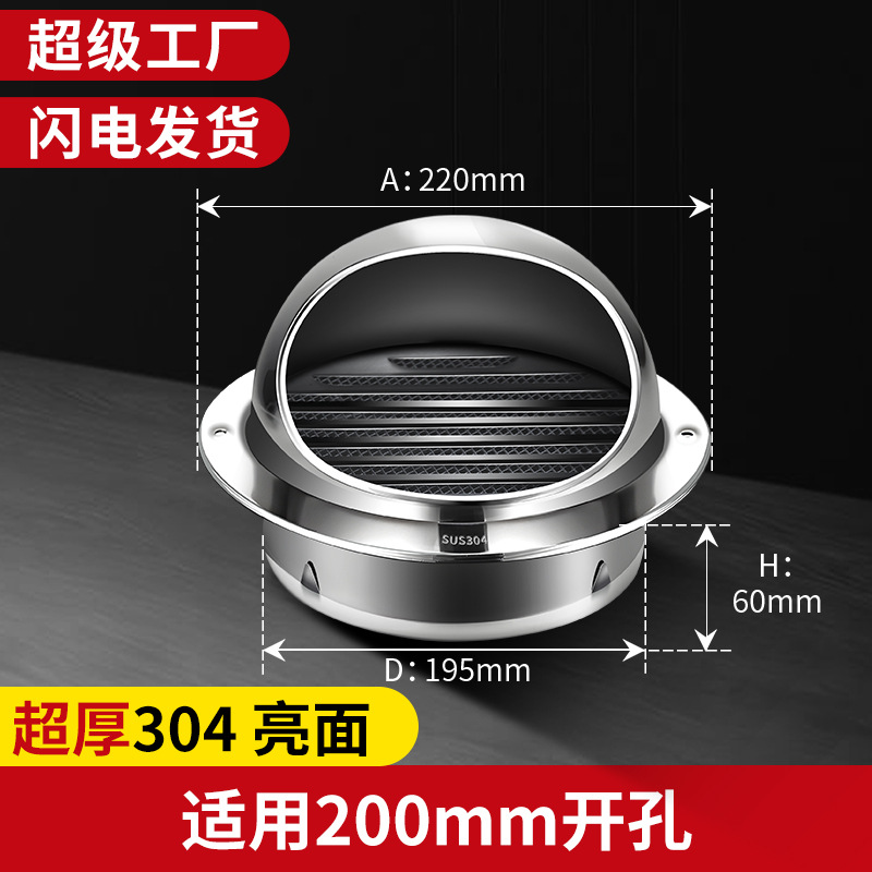 Капюшон из нержавеющей стали 304, наружная стена, вентиляционная вытяжка, кухонный вентилятор, Вытяжная ветрозащитная дождевик для ванной комнаты