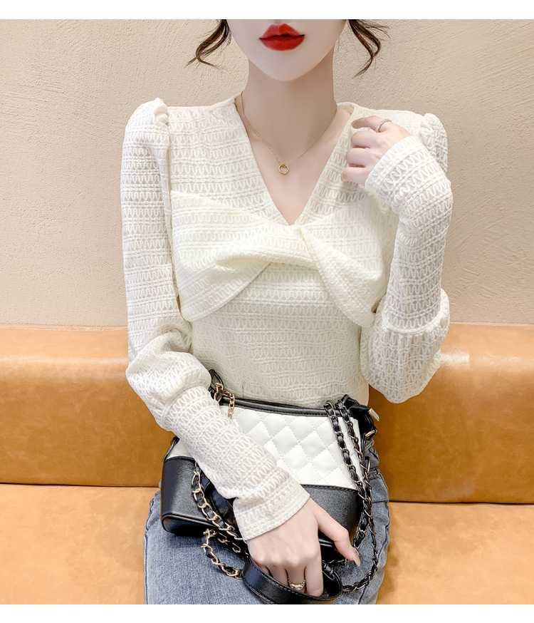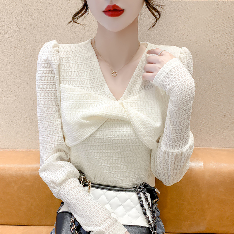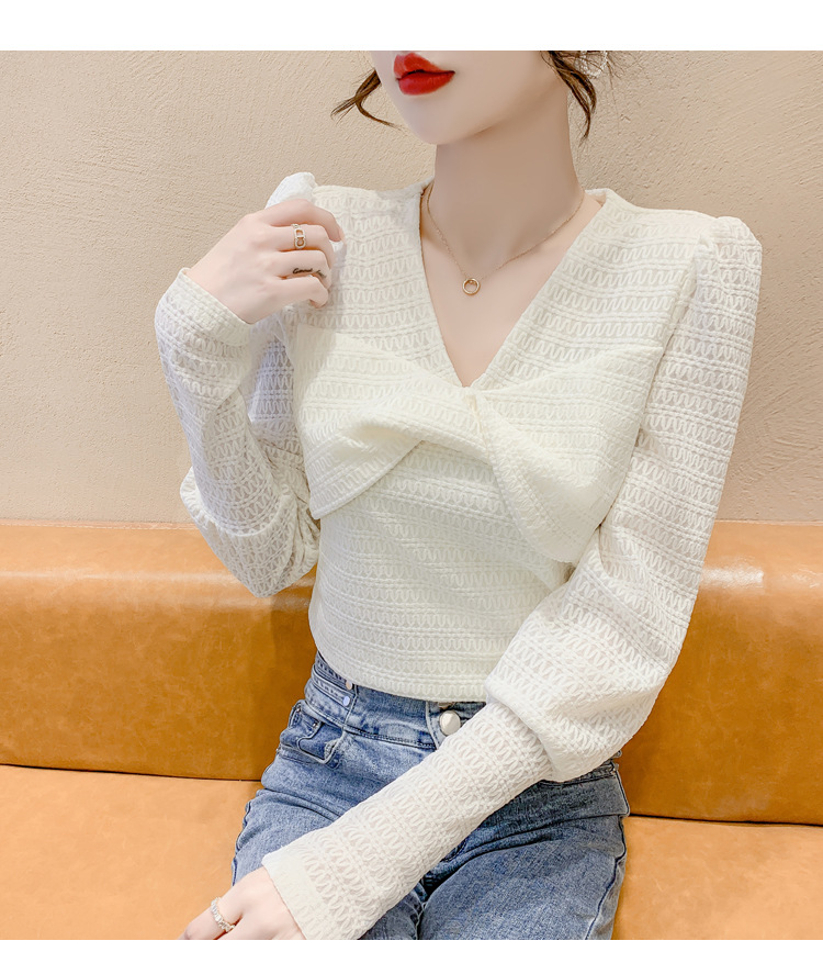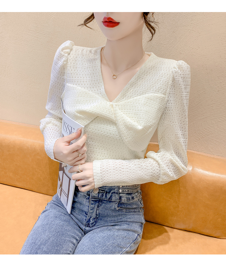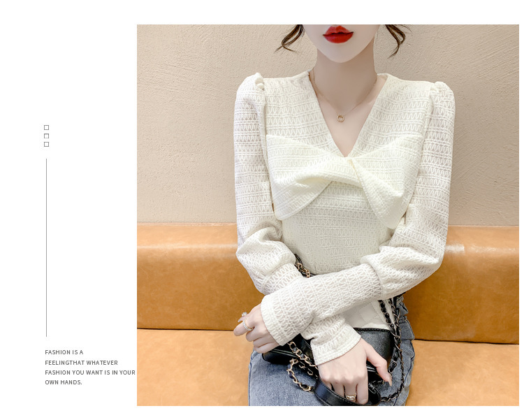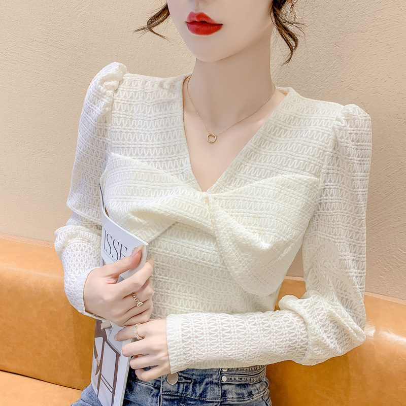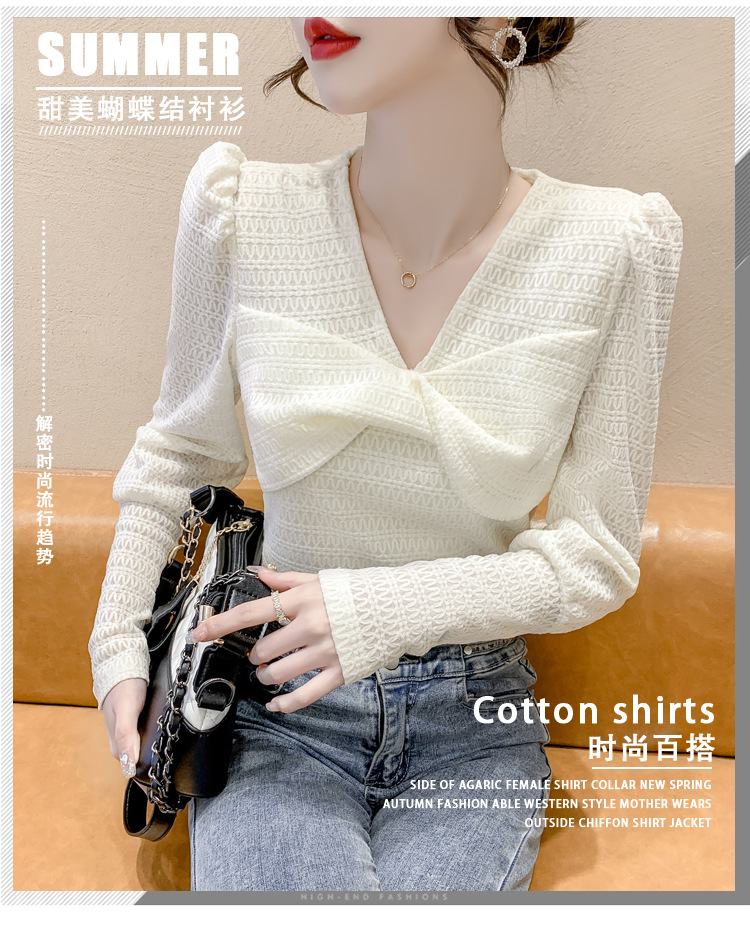 Весенняя рубашка с v-образным вырезом, женский топ с длинными рукавами шикарного дизайна