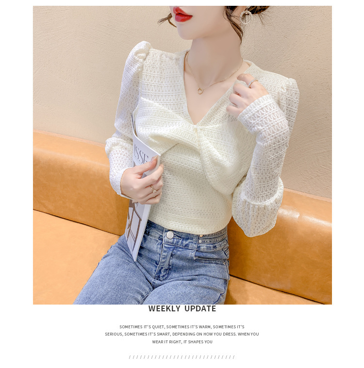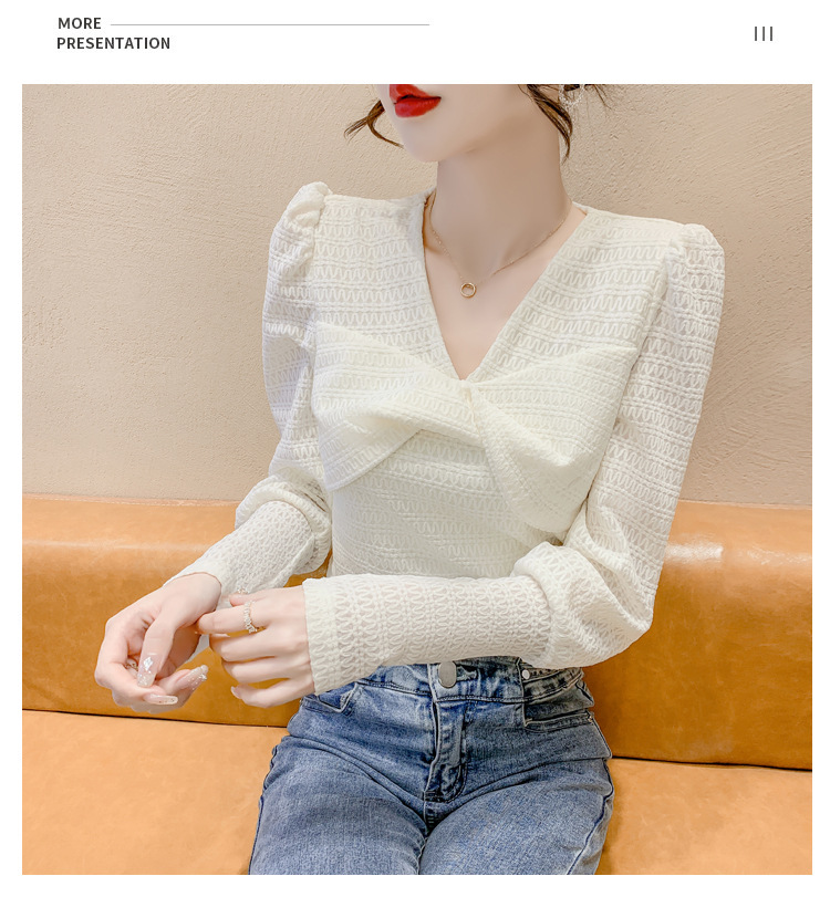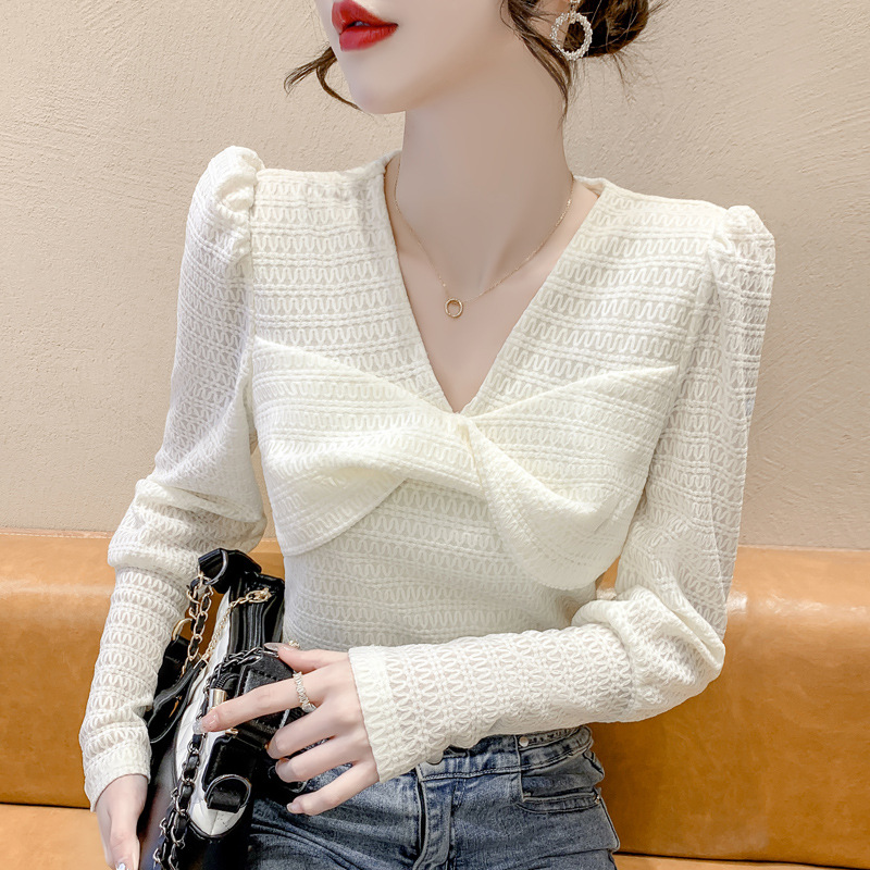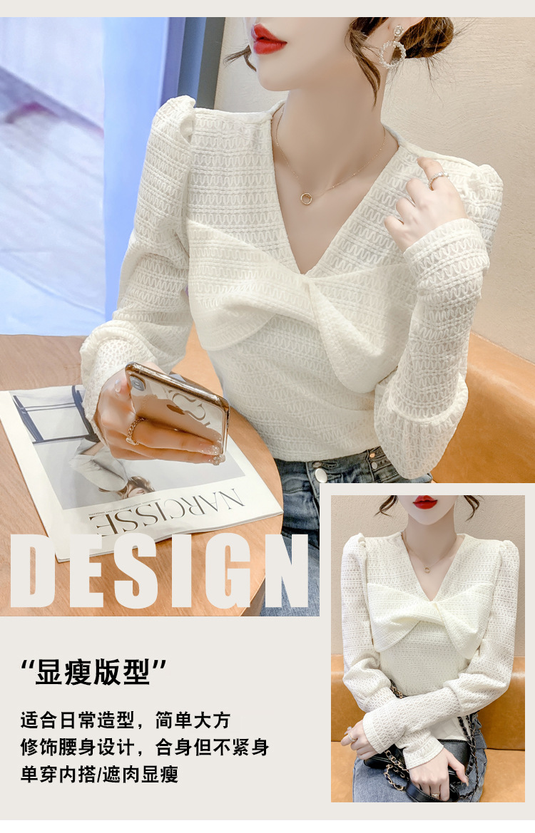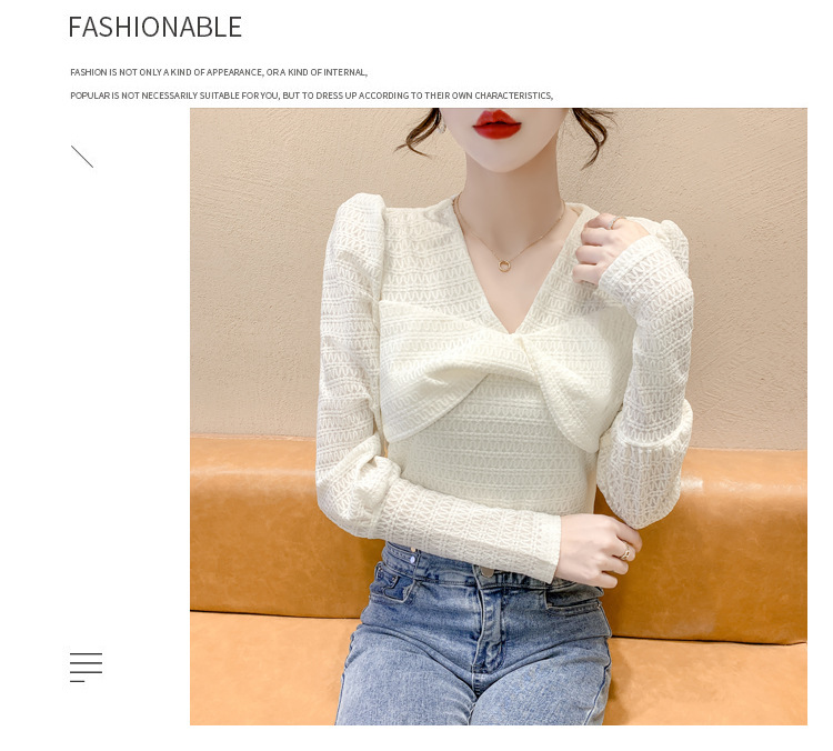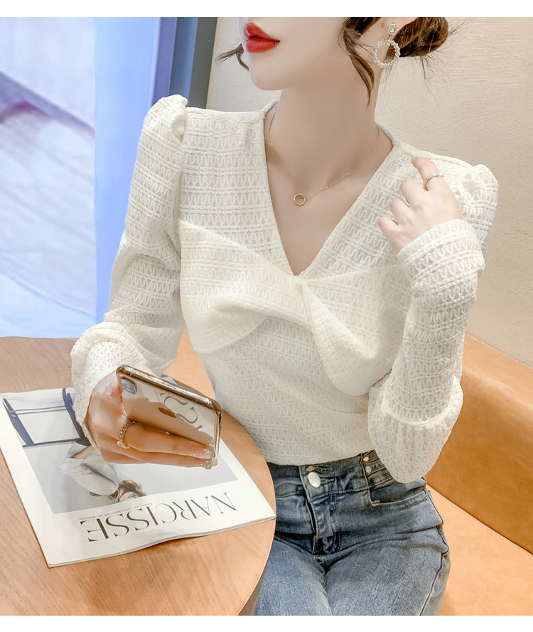 Весенняя рубашка с v-образным вырезом, женский топ с длинными рукавами шикарного дизайна