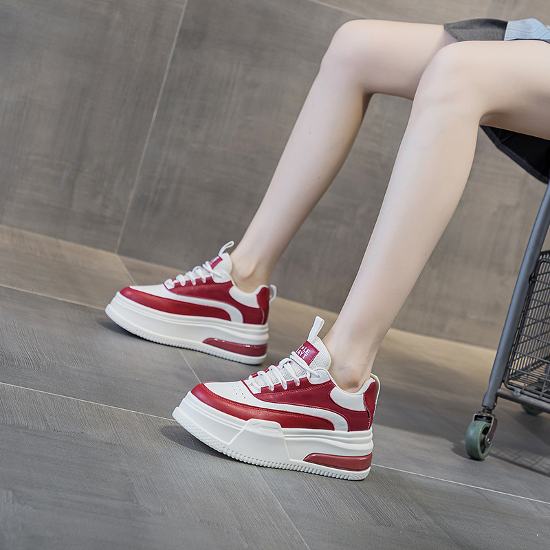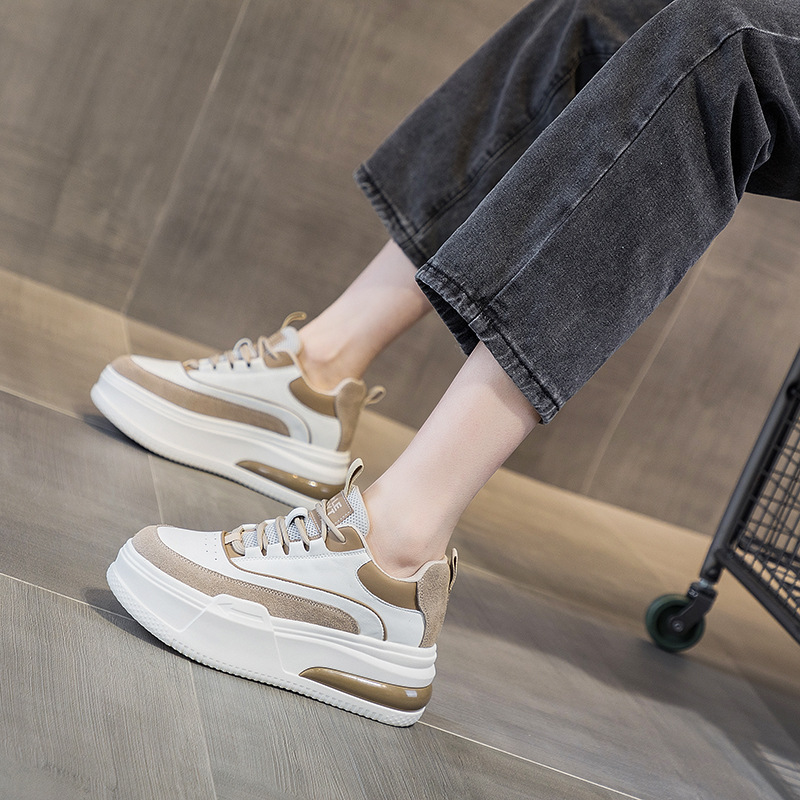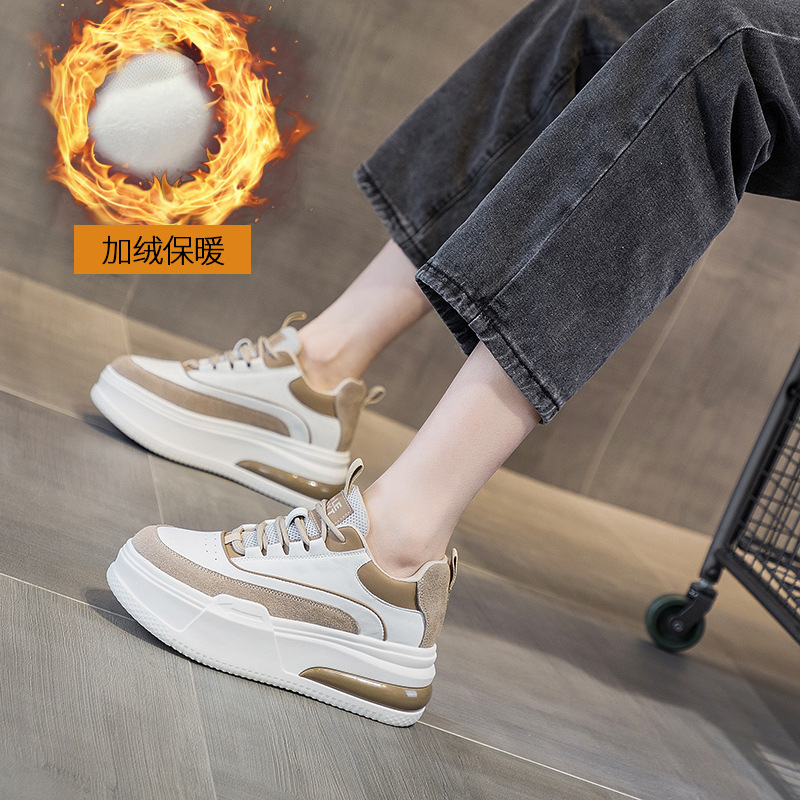 Кожаные белые туфли на толстой подошве, увеличивающие внутреннюю высоту, женские осенне-зимние кроссовки 2025 года на флисовой подкладке, новые универсальные тренды для спорта и отдыха.
