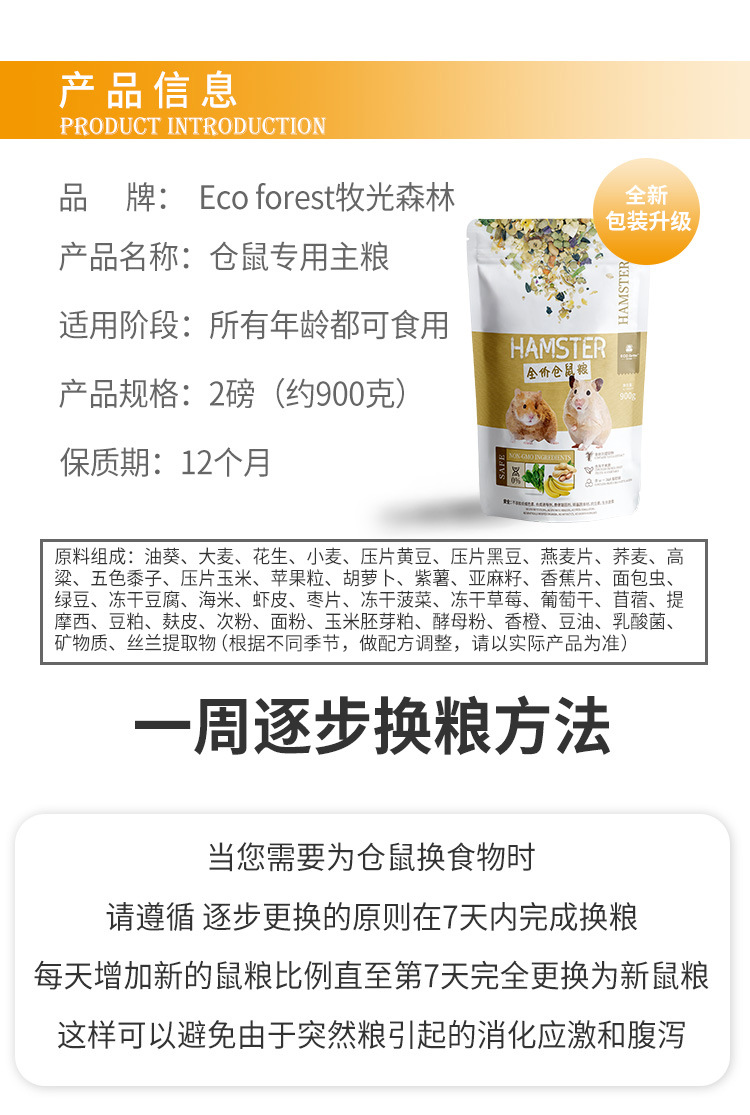 ECO Forest Muguang Forest Хомяк Пищевой материал Золотой медведь Специальный корм для закусок Питательная основная еда 900 г