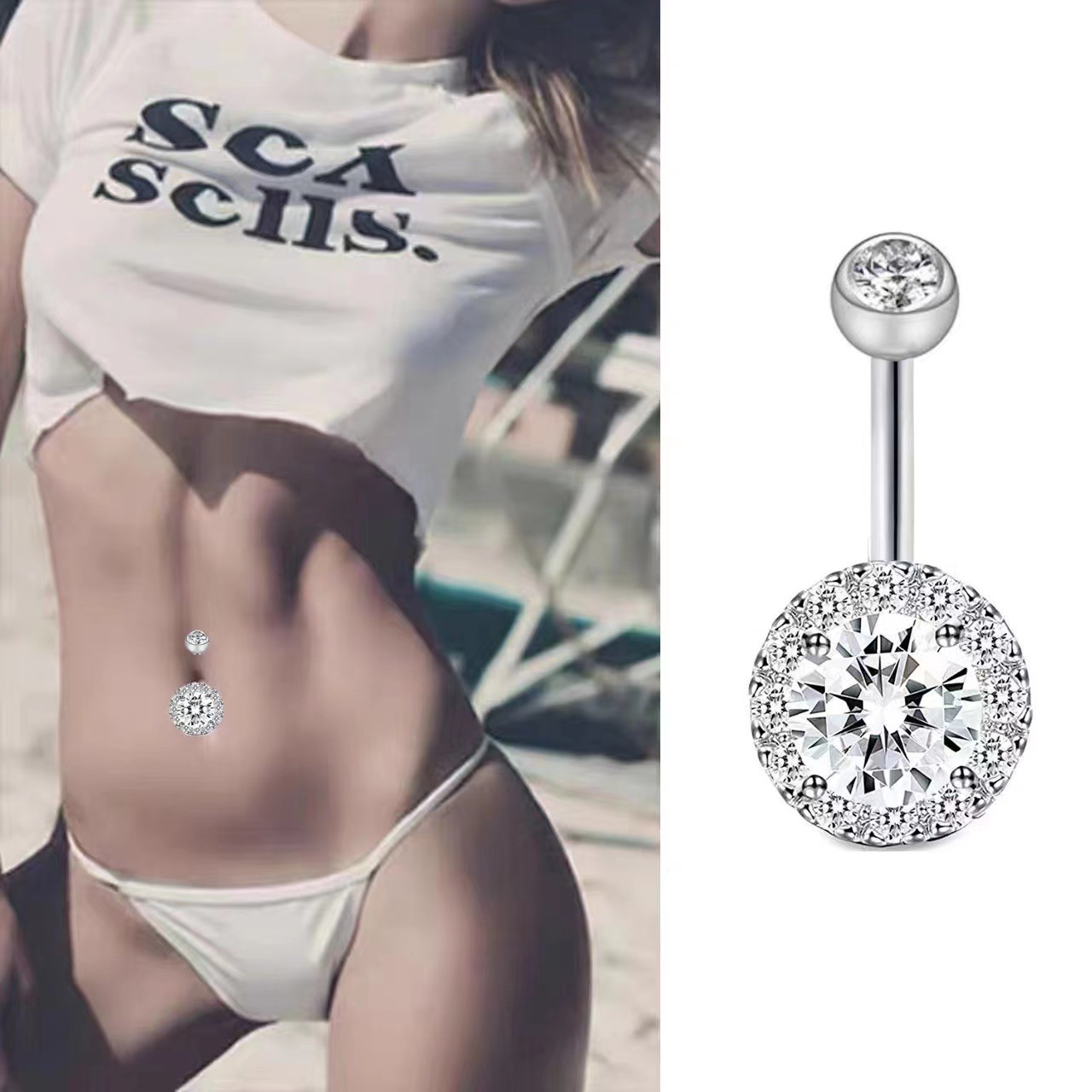 AliExpress eBay Amazon взрывы из нержавеющей стали для пупка гвоздь с цирконом кольцо для пупка пирсинг ювелирные изделия