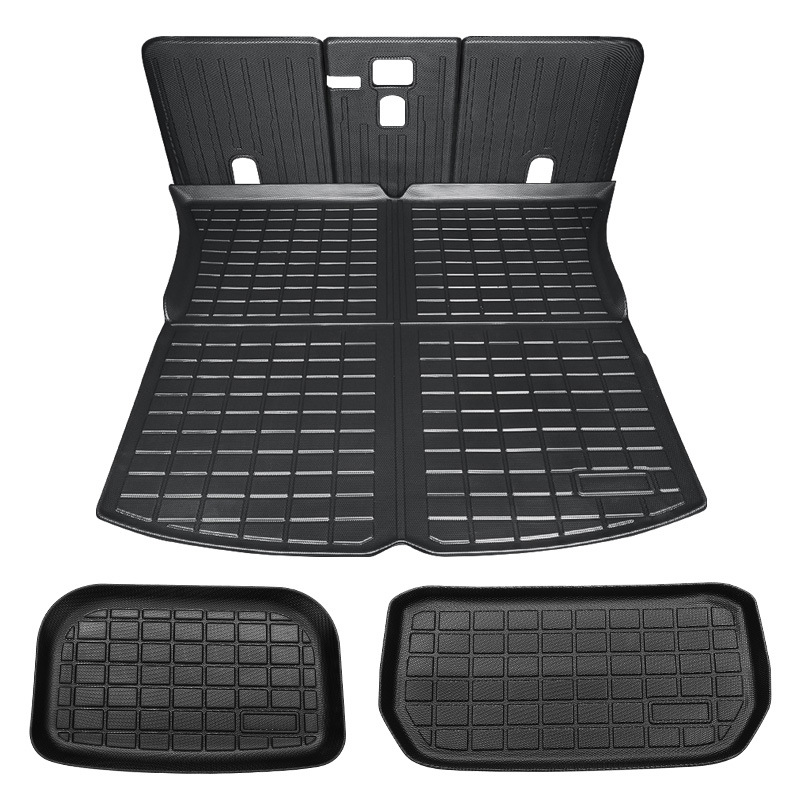 Подходит для 24 моделей Tesla Model 3/Y: передний коврик в багажник и коврик на спинку сиденья из ТПЭ с текстурой под кожу, грязеотталкивающий.