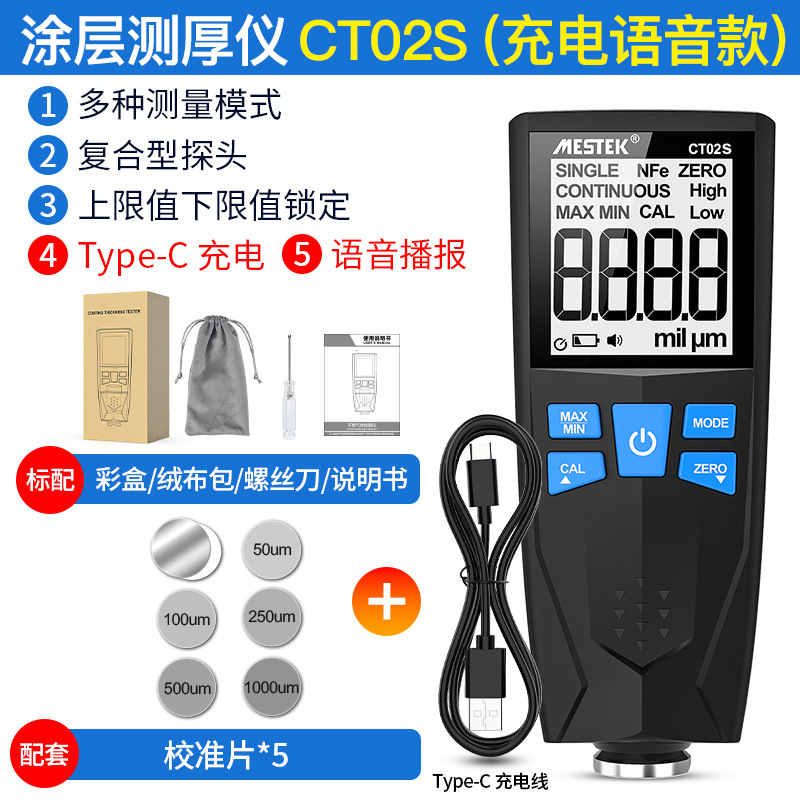 Датчик толщины покрытия Высокоточный железо-алюминиевый тестер толщины пленки автомобильной краски двойного назначения Датчик толщины пленки краски CT02