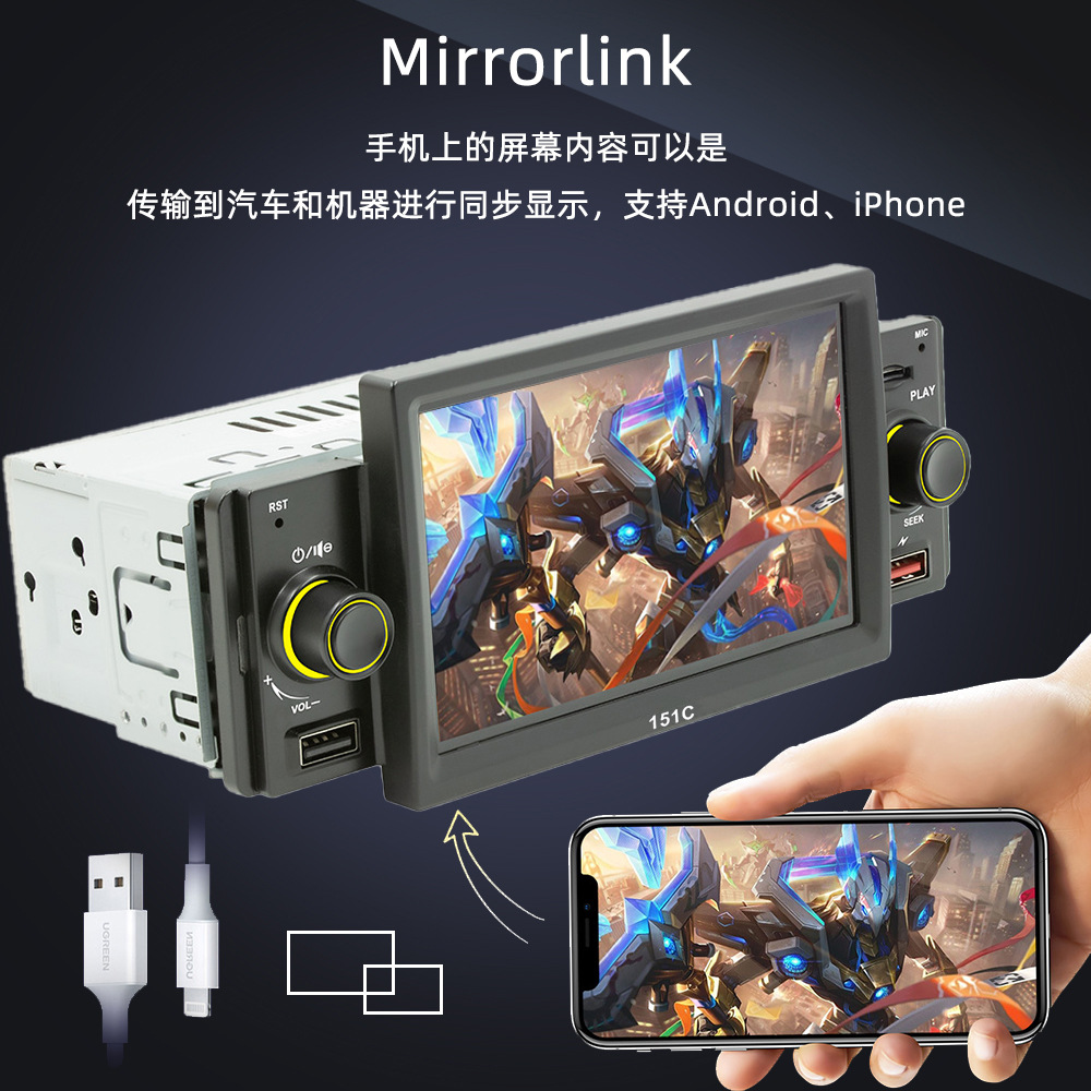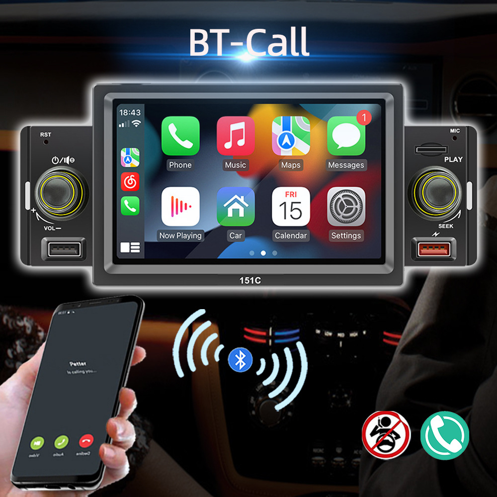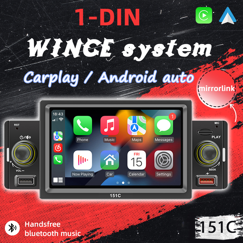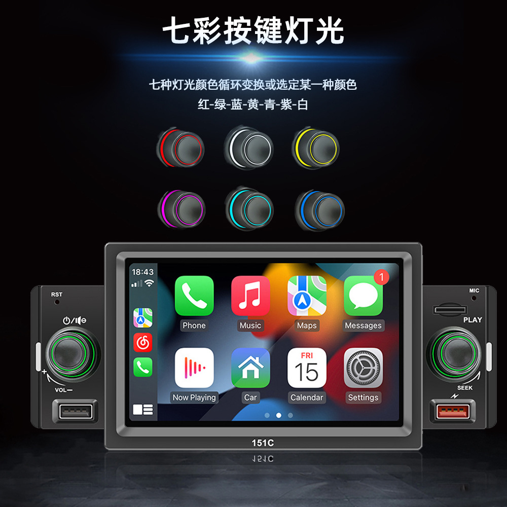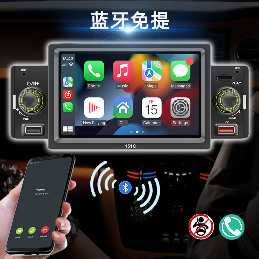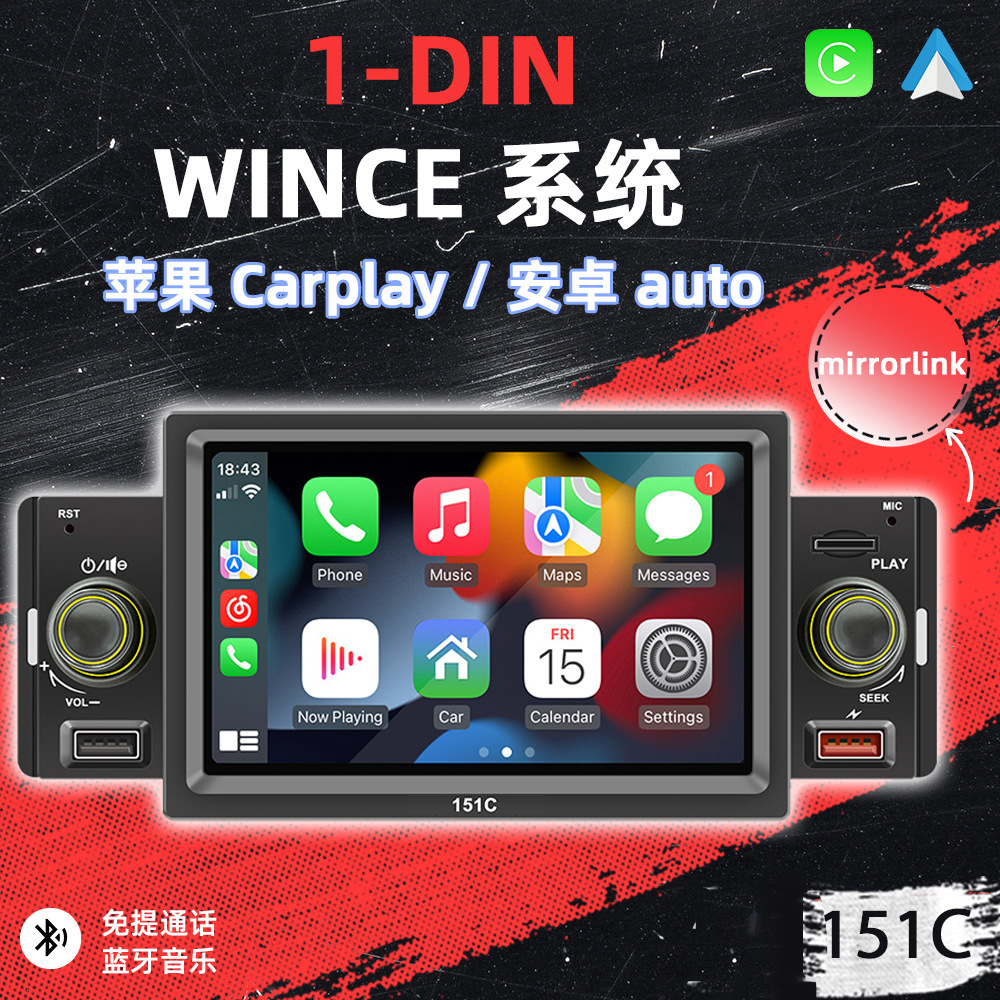 151C(carplay) 5寸单锭短款winch系统手机互联车载蓝牙MP5播放器