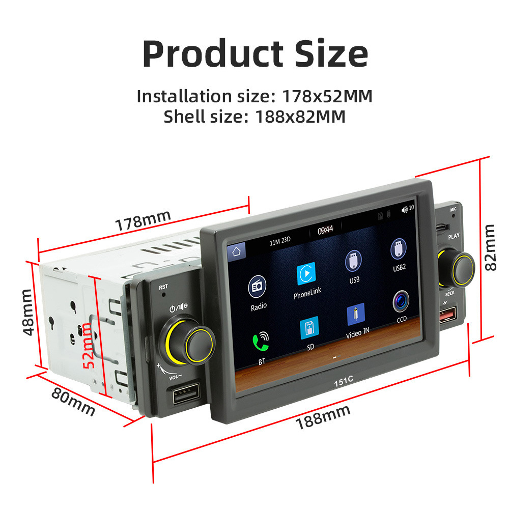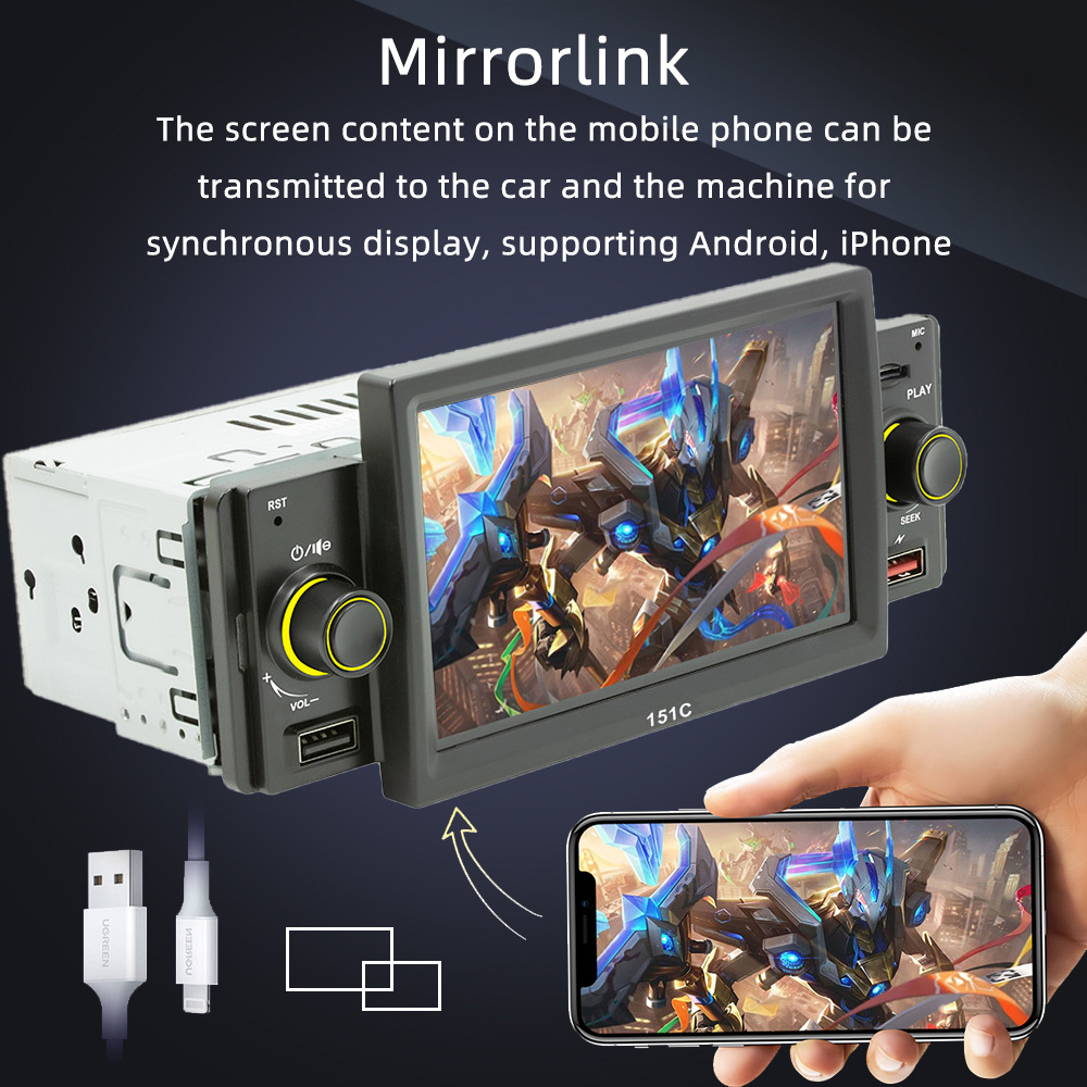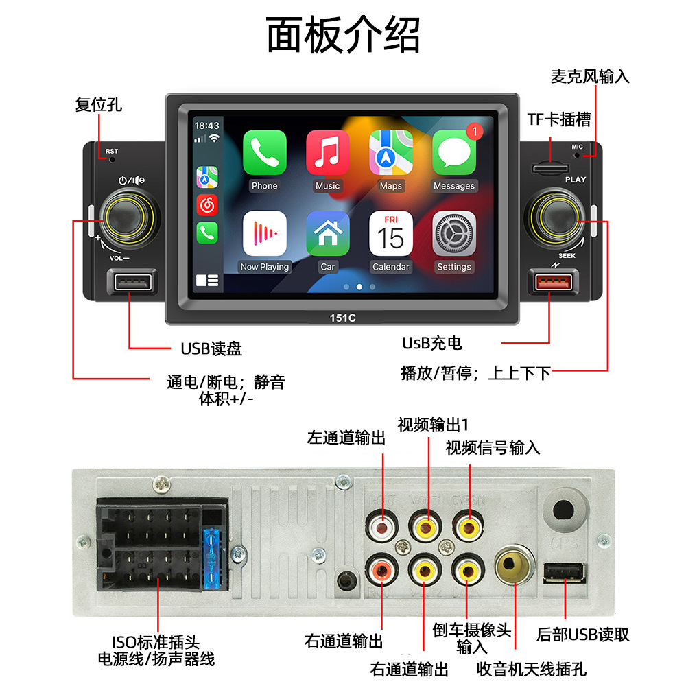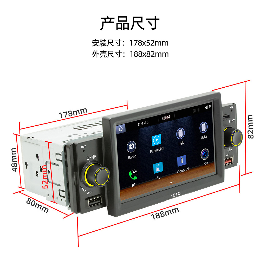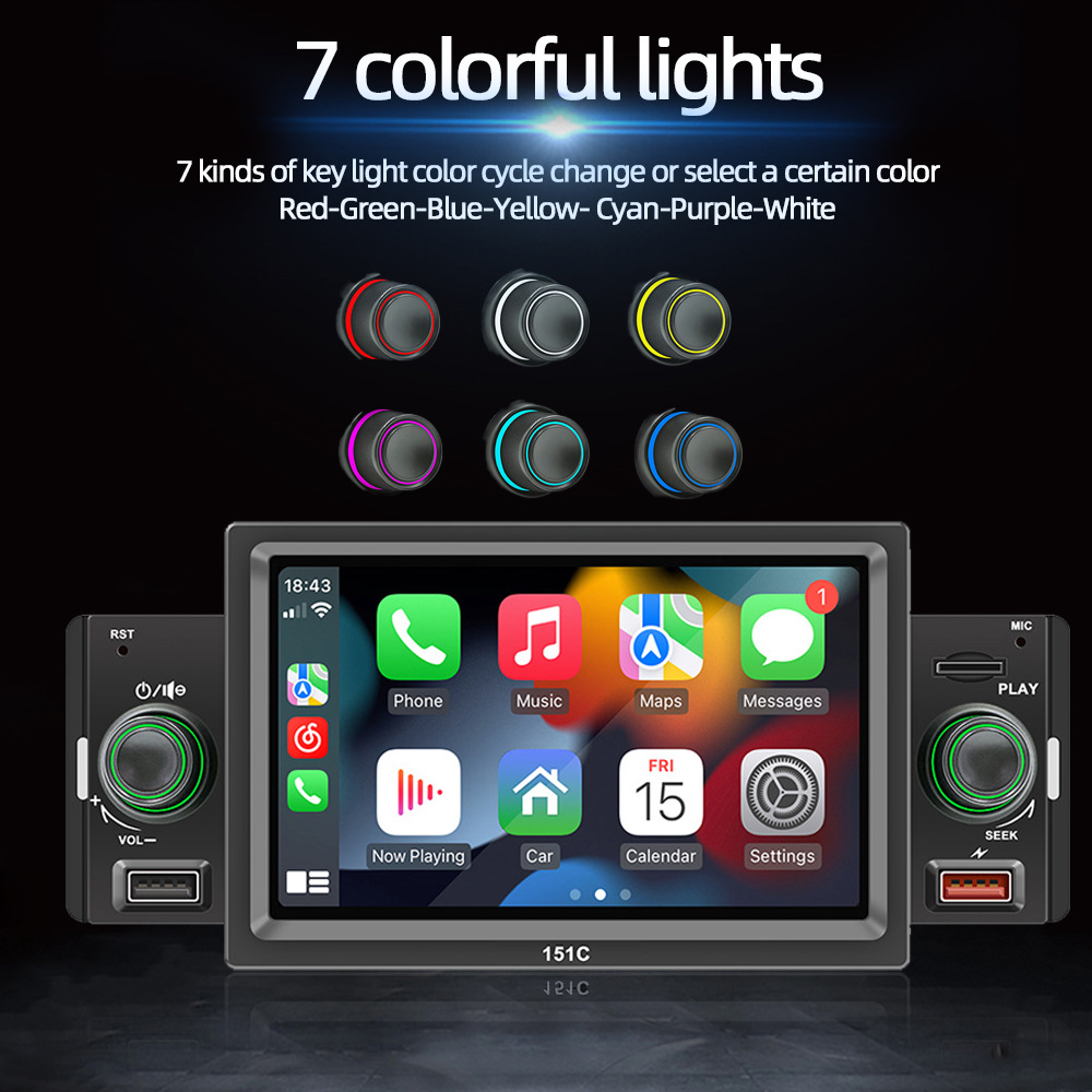 151C(carplay) 5寸单锭短款winch系统手机互联车载蓝牙MP5播放器