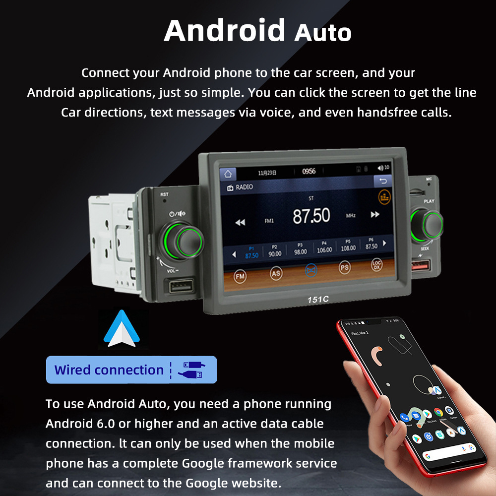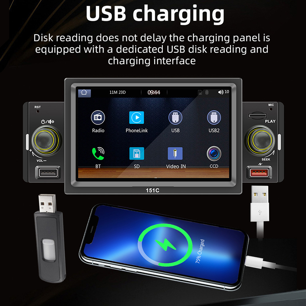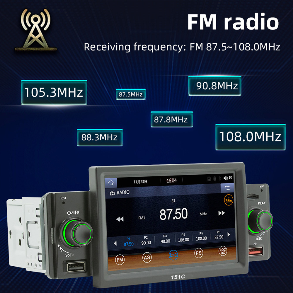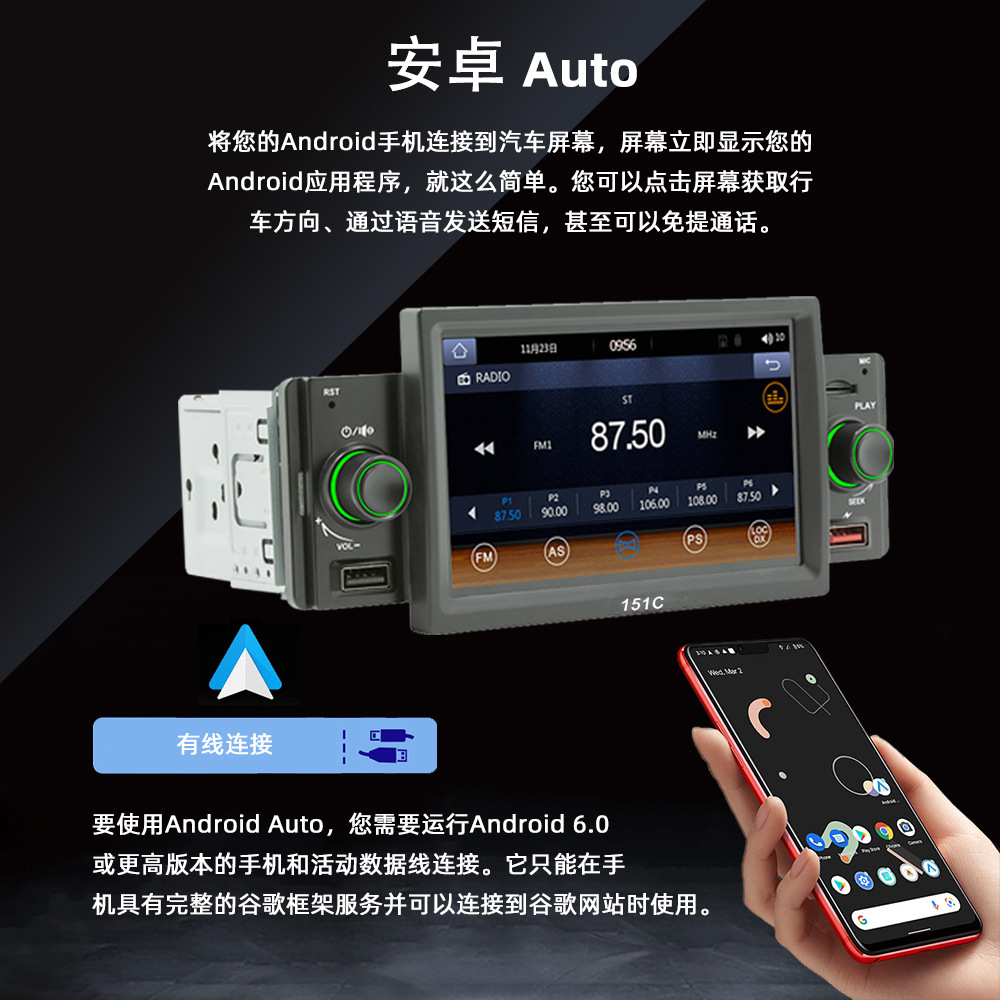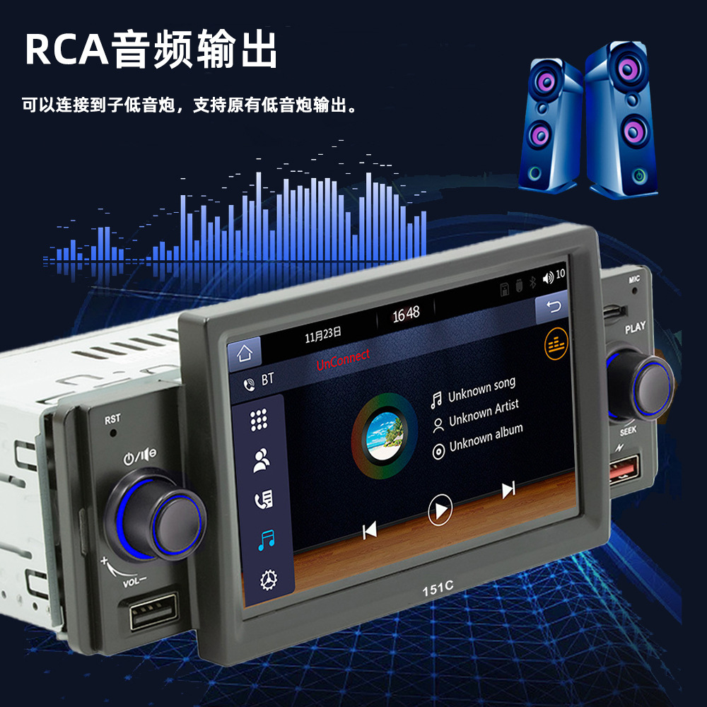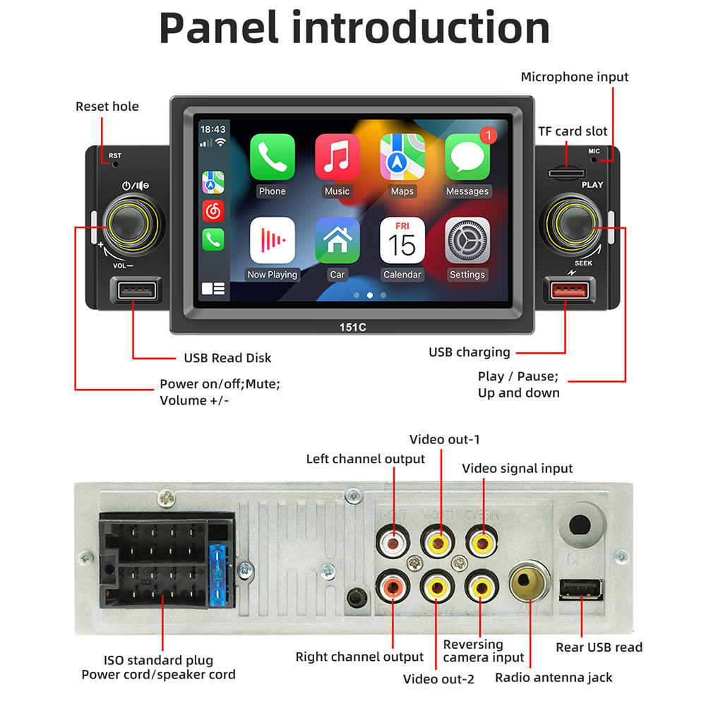 151C(carplay) 5寸单锭短款winch系统手机互联车载蓝牙MP5播放器