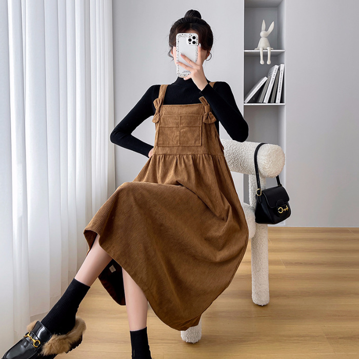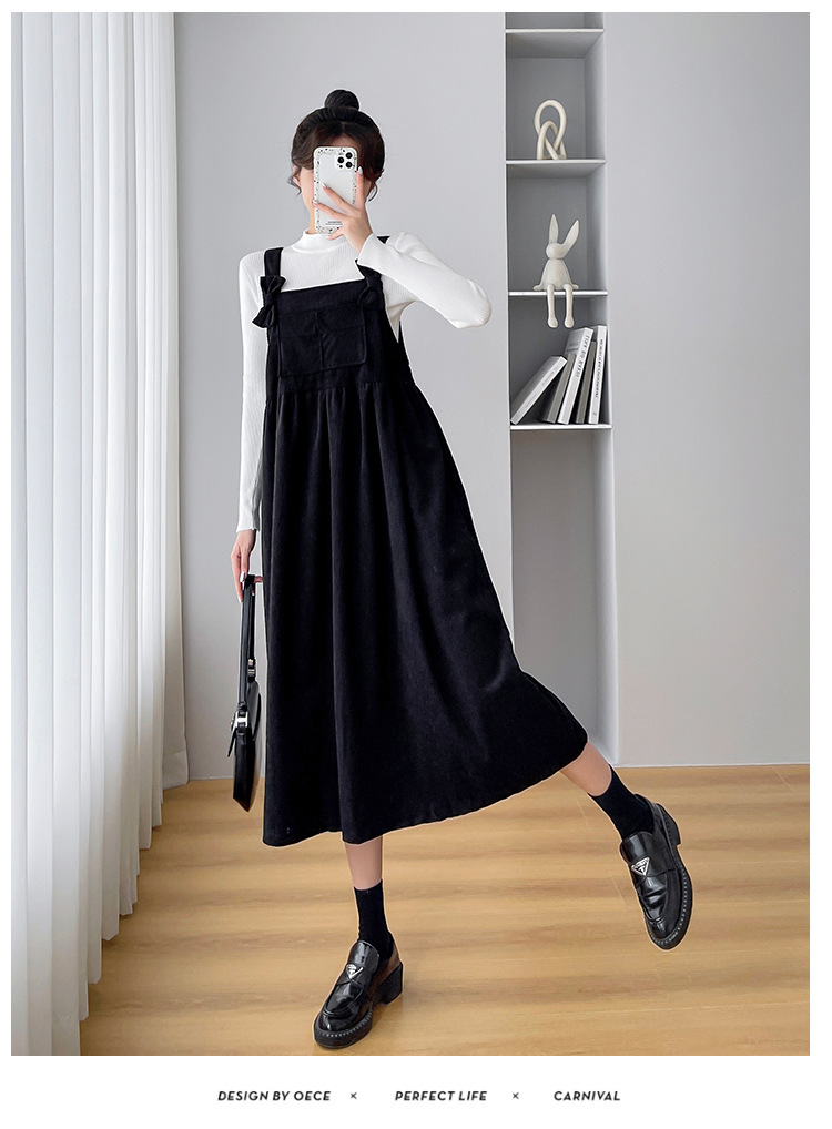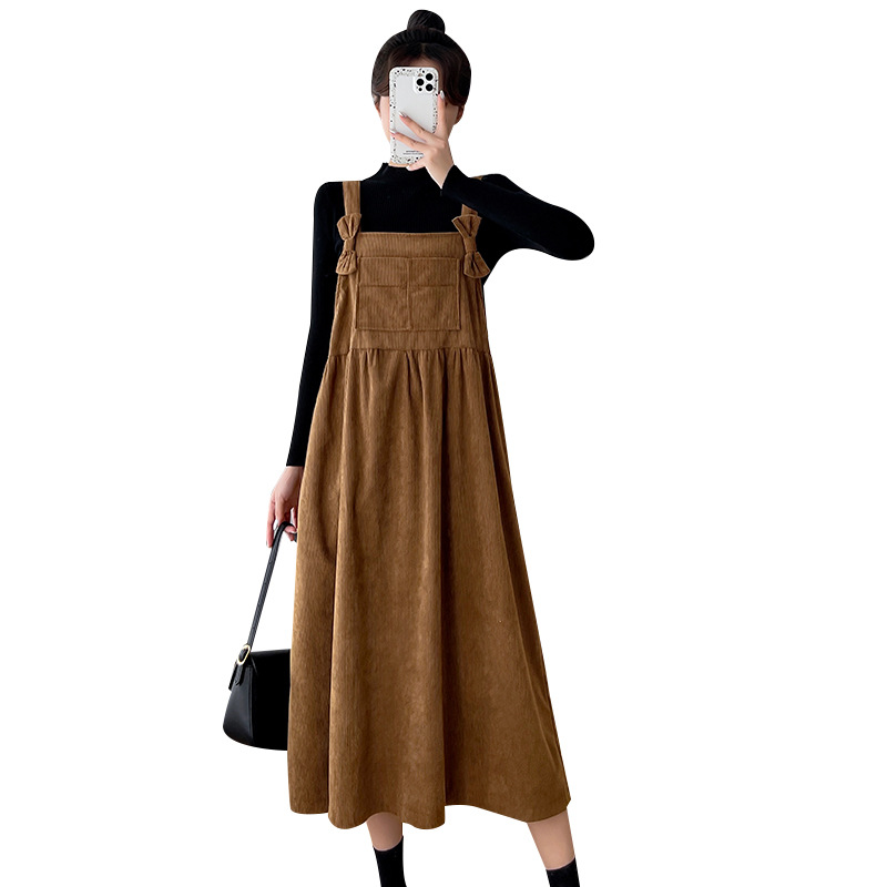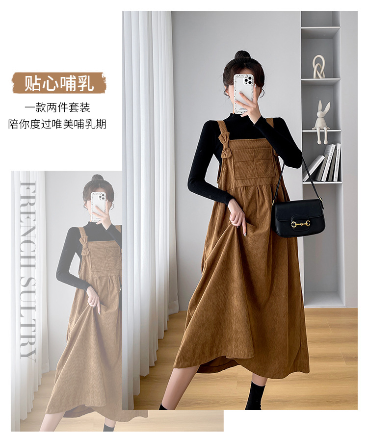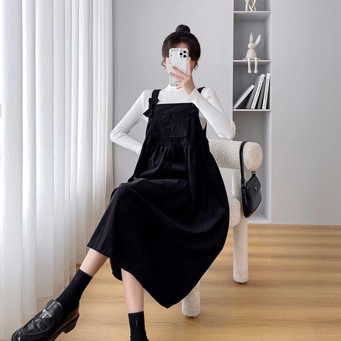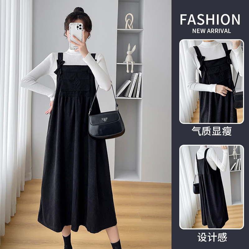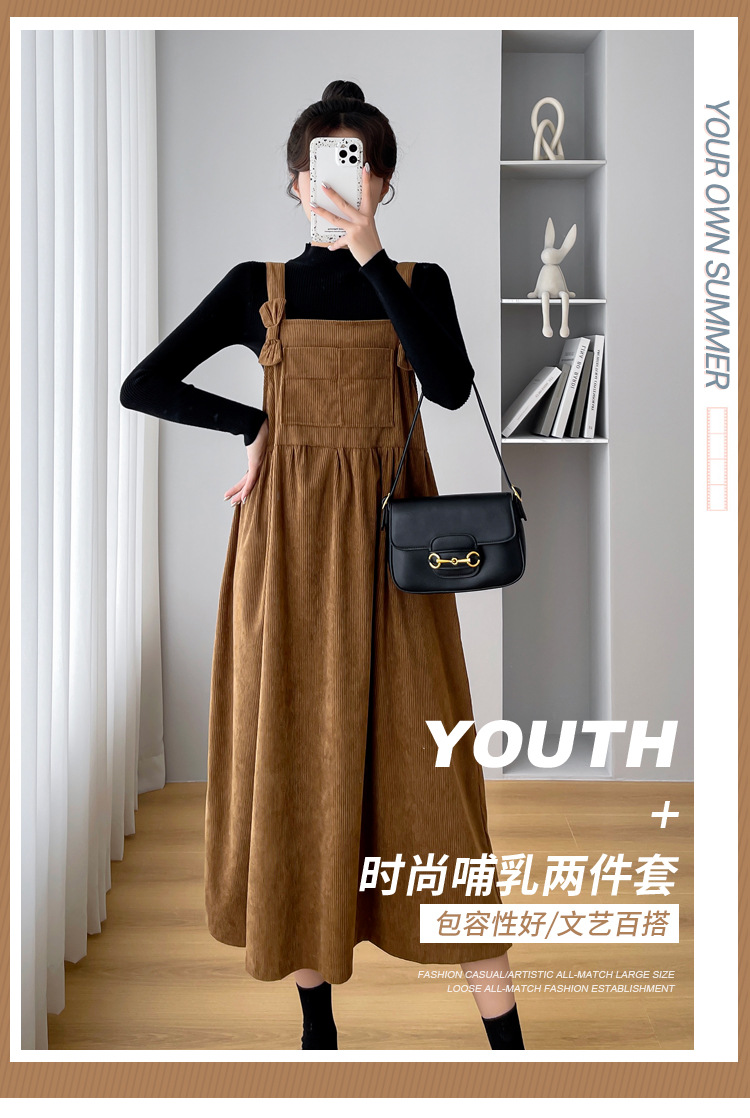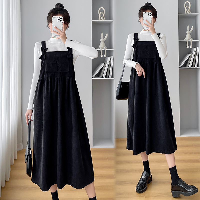 Юбка для беременных, осенняя Новая мода, уменьшающая возраст, свободная Вельветовая юбка на бретелях с бантом для кормления грудью, платье, костюм