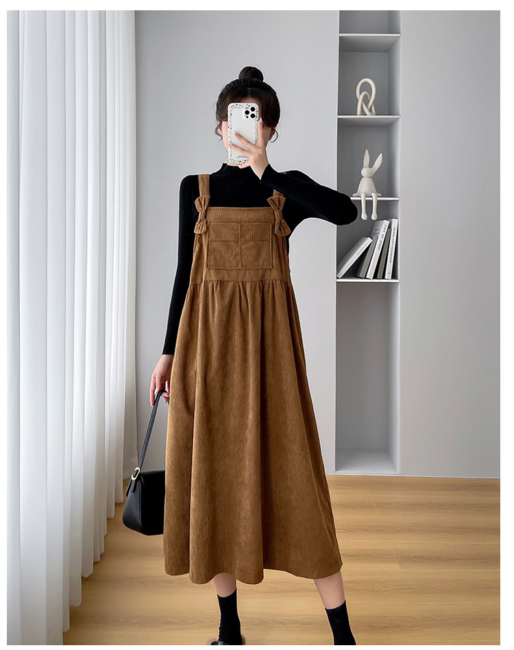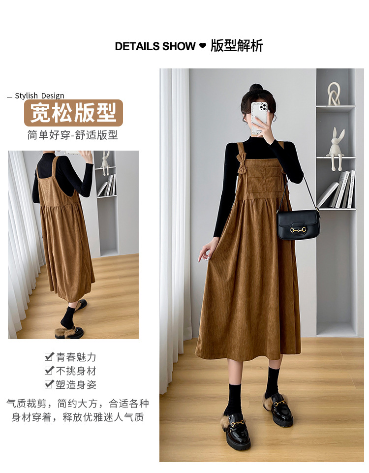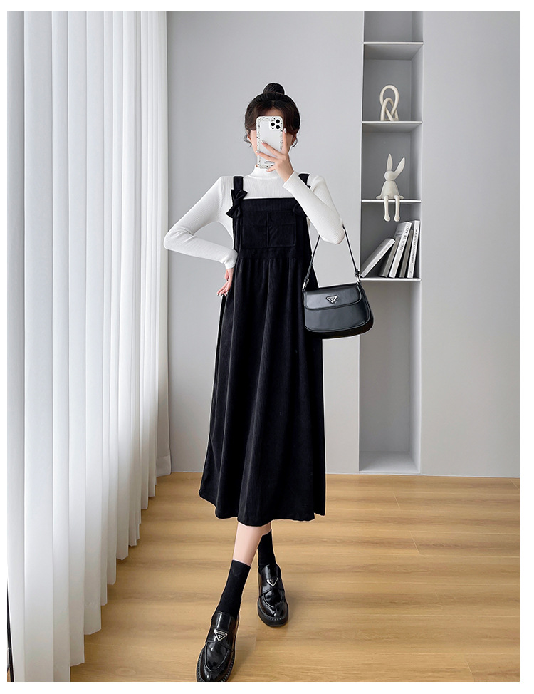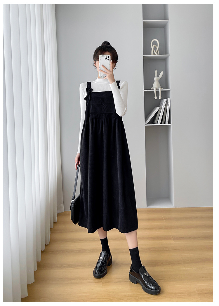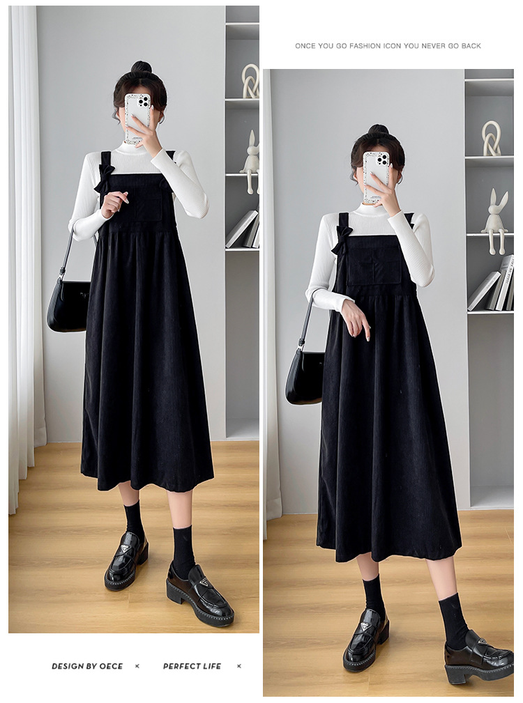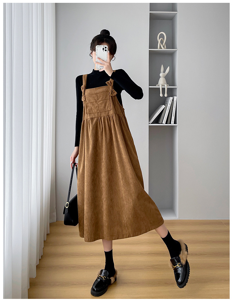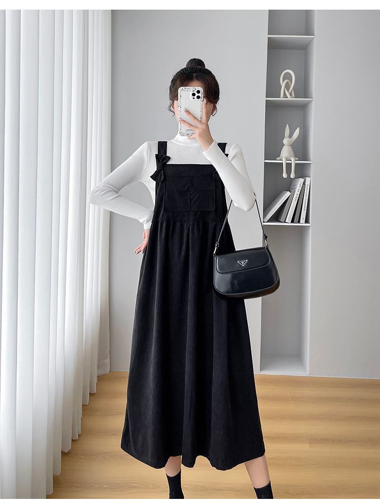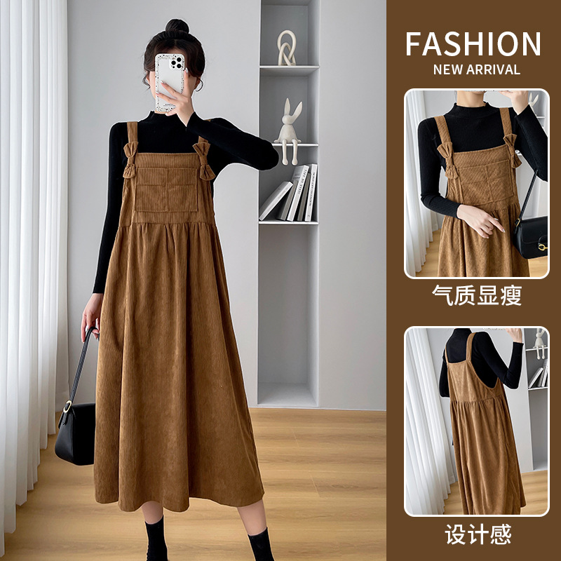 Юбка для беременных, осенняя Новая мода, уменьшающая возраст, свободная Вельветовая юбка на бретелях с бантом для кормления грудью, платье, костюм