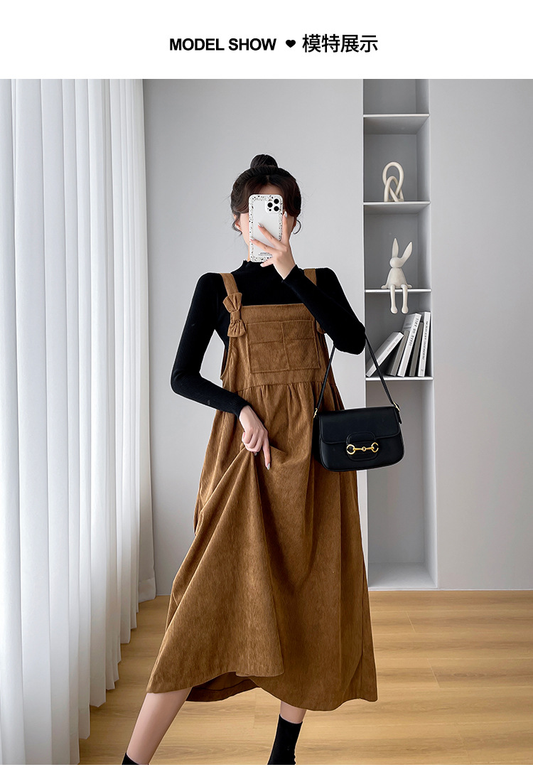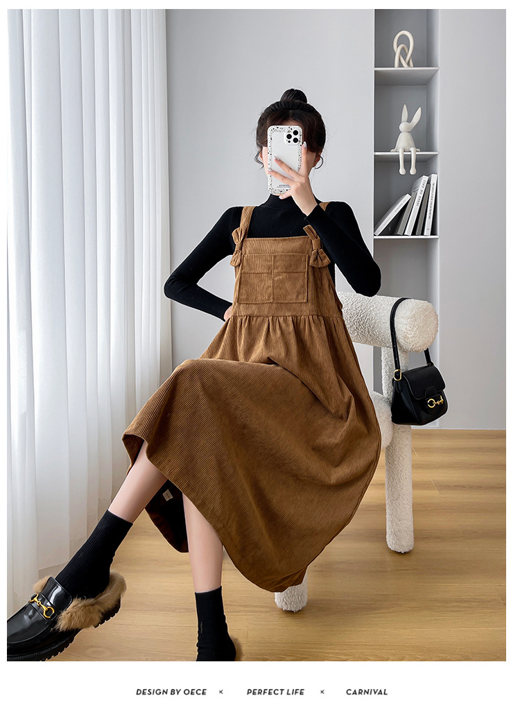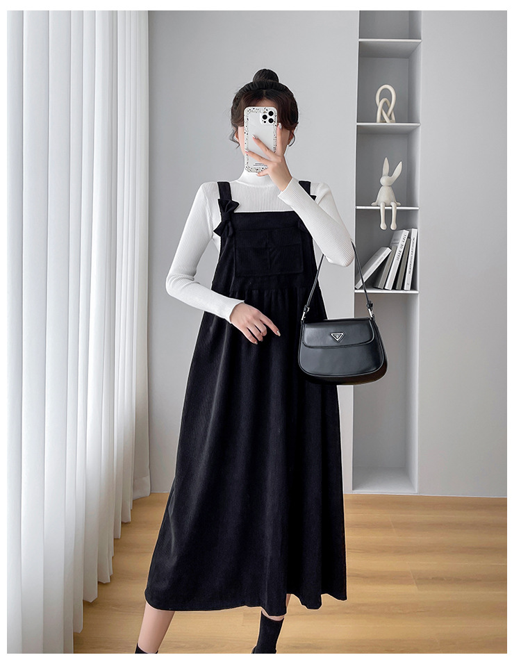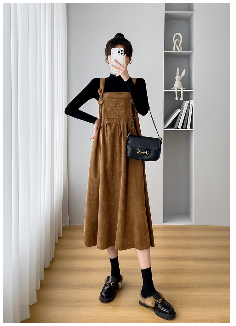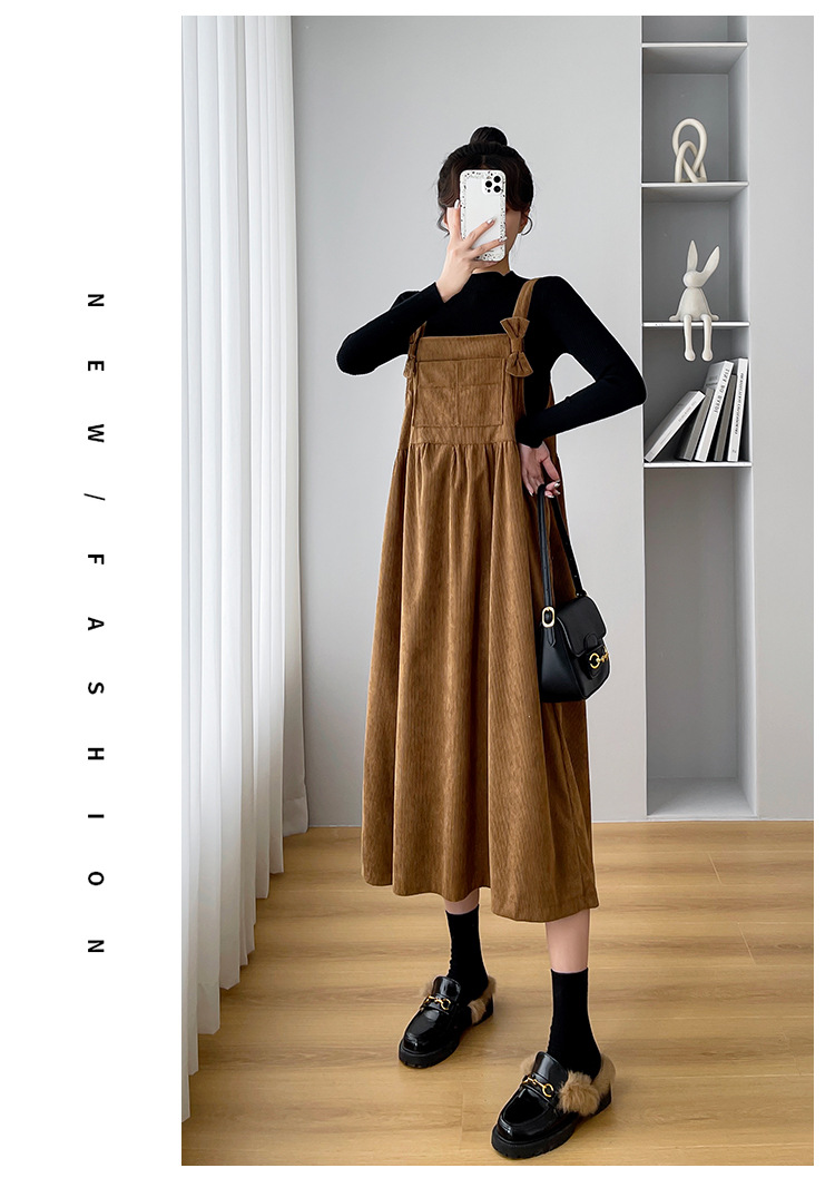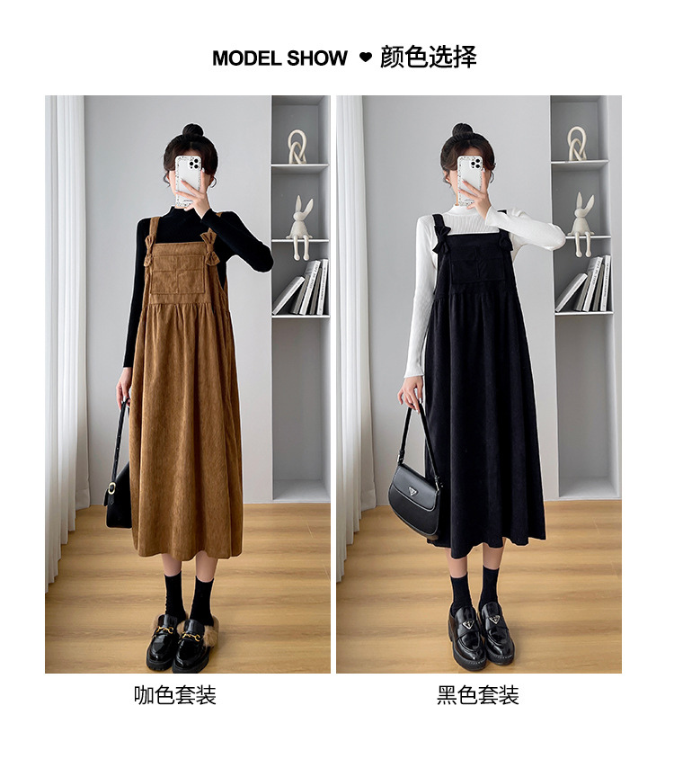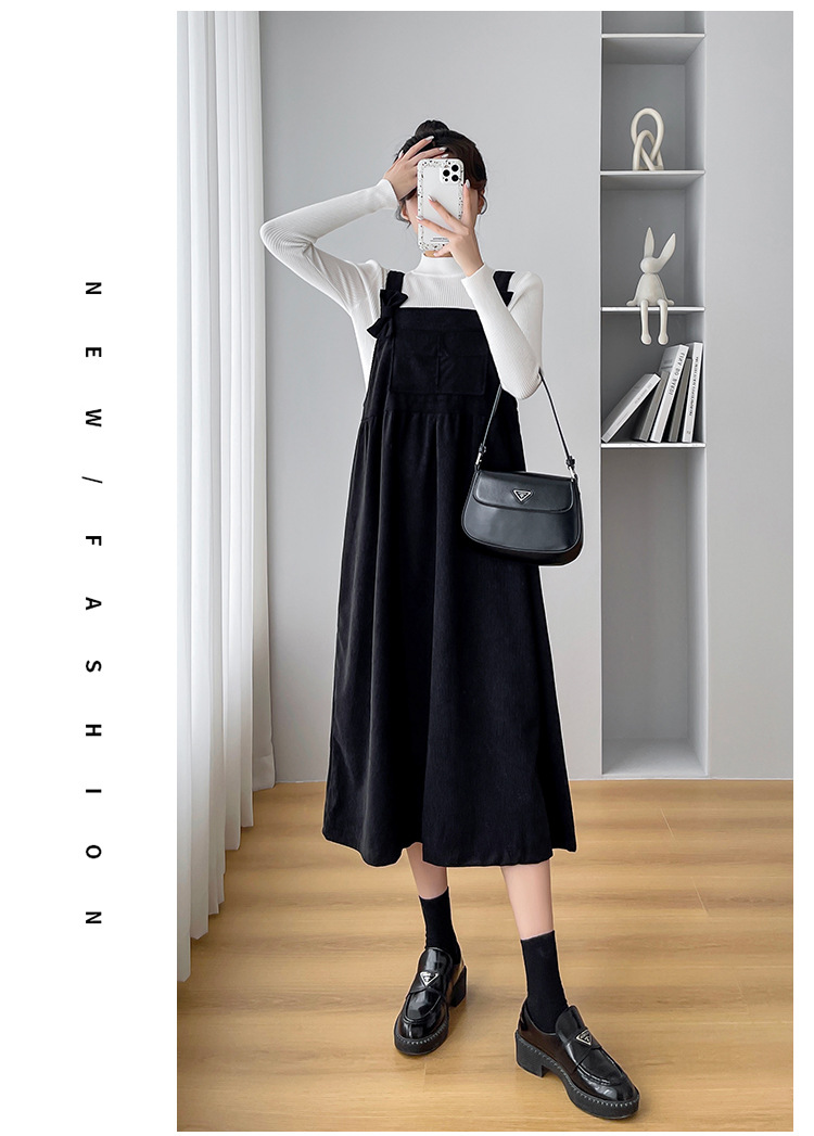 Юбка для беременных, осенняя Новая мода, уменьшающая возраст, свободная Вельветовая юбка на бретелях с бантом для кормления грудью, платье, костюм