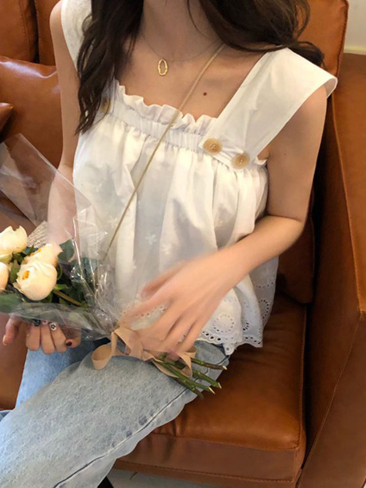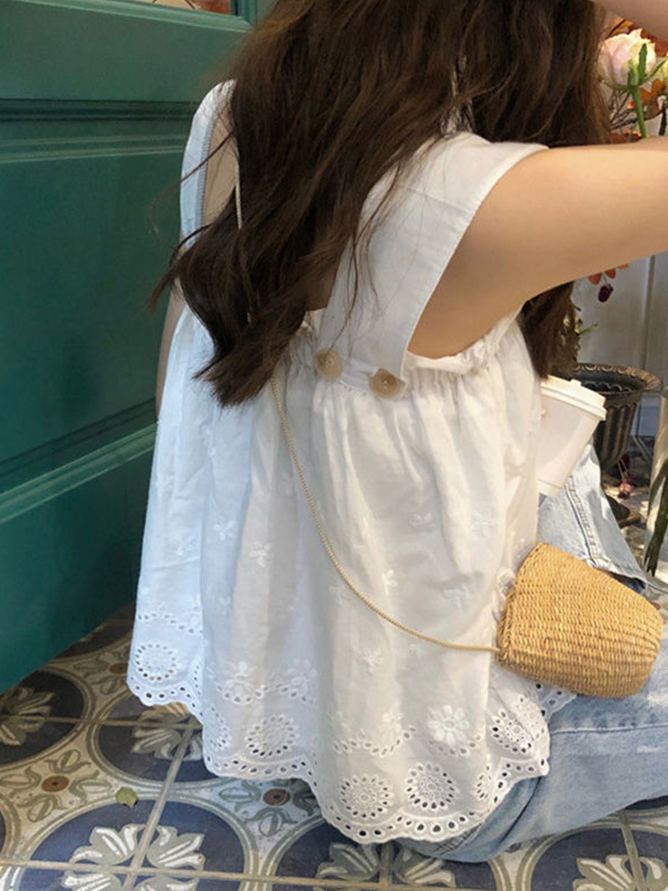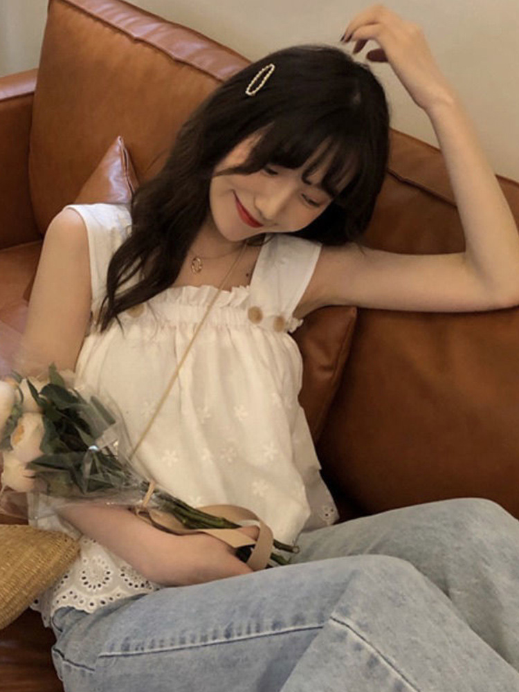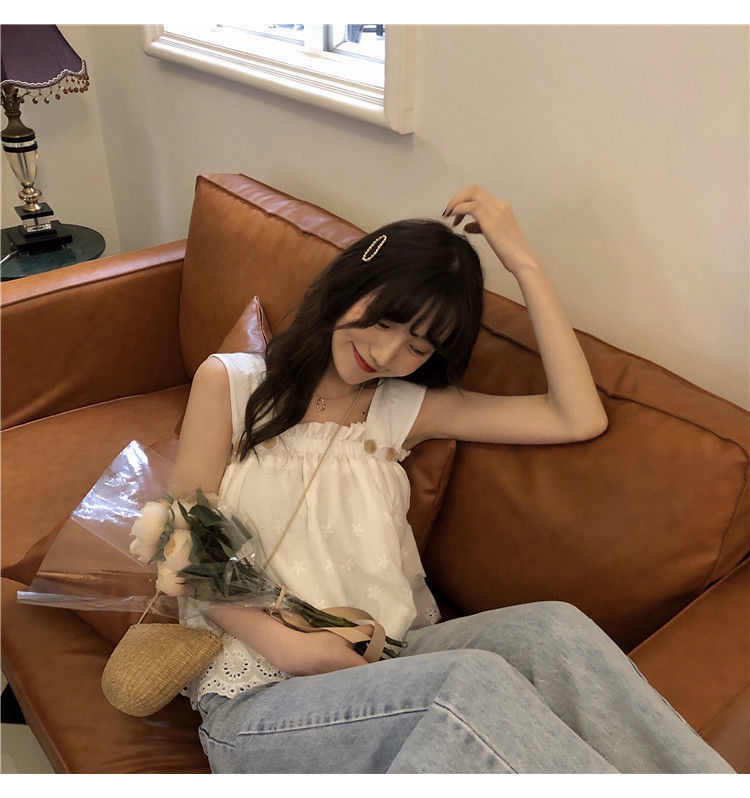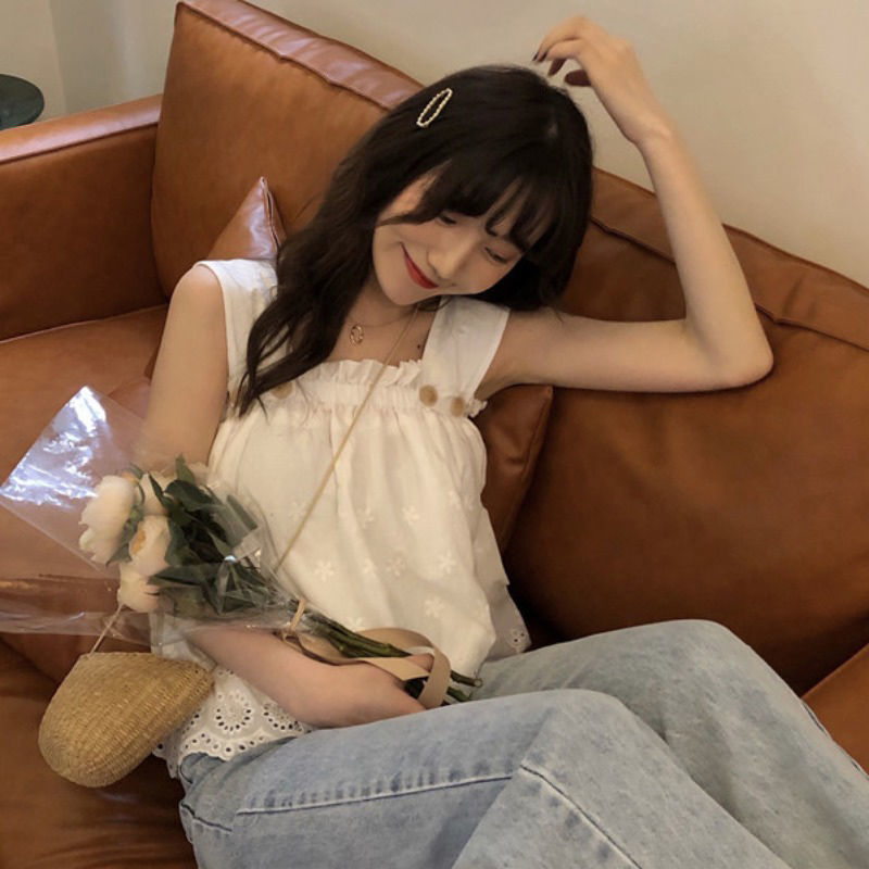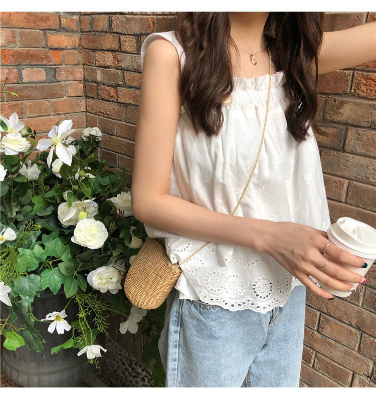 Милый женский топ-камизоль, новинка лета 2025, свободная вышитая блузка, модная майка для ношения под одеждой.