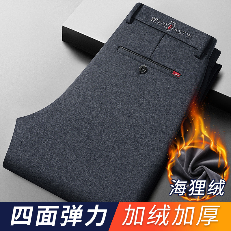 2022 осень-зима Новые утолщенные теплые Четырехсторонние эластичные деловые повседневные мужские брюки на флисовой подкладке, вязаные брюки высокой эластичности