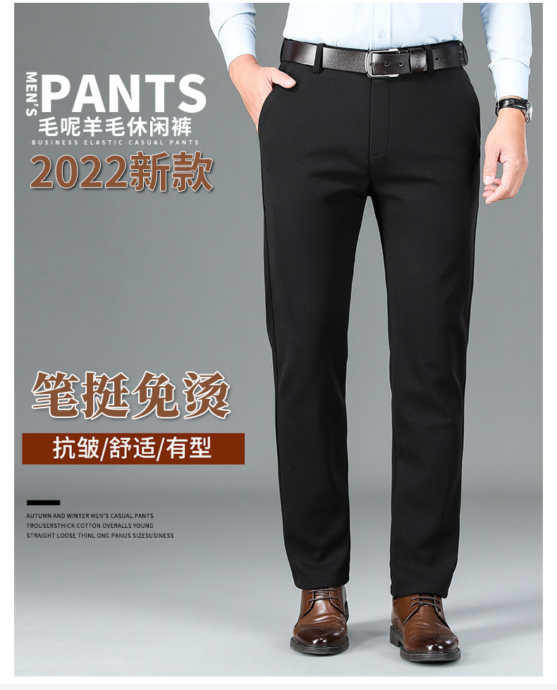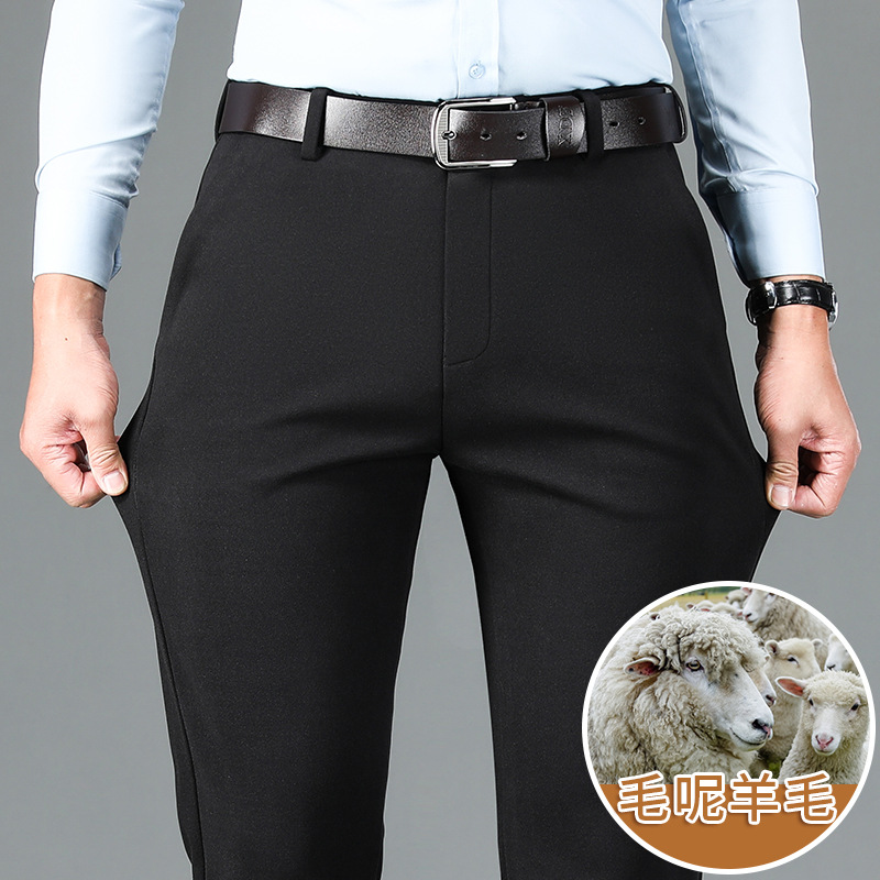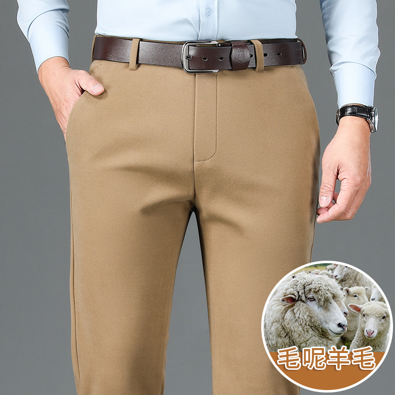 Брюки из шерсти с начесом, Мужские осенне-зимние толстые повседневные брюки, свободные Нескользящие, с высокой талией, классические брюки для средних и старых Пап