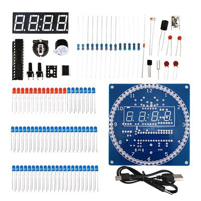Четырехпозиционный вращающийся электронный часы с контролем температуры часы управления освещением DS1302 вращающийся светодиодный комплект Детали для самостоятельной сборки TJ-56-262