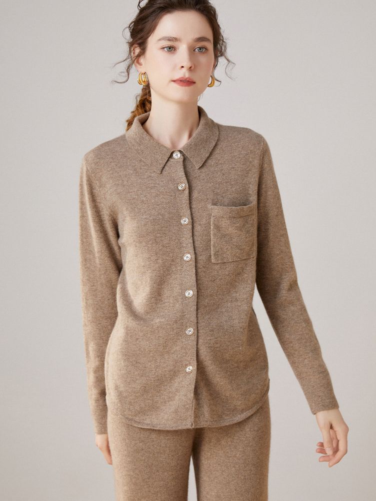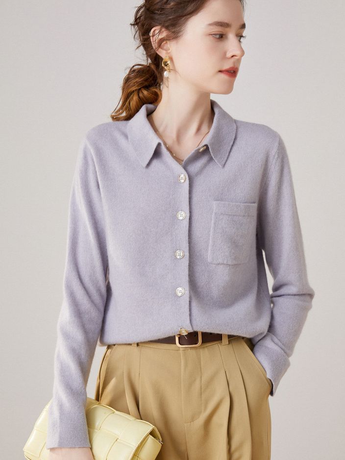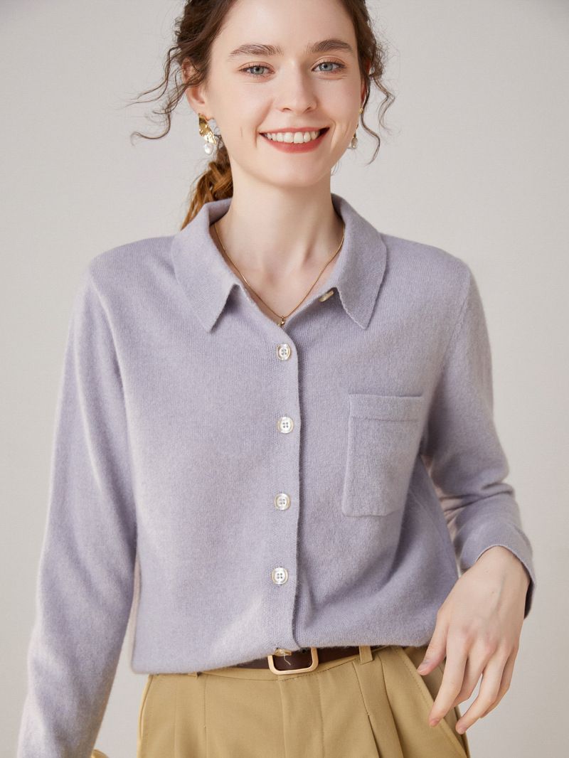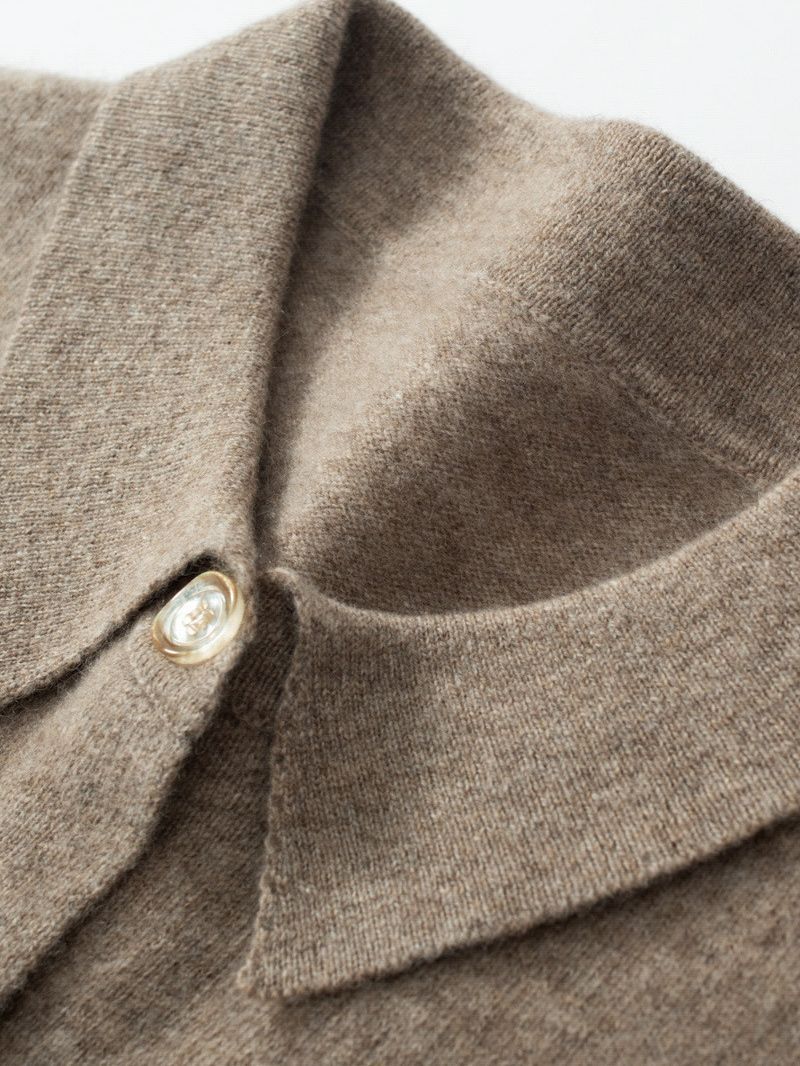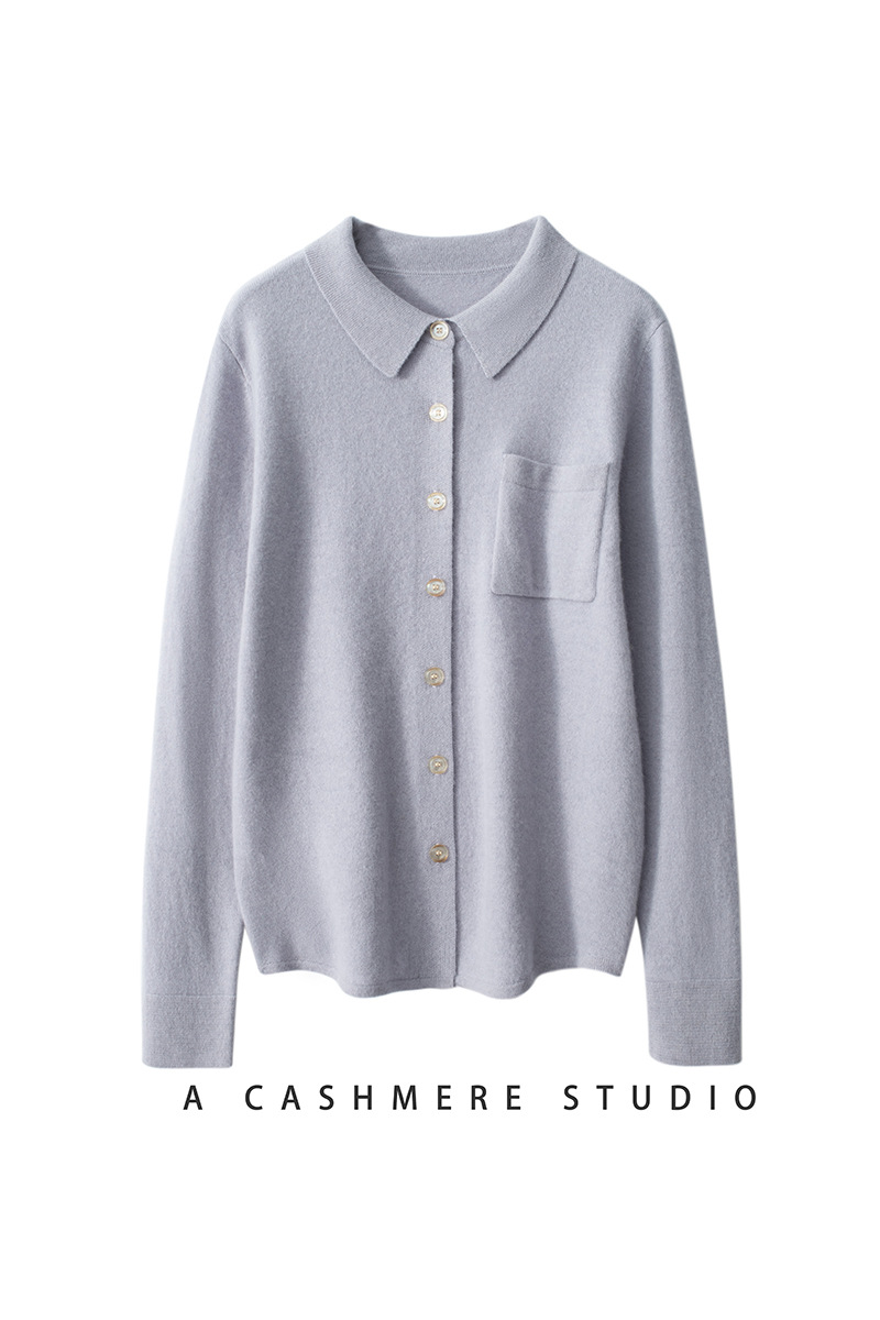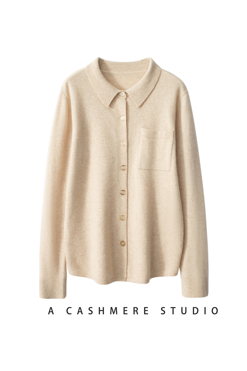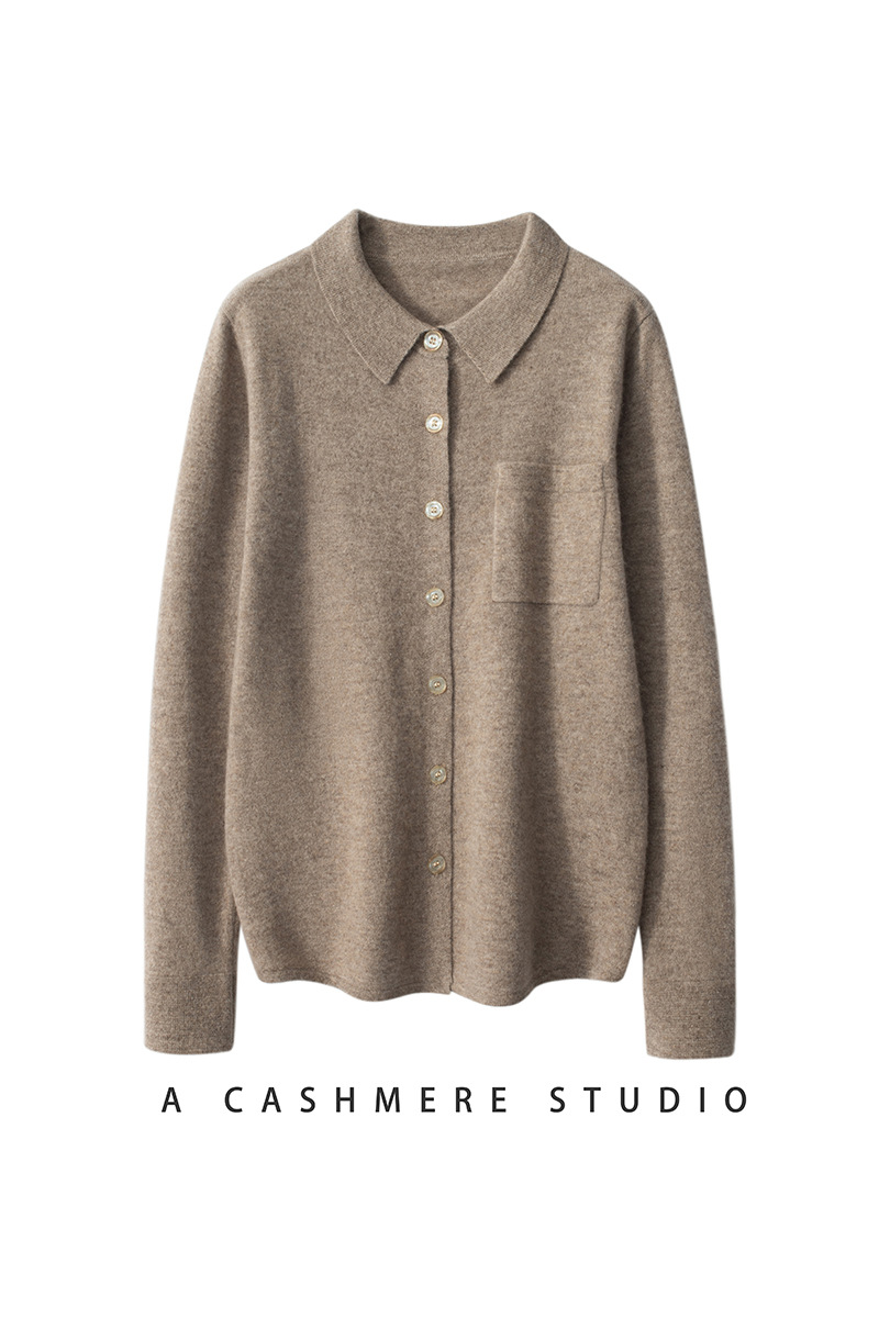 Шерстяной кардиган-свитер с воротником-поло, осенне-зимний, новый стиль 2025, вязаный базовый топ с длинным рукавом, кашемировая рубашка для женщин