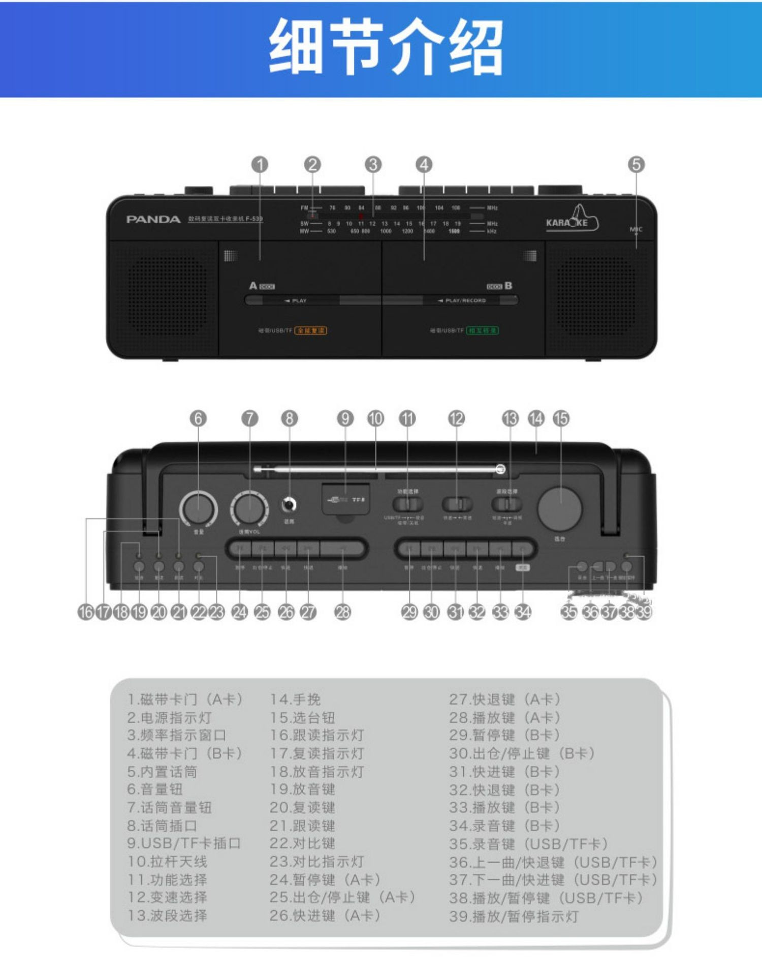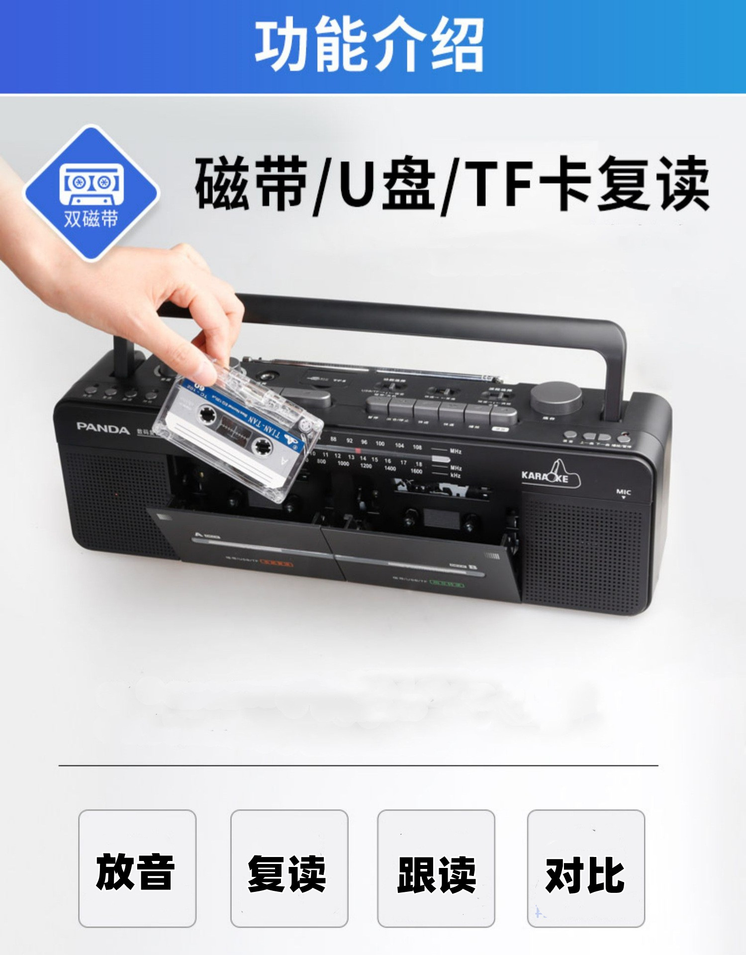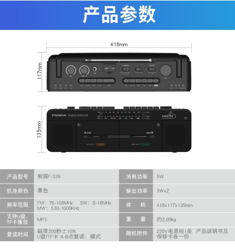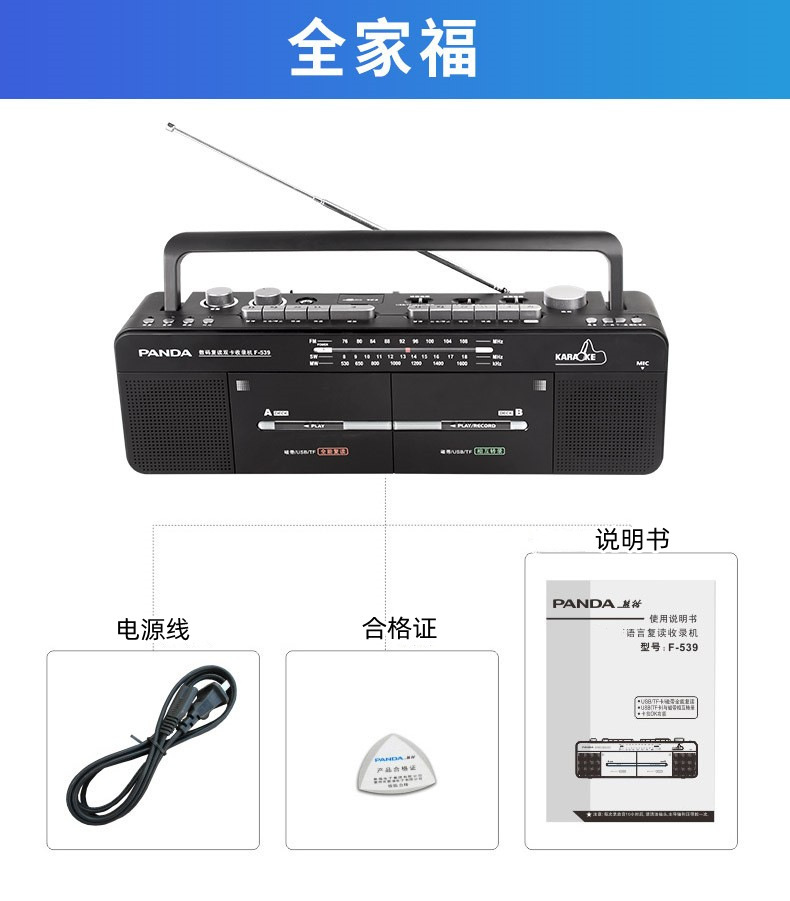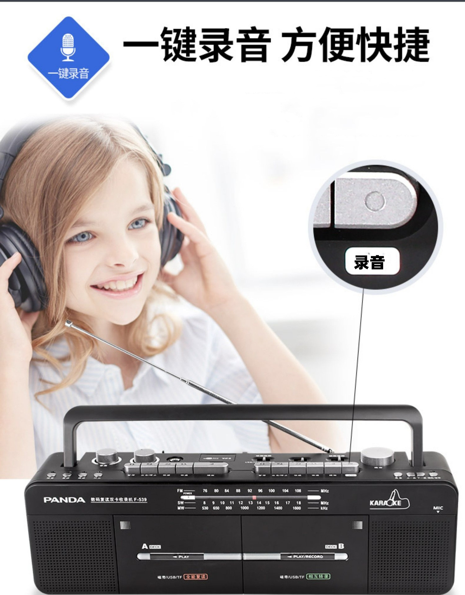 Panda F-539 стерео магнитофон запись Ностальгический двухкарточный кассетный плеер старый Винтаж