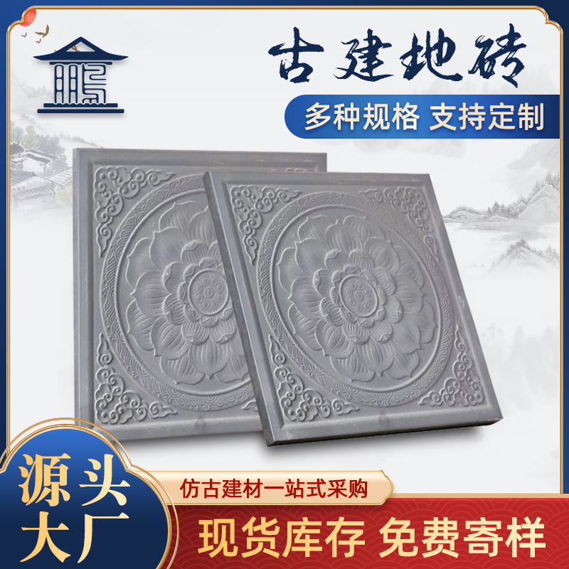Античная плитка для двора Китайский механизм Глиняная напольная плитка Внутренний и открытый пол Декоративная квадратная плитка Плитка для пола Тан Лотос