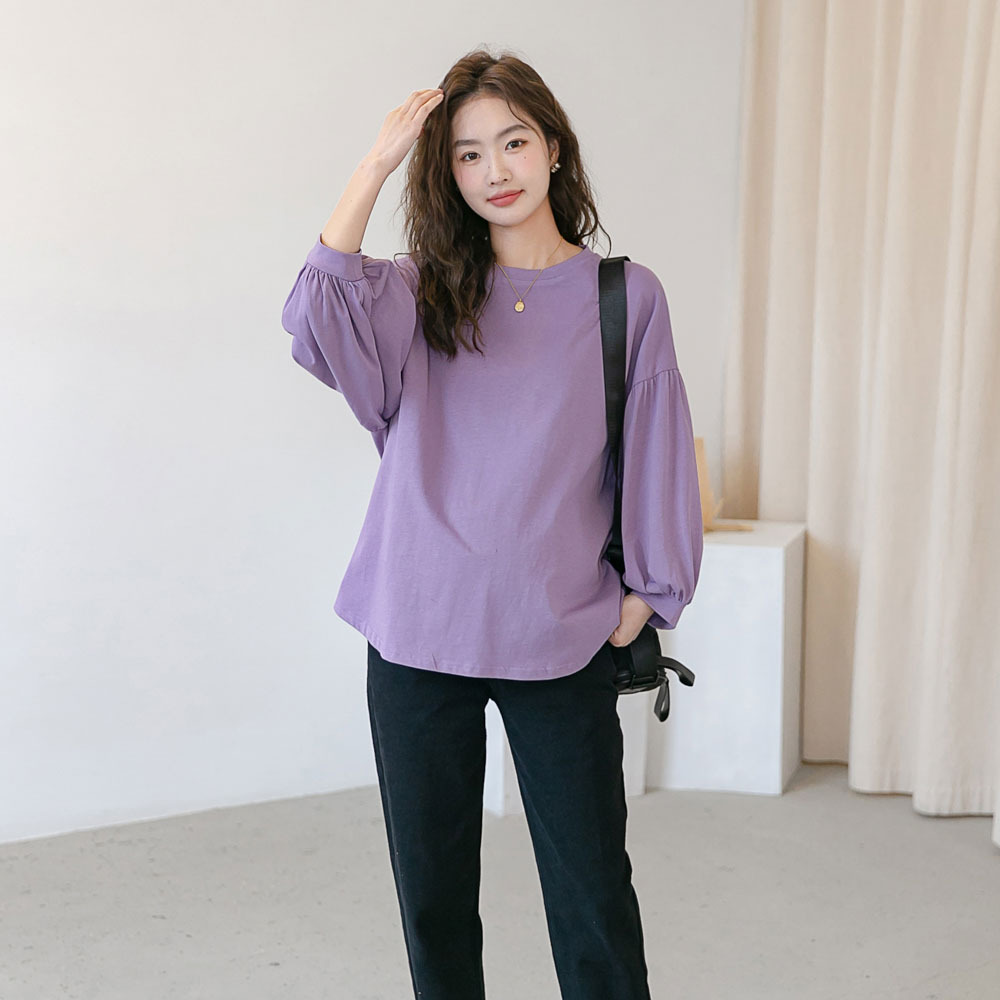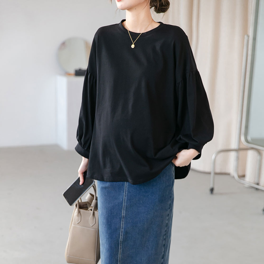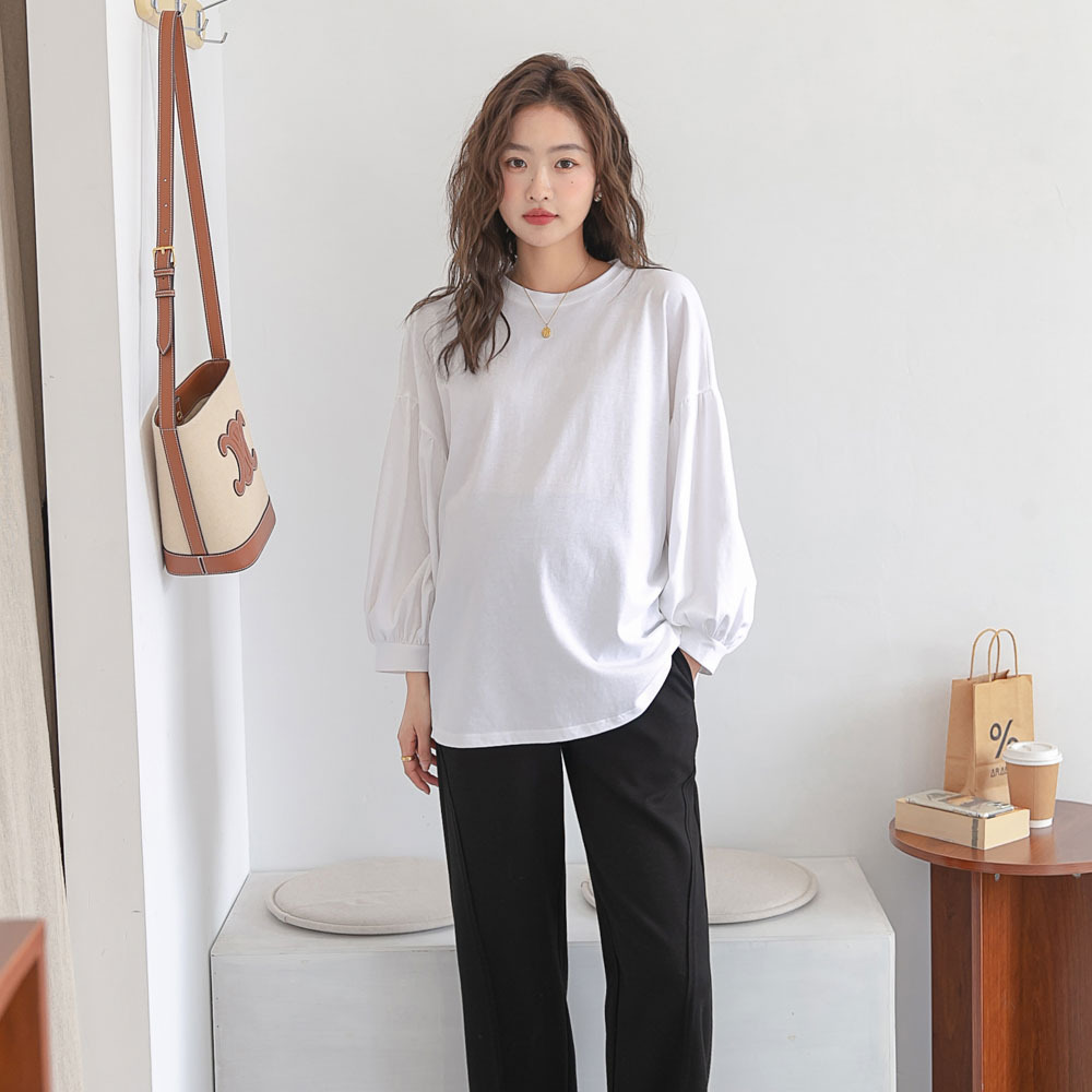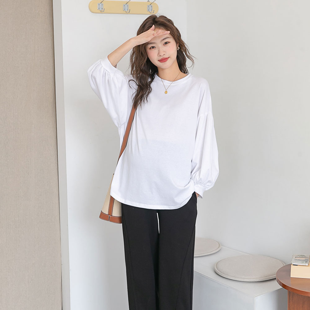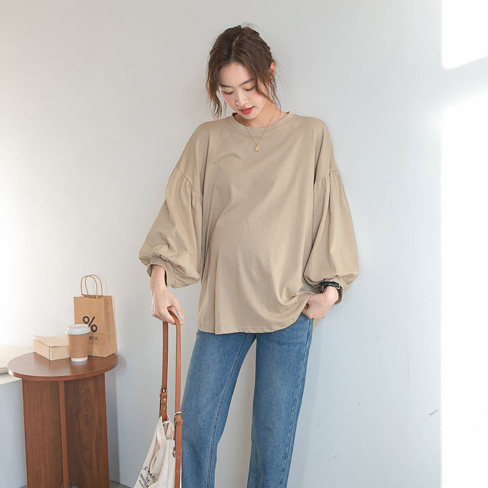 Новое весеннее платье для беременных в Корейском стиле, модная футболка с рукавом-фонариком Yuantong, Модный повседневный Свободный Топ для мамы