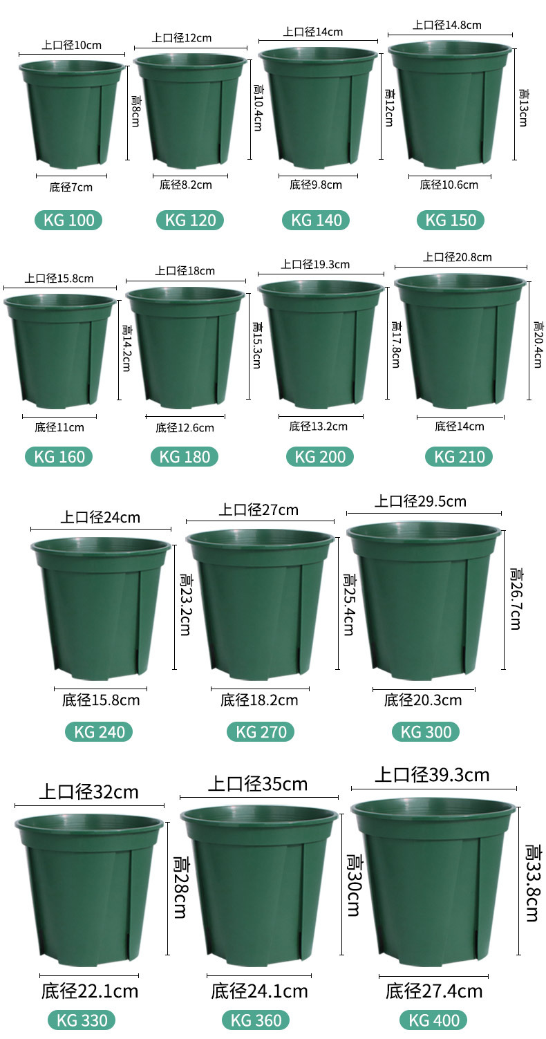 KG100/0,1 галлона (внешний диаметр 10 * внутренний диаметр 9 * высота 8 см); KG120/0.15 галлонов (внешний диаметр 12 * внутренний диаметр 11 * высота 10.4 см); KG140/0,2 галлона (внешний диаметр 14 * внутренний диаметр 13 * высота 12 см); KG150/0,3 галлона (наружный диаметр 14.8 * внутренний диаметр 14 * высота 13 см); KG160/0,5 галлона (внешний диаметр 15.8 * внутренний диаметр 14.8 * высота 14.2 см); KG180/0,6 галлона (внешний диаметр 18 * внутренний диаметр 16.7 * высота 15.3 см); KG200/0,7 галлона (наружный диаметр 19,3 * внутренний диаметр 18 * высота 17,8 см); KG210/1 галлон (внешний диаметр 20,8 * внутренний диаметр 19,7 * высота 20,4 см); KG240/2 галлона (внешний диаметр 24 * внутренний диаметр 22.5 * высота 23.2 см); KG270/3 галлона (наружный диаметр 27 * внутренний диаметр 25,2 * высота 25,4 см); KG300/4 галлона (наружный диаметр 29.5 * внутренний диаметр 27,7 * высота 26,7 см); KG330/5 галлонов (внешний диаметр 32 * внутренний диаметр 30 * высота 28 см); KG360/6 галлонов (внешний диаметр 35 * внутренний диаметр 32.6 * высота 30 см); KG400/7 галлонов (внешний диаметр 39,3 * внутренний диаметр 37 * высота 33,8 см)