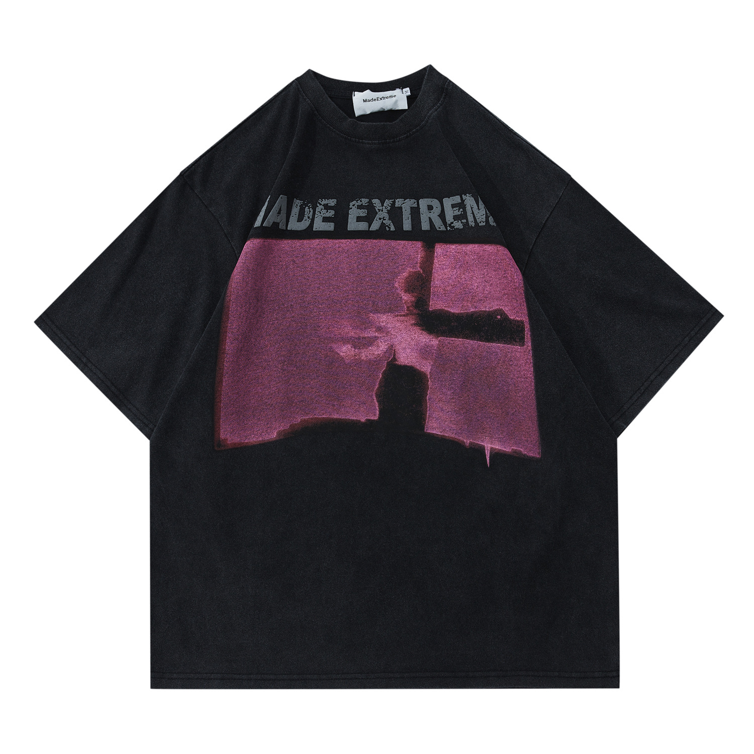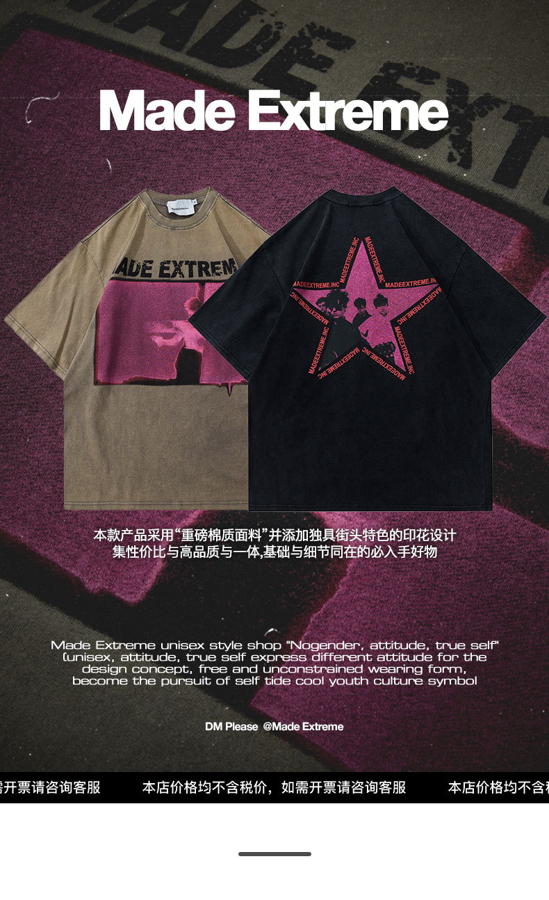 MADEEXTREME американская уличная модная брендовая мужская потертая летняя футболка с короткими рукавами в стиле ретро и рок-принтом