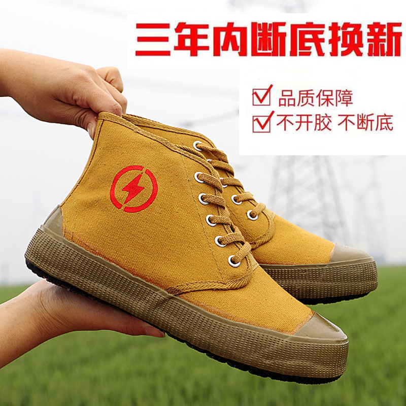 Оригинальные товары Изолированная обувь 5KV, обувь электрика, мужская и женская дышащая обувь с высоким берцем, антиэлектрическая Желтая резиновая защитная обувь, производители от имени волос