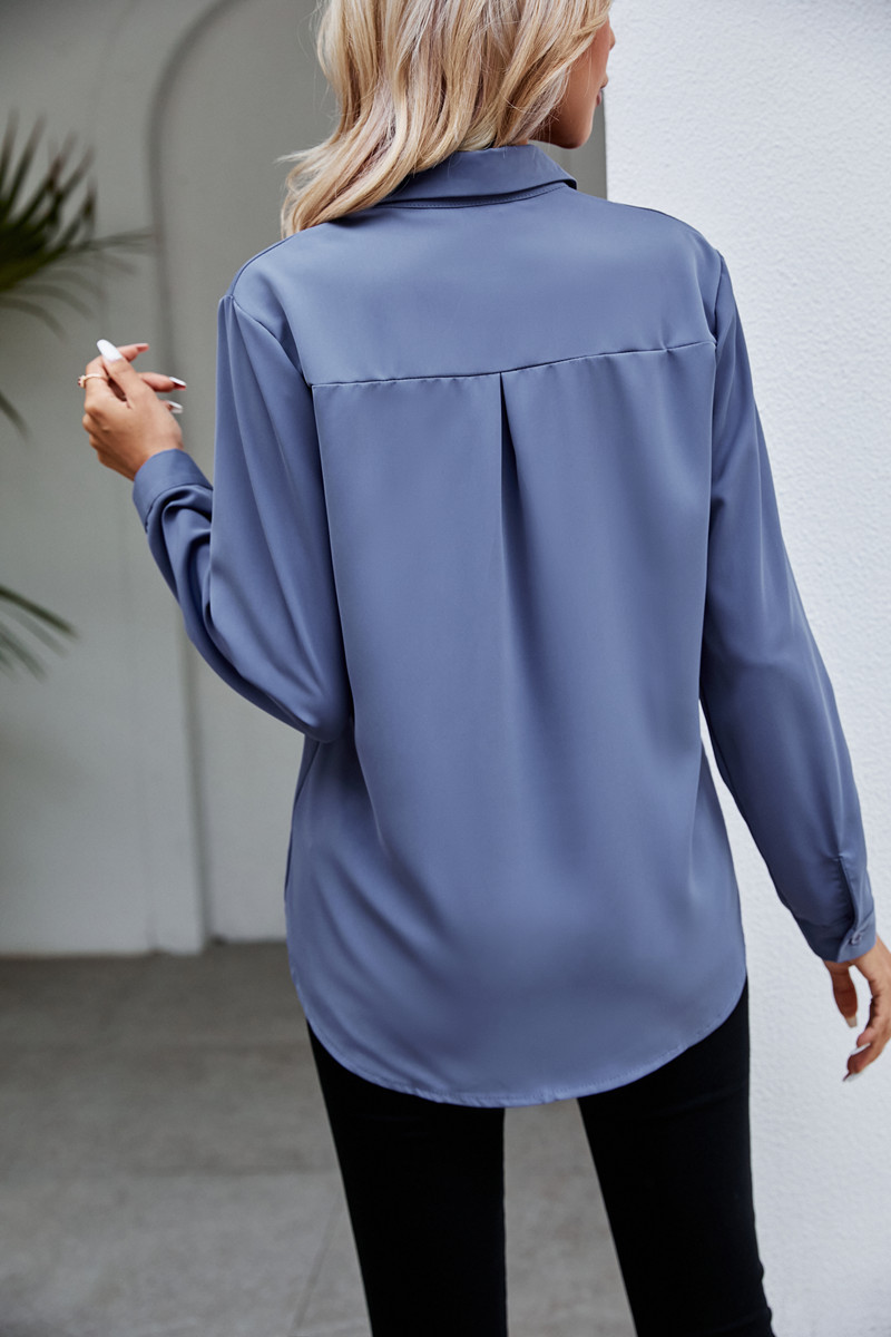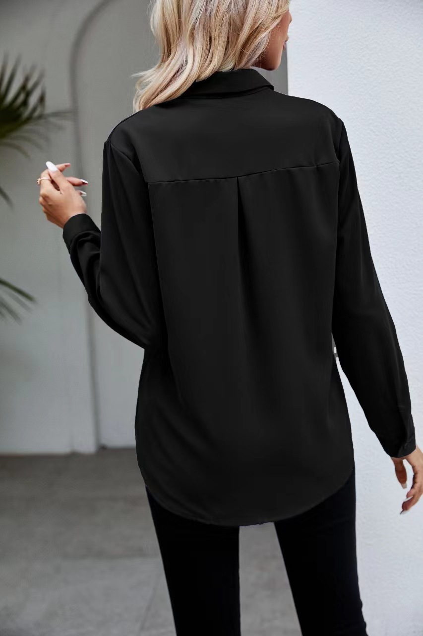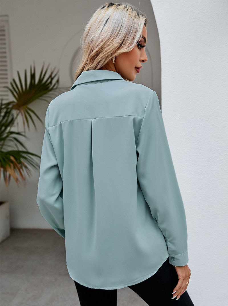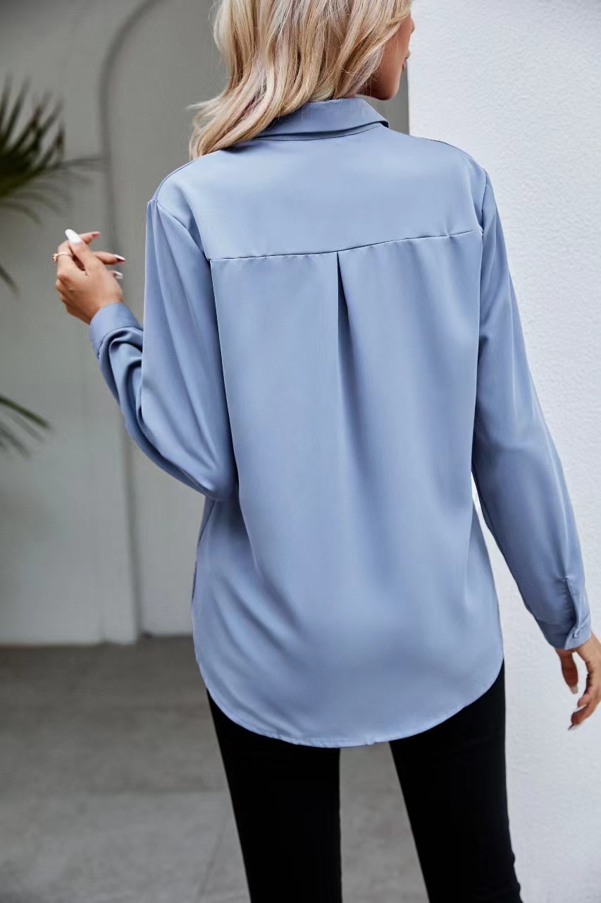 2023 новый сплошной цвет повседневная свободная рубашка с длинными рукавами