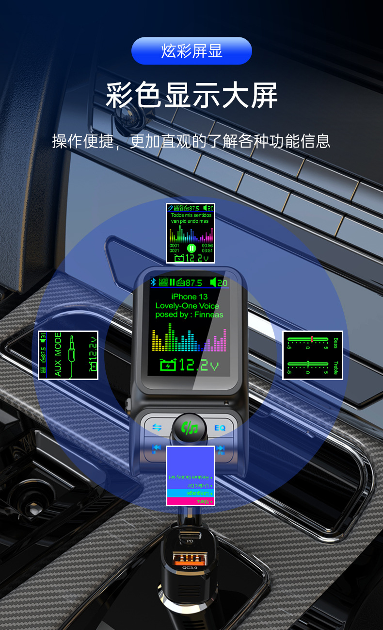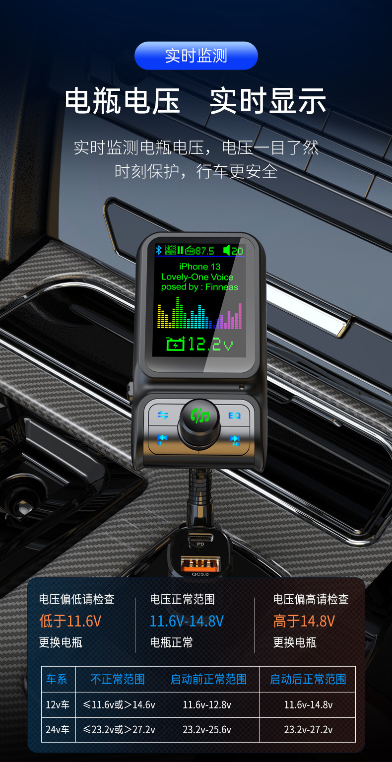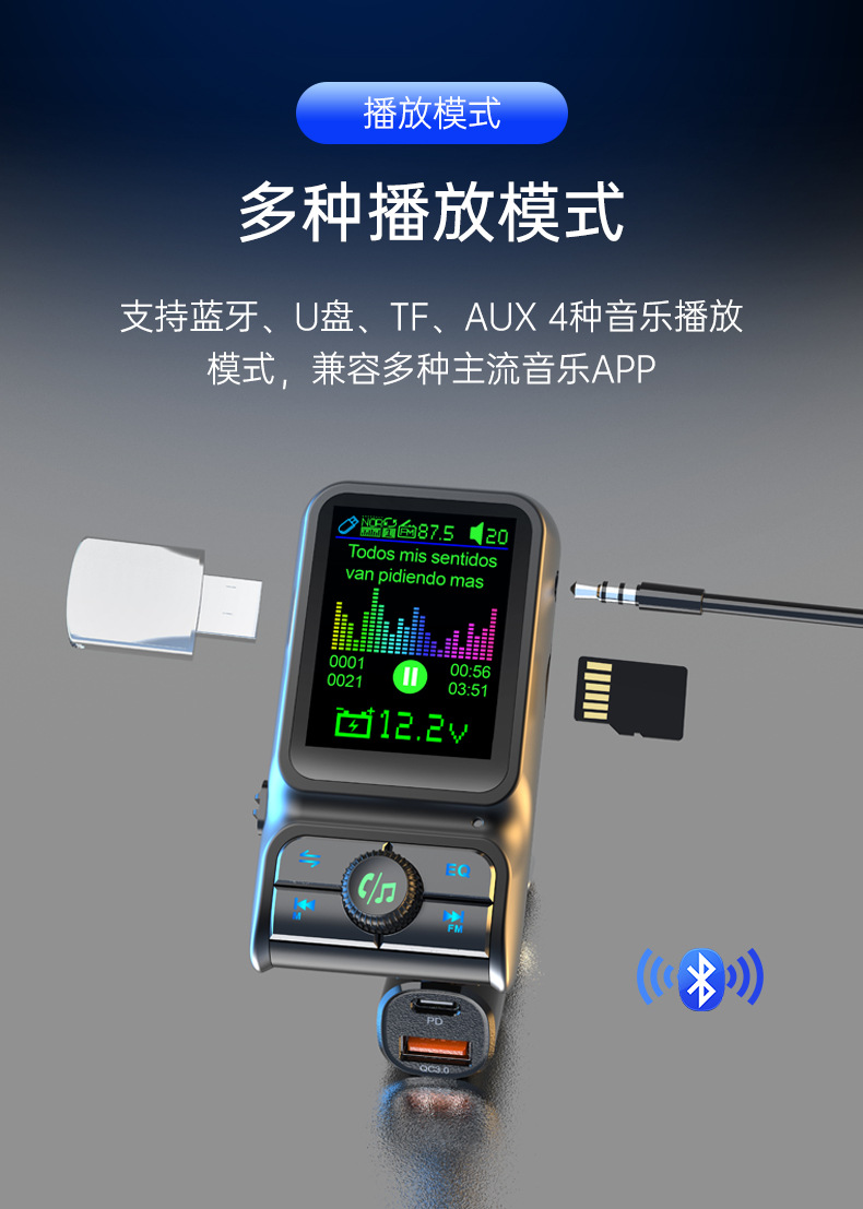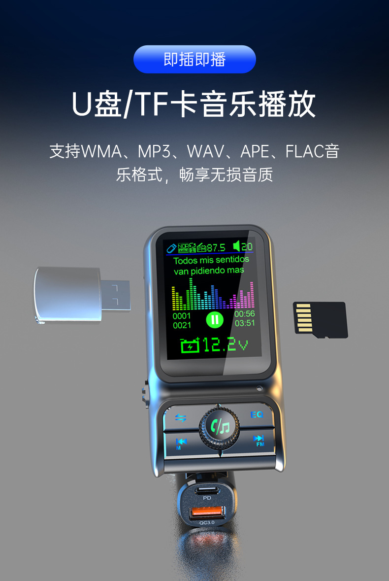 Автомобильный MP3-плеер TF с дисплеем напряжения, синхронизацией текстов песен, качеством звука без потерь, быстрой зарядкой, автомобильное зарядное устройство 38 Вт