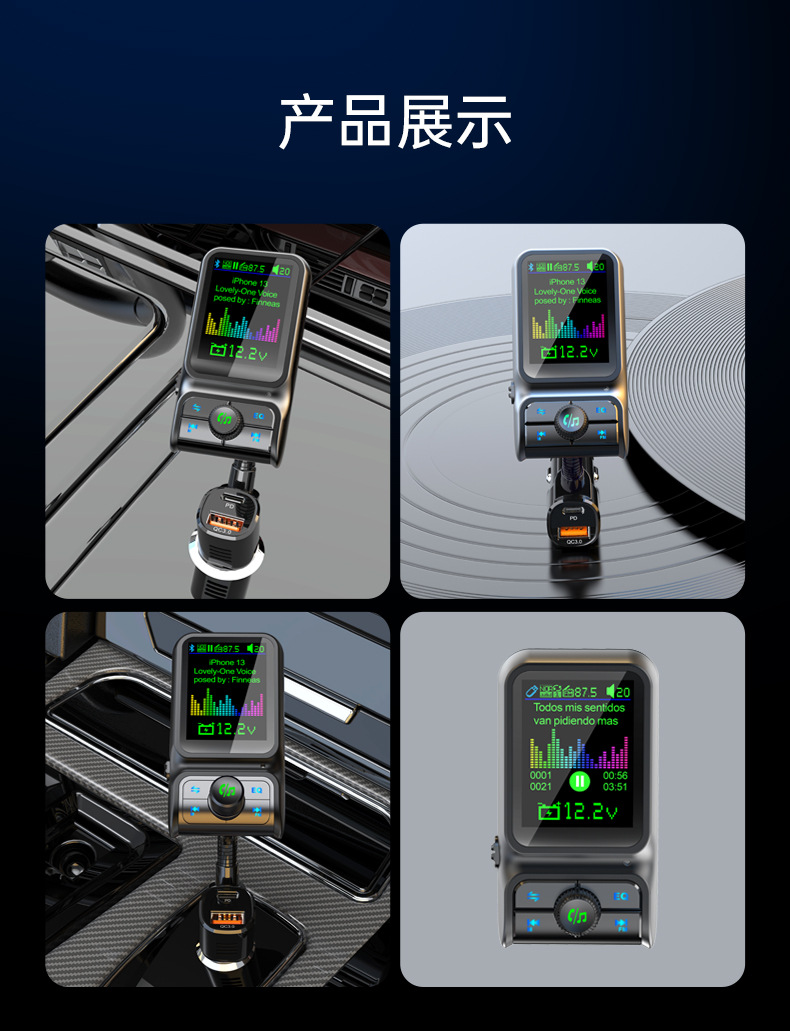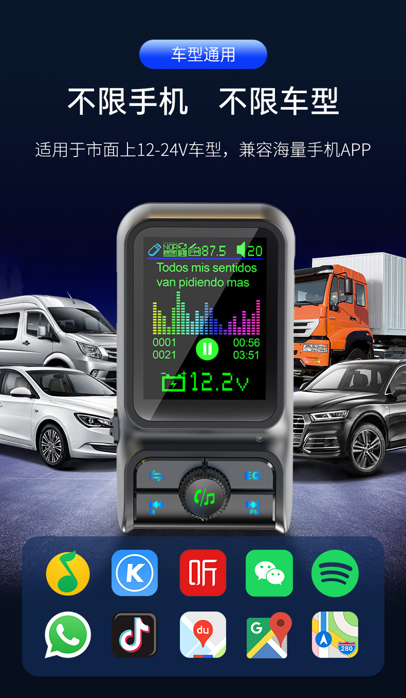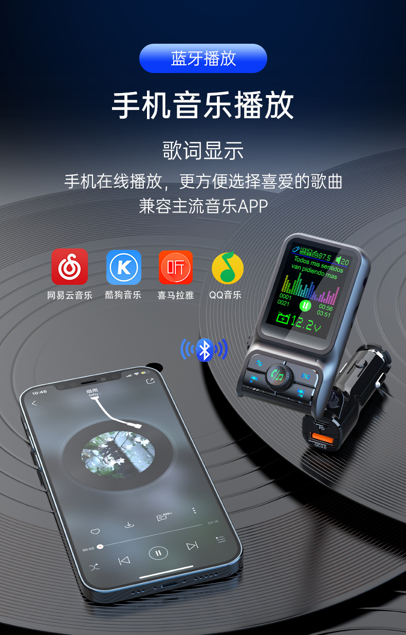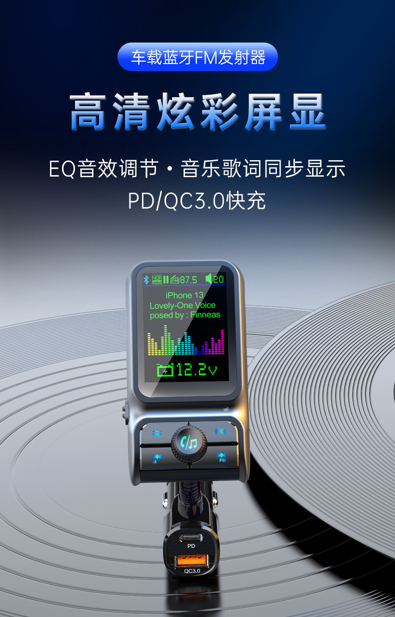Автомобильный MP3-плеер TF с дисплеем напряжения, синхронизацией текстов песен, качеством звука без потерь, быстрой зарядкой, автомобильное зарядное устройство 38 Вт