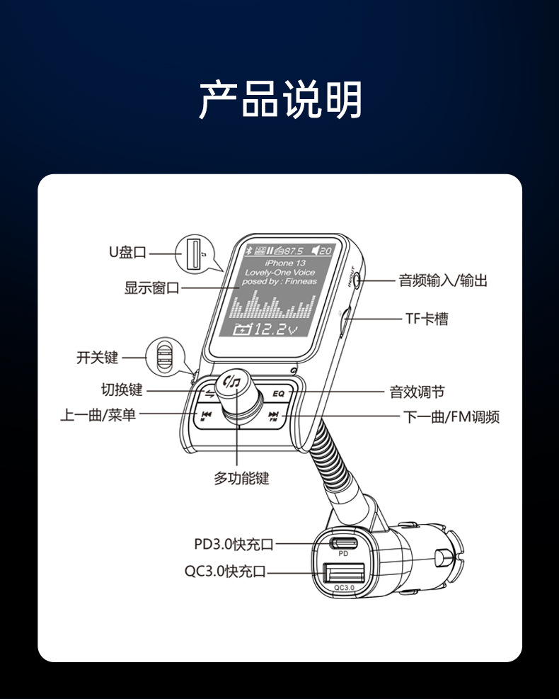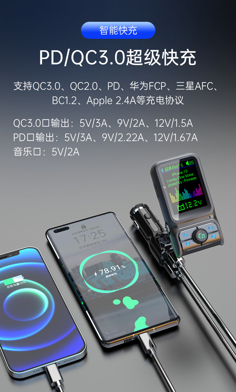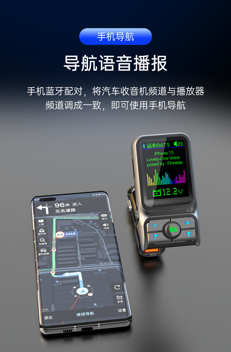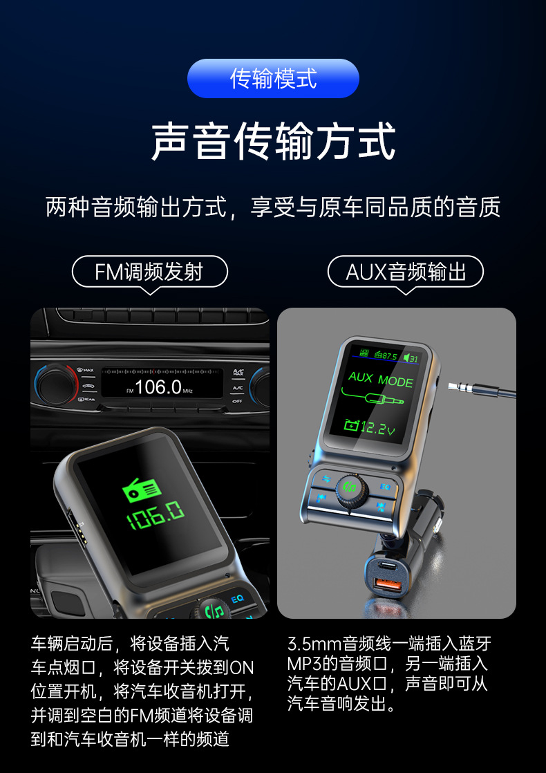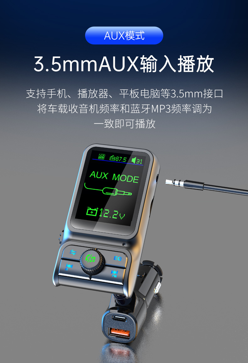 Автомобильный MP3-плеер TF с дисплеем напряжения, синхронизацией текстов песен, качеством звука без потерь, быстрой зарядкой, автомобильное зарядное устройство 38 Вт