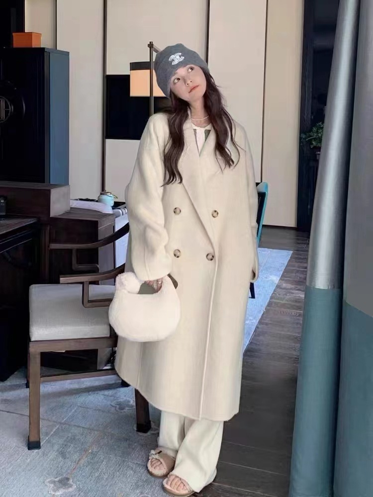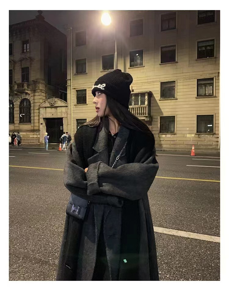 Взрывы интернет-знаменитостей 2023 Новое двустороннее шерстяное пальто из Тенсел с длинными волосами корейское свободное повседневное шерстяное пальто в наличии