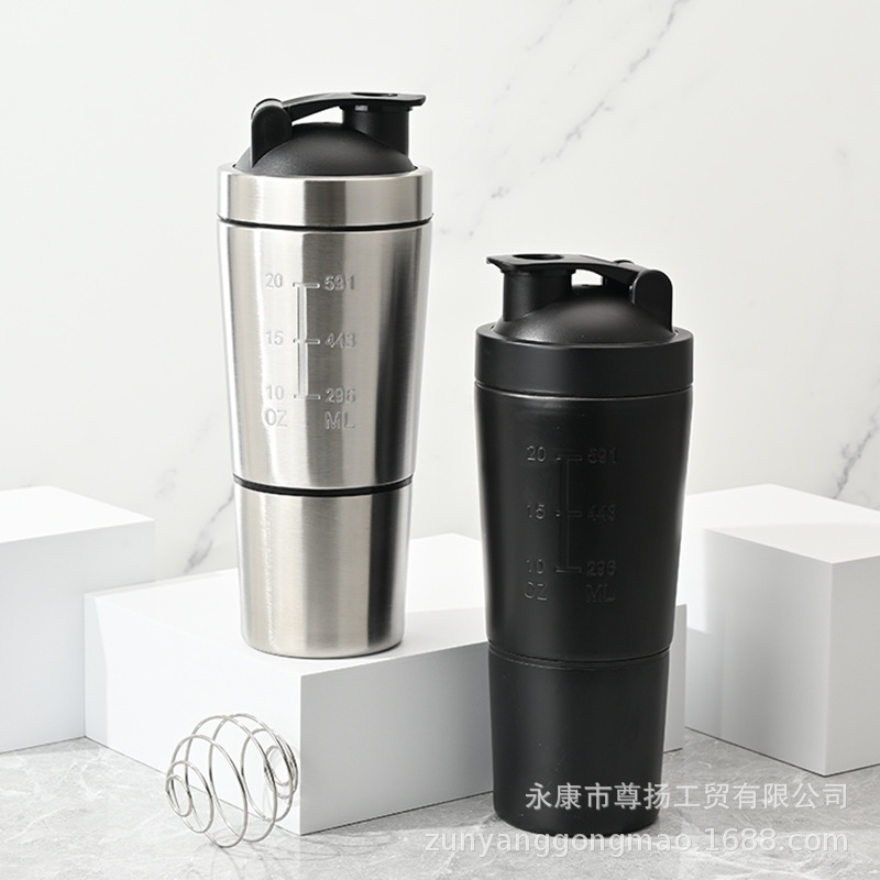 Однослойный 304 из нержавеющей стали двухсекковый встряхивающий стакан с порошковой коробкой на открытом воздухе спортивный протеиновый порошок смешивания стакан для хранения стакан для хранения воды