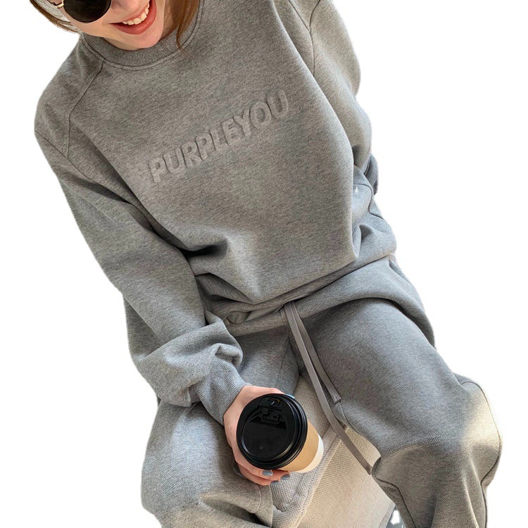 Фиолетовый спортивный костюм для женщин 2025 весна-осень новая мода элегантный свободный свитшот и брюки комплект из двух предметов