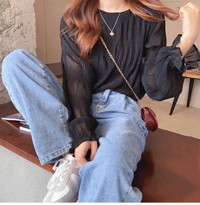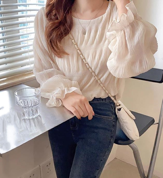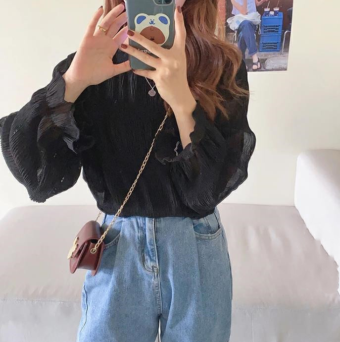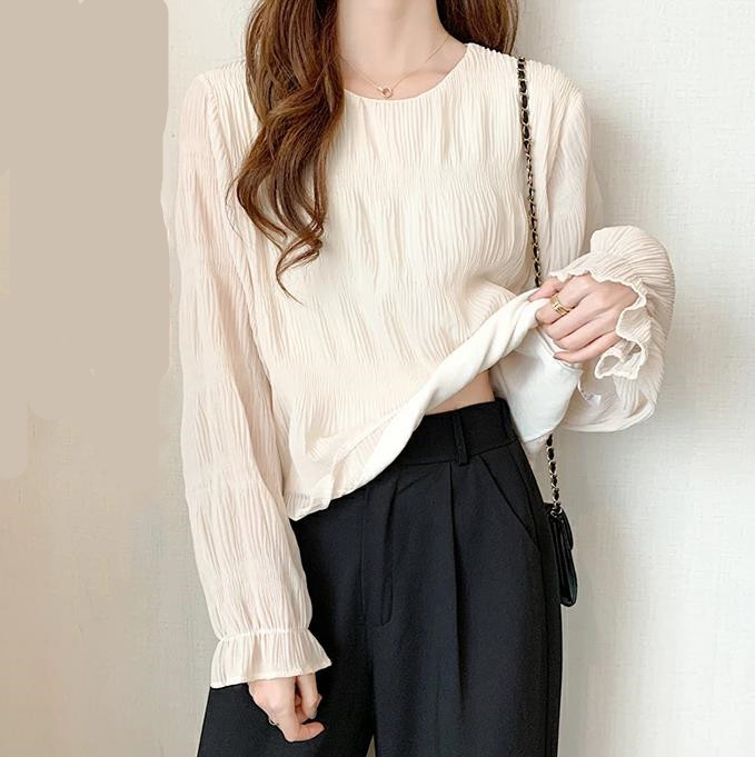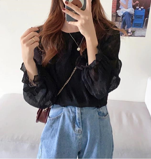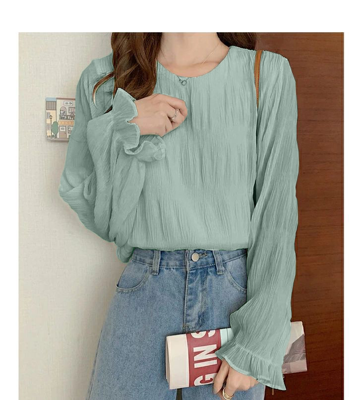 8-цветная спотовая Япония Rotte 2025 новая весна с расклешенными рукавами шифоновая рубашка с длинными рукавами