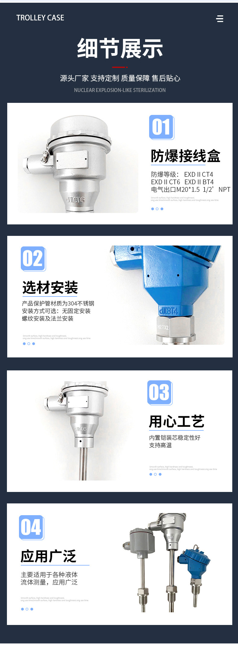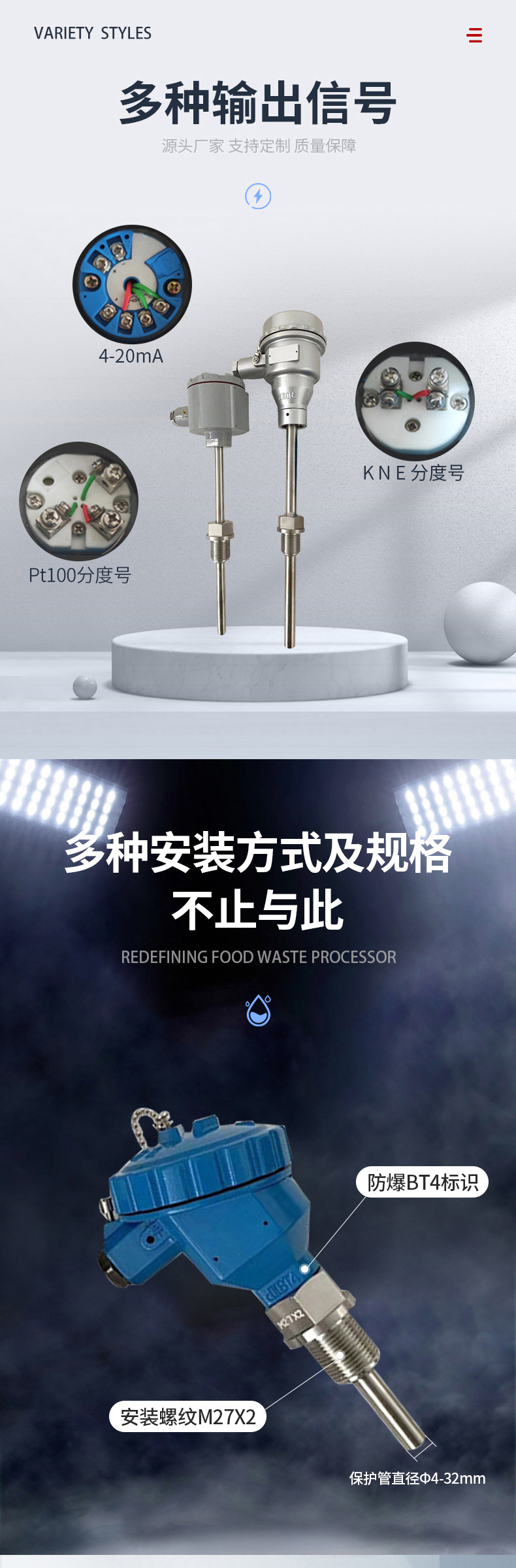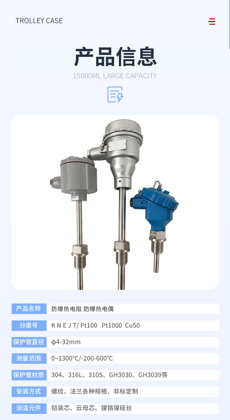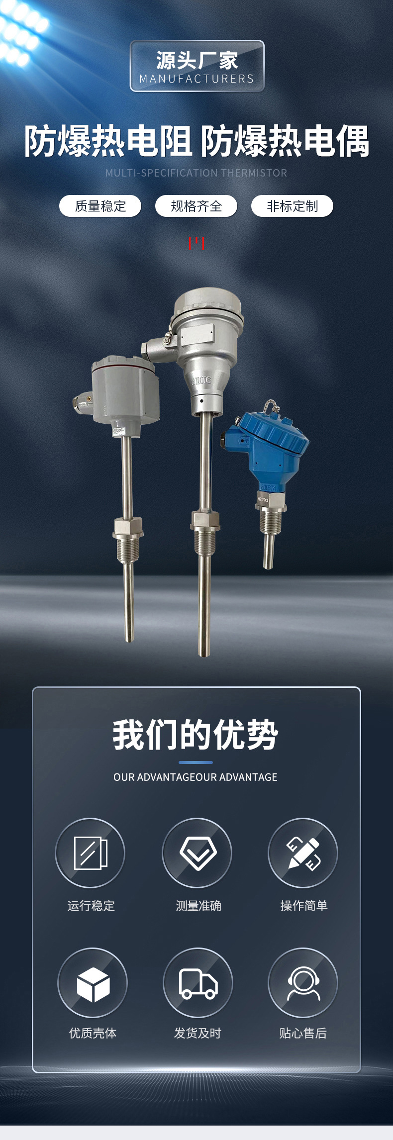 Индивидуальный промышленный термопреобразователь PT100WZP-140 взрывозащищенный, с термопарой WRN-140, в бронированном корпусе